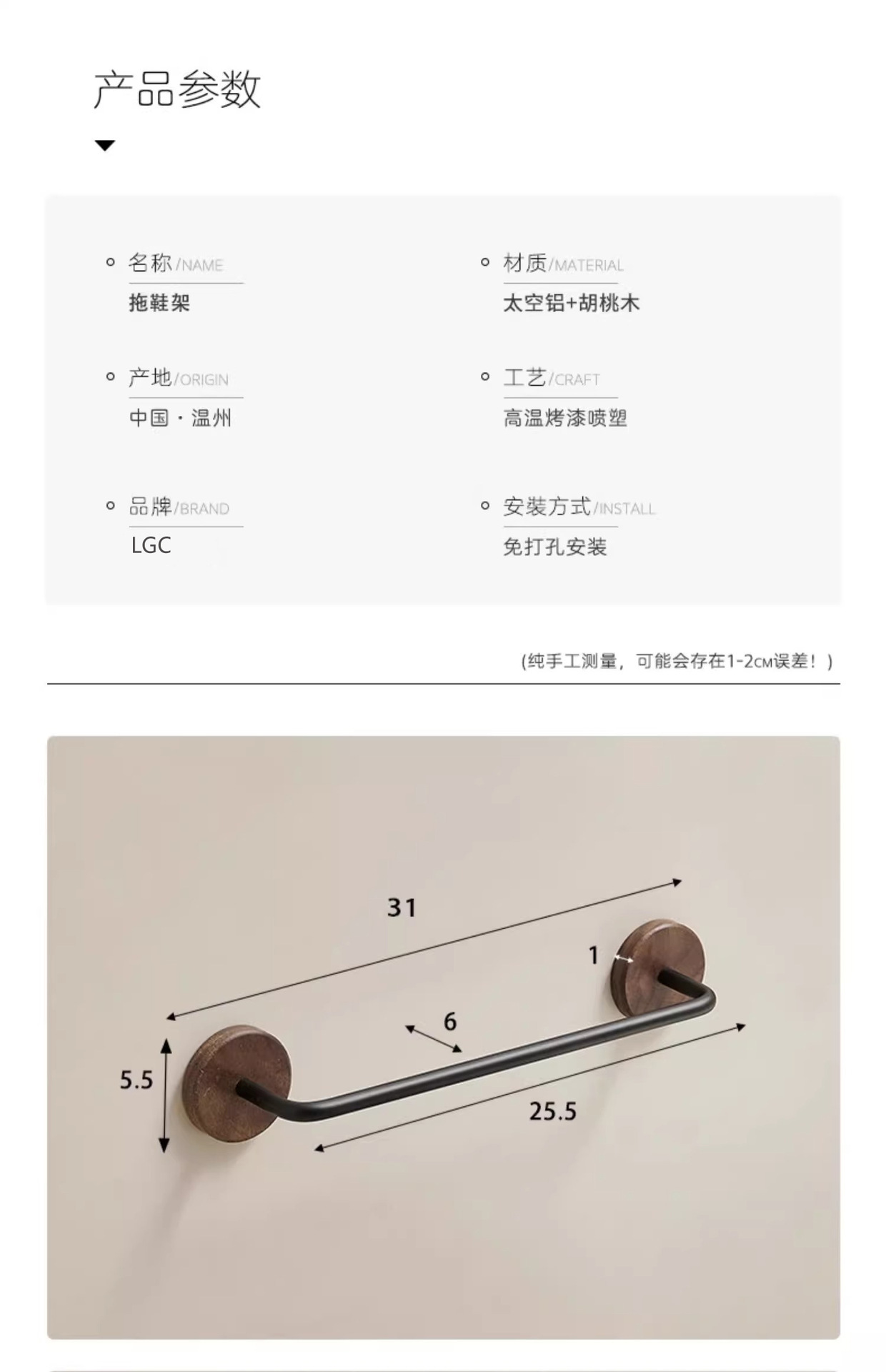 호두 목재 목욕 수건 걸이 욕실 슬리퍼 수건 걸이 펀치없는 중국 스타일 욕실 화장실 욕실 보관함스토어 가기