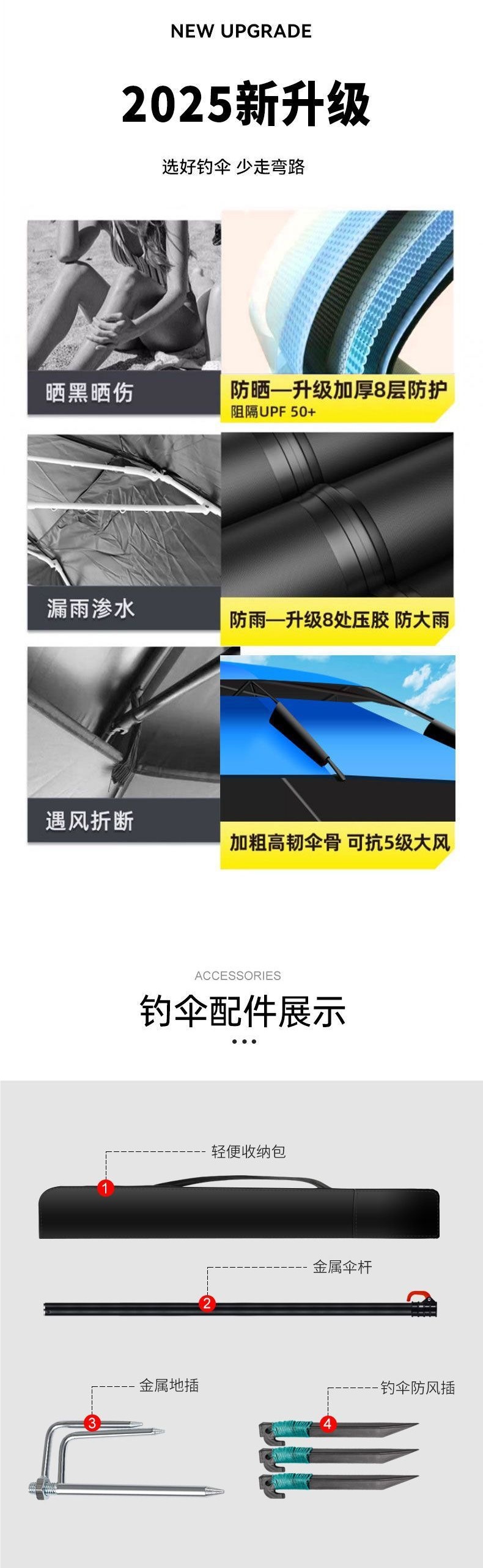 낚시 우산, 범용 두꺼운 야외 낚시, 방풍, 자외선 차단 및 비 차단 우산 제조업체 알루미늄스토어 가기