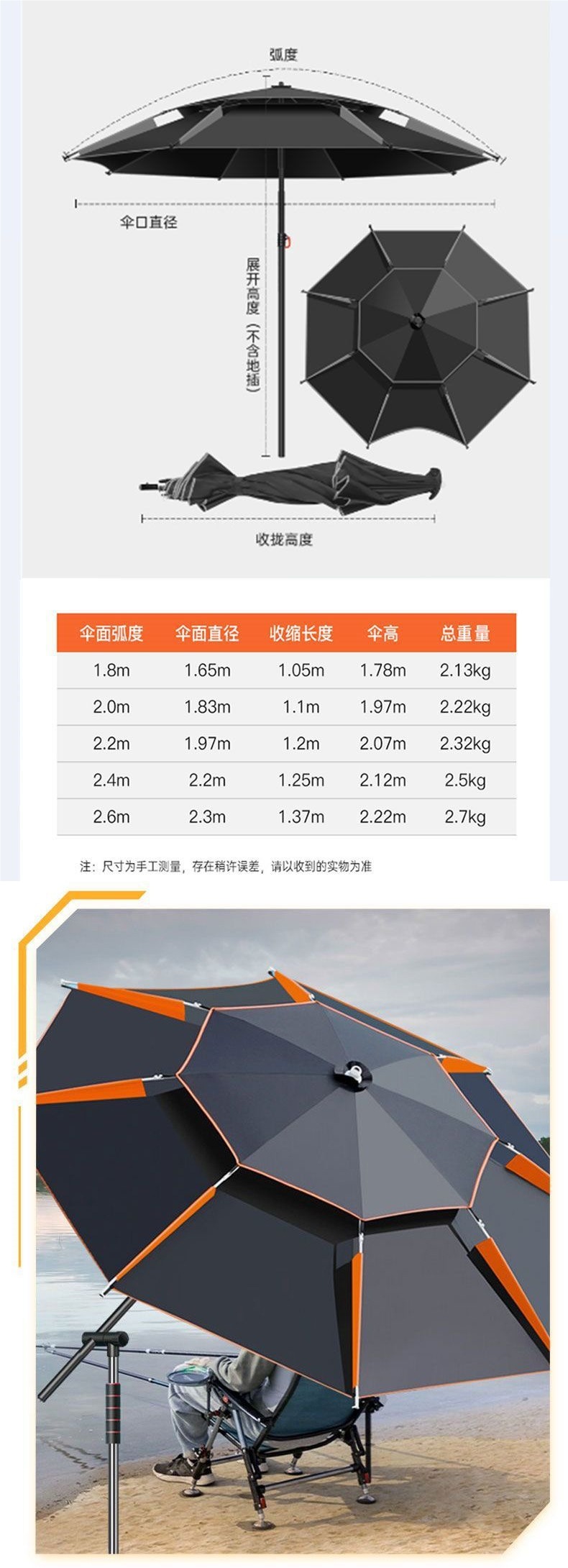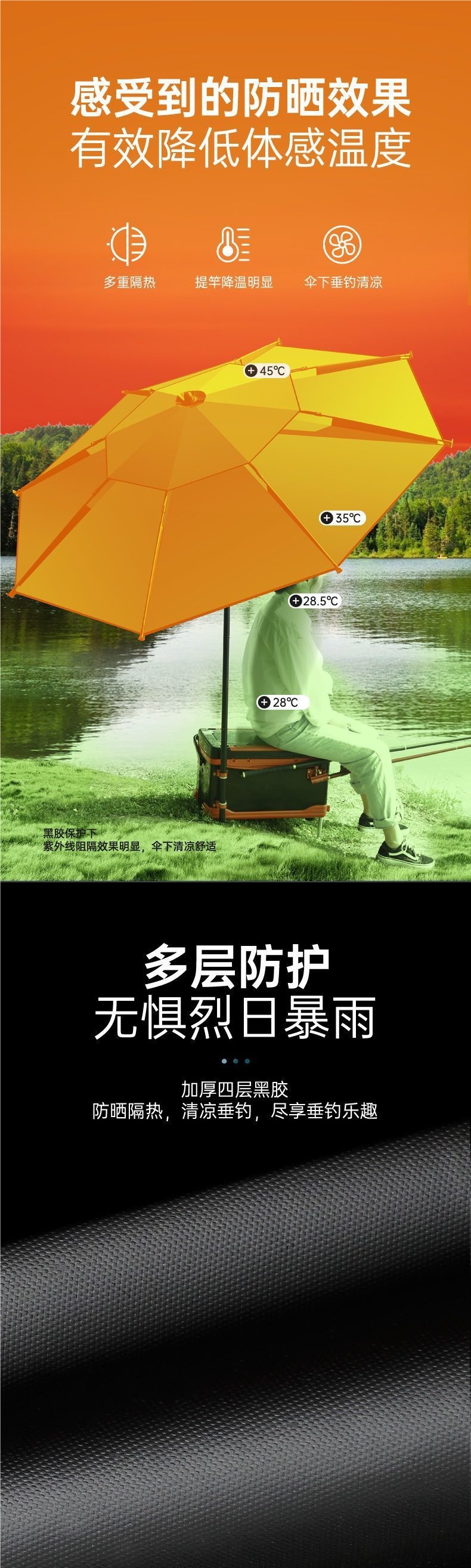 • 강화된 비/바람 저항 및 UV 저항 블랙 오렌지 2.6m