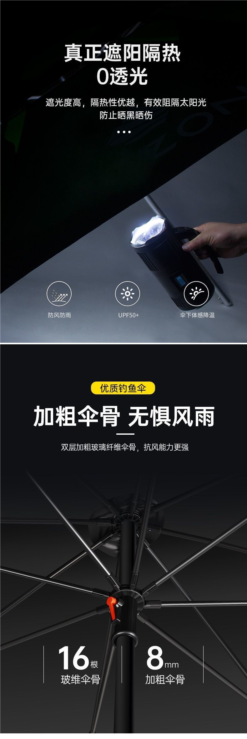 • 강화된 비/바람 저항 및 UV 저항 블랙 오렌지 2.2m