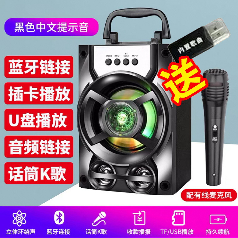 고음질 블루투스 스피커, 대용량 노래, 서브우퍼, 편리한 스퀘어 댄스 휴대용 소형 유선 마이크 도매스토어 가기