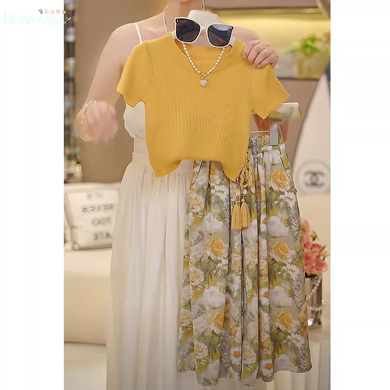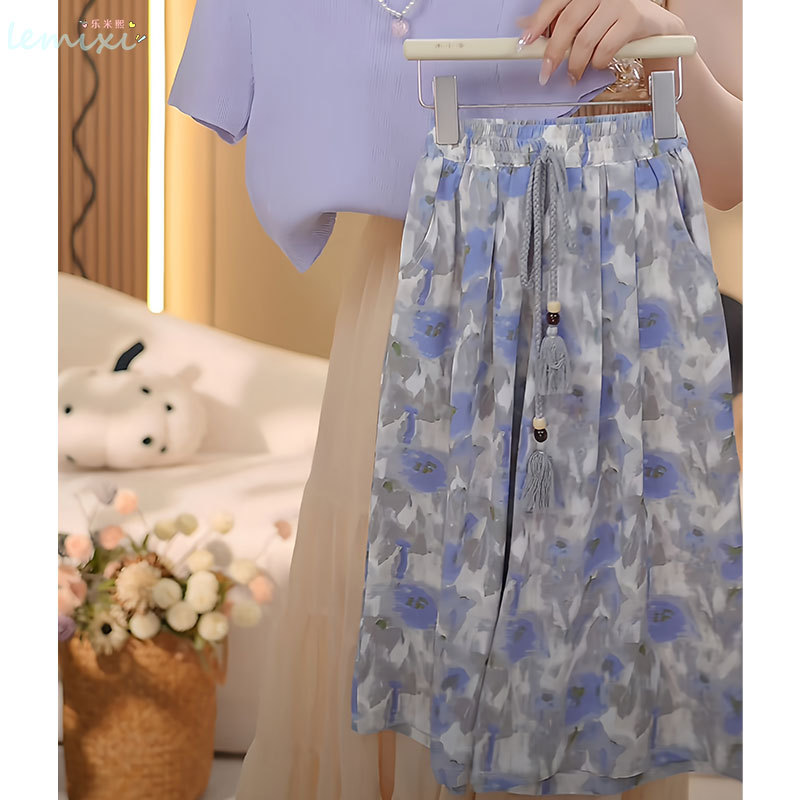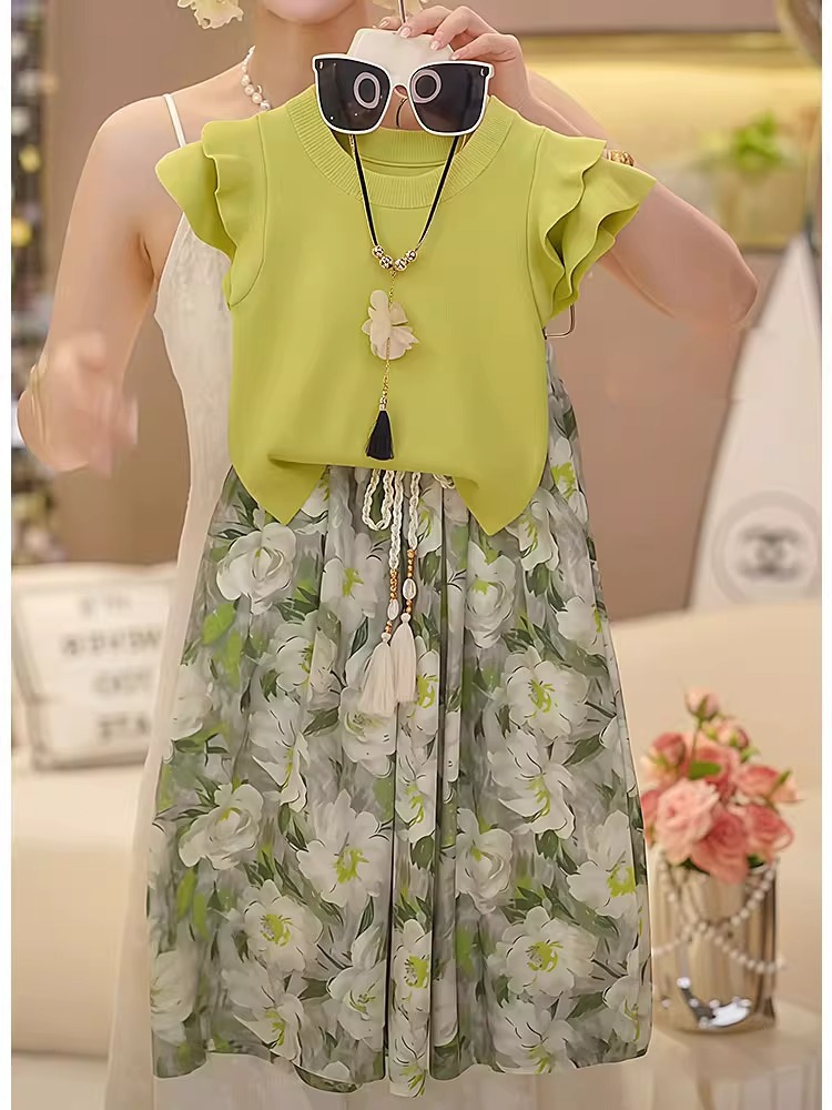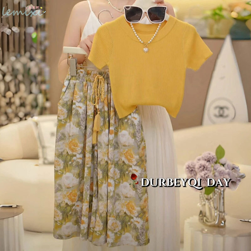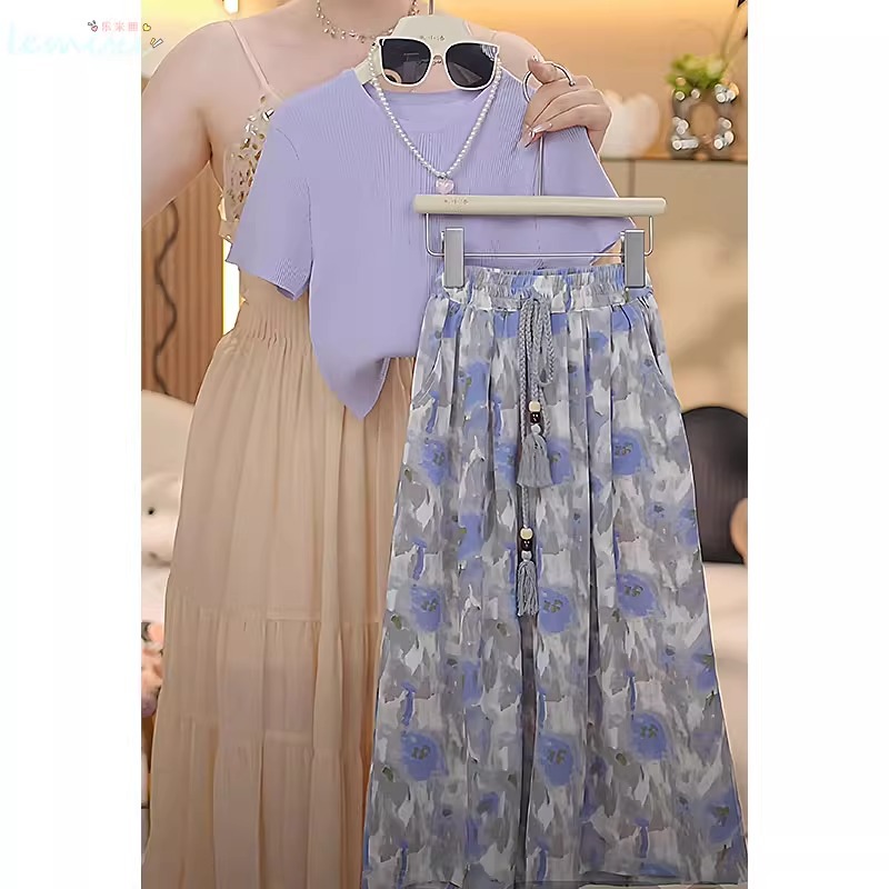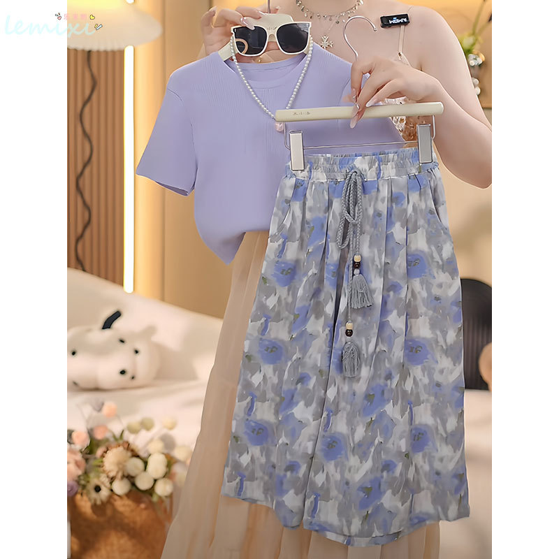 여자 꽃 치마 정장 2025 여름 와이드 레그 팬츠 정장 투피스 양복 플라잉 슬리브 Huzhou Zhili 아동복스토어 가기