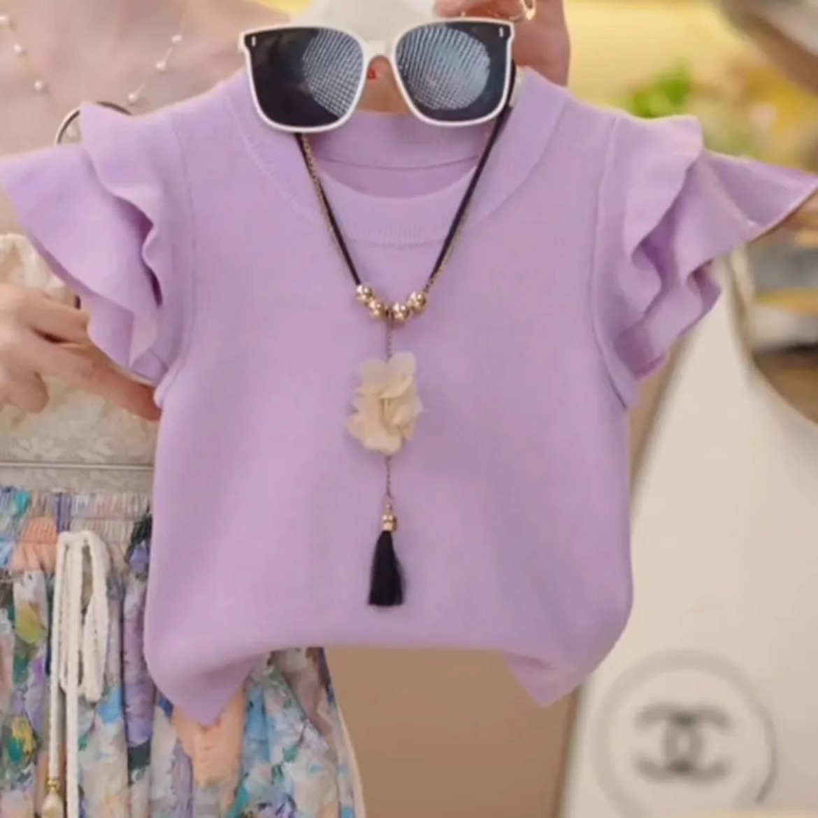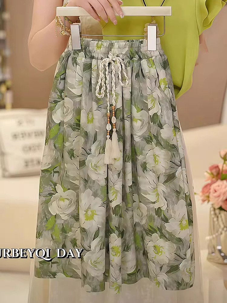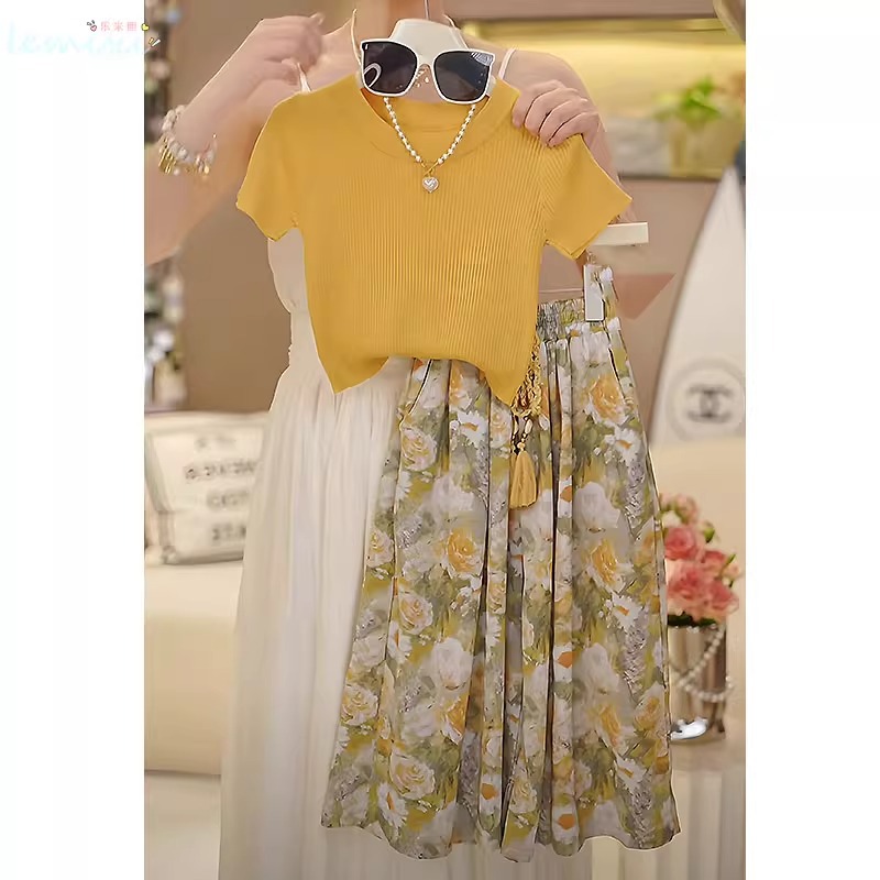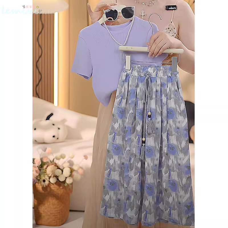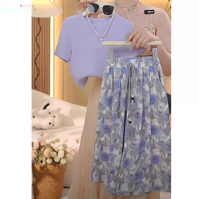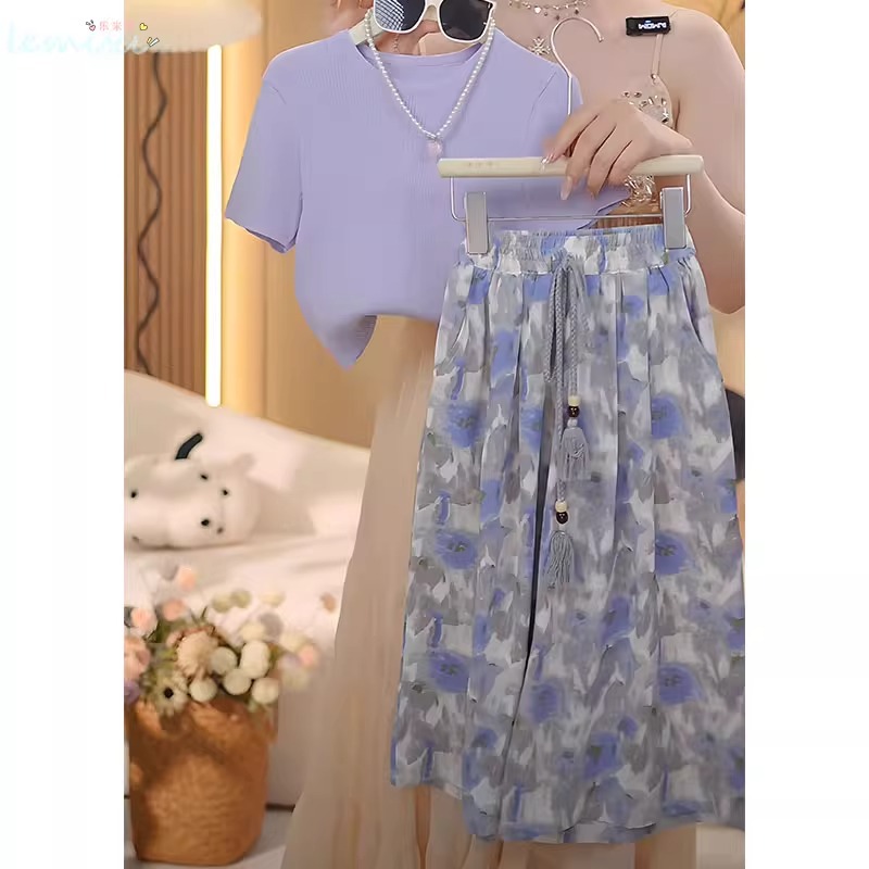 여자 꽃 치마 정장 2025 여름 와이드 레그 팬츠 정장 투피스 양복 플라잉 슬리브 Huzhou Zhili 아동복스토어 가기