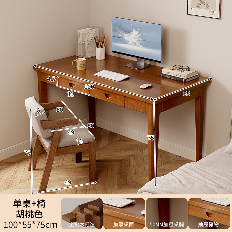 • 모든 단단한 나무 어두운 호두 색상 이중 서랍 100x55 단단한 나무 의자 조합