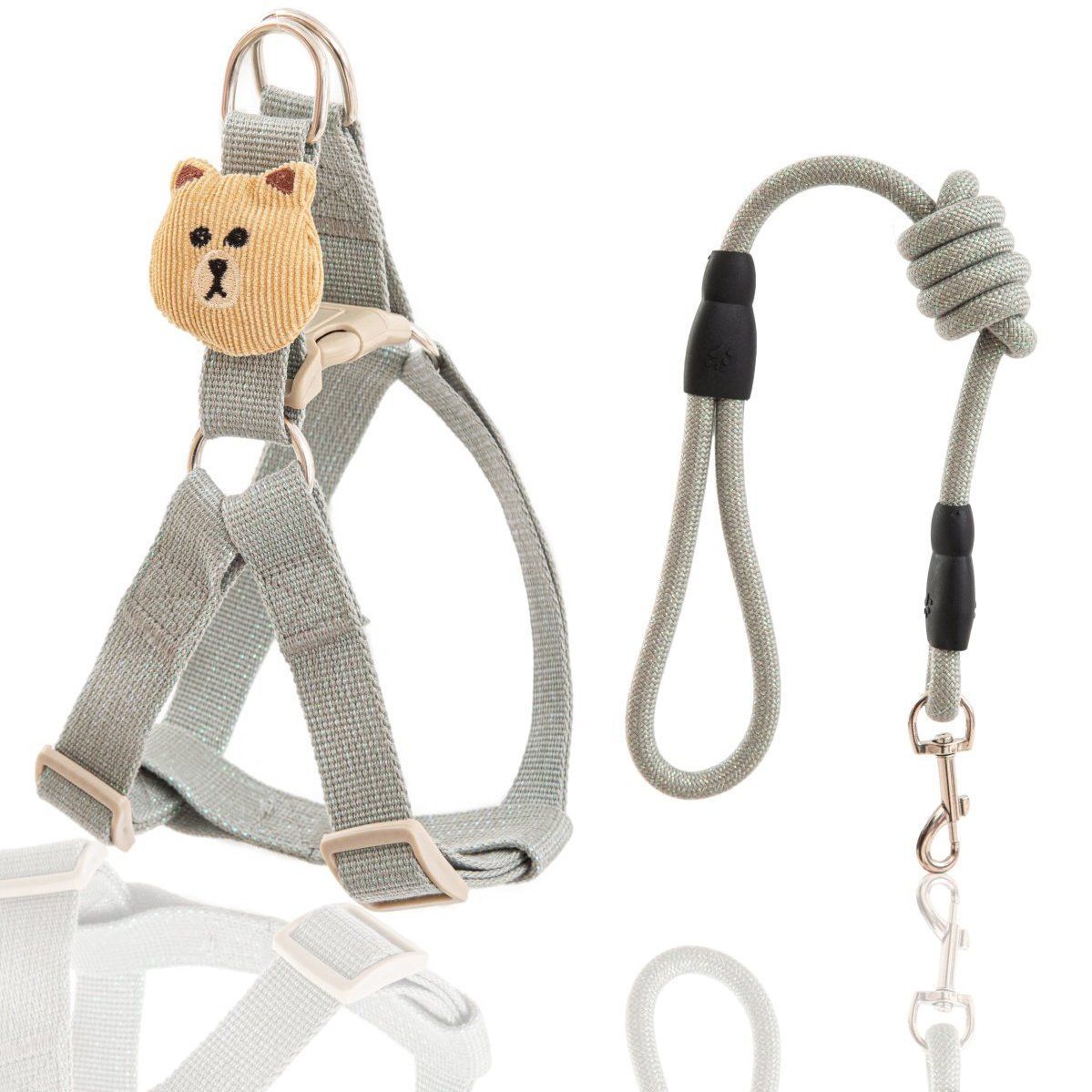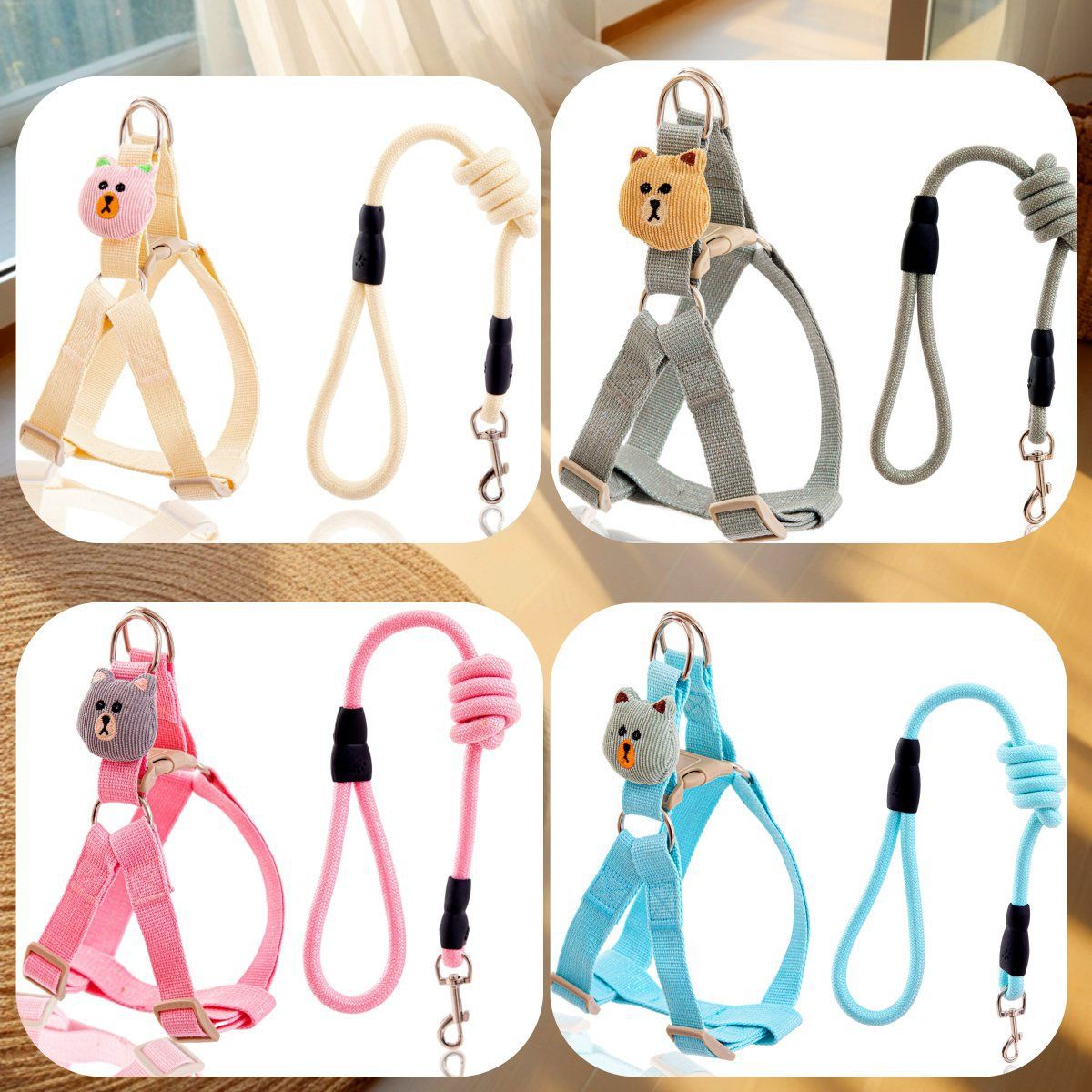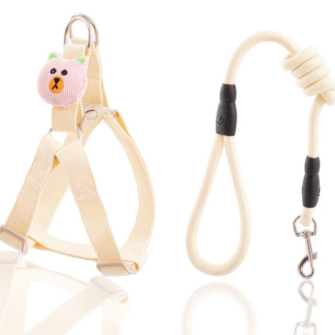 • 베이지 만화 스타일 1.5m 견인 로프 + 하네스