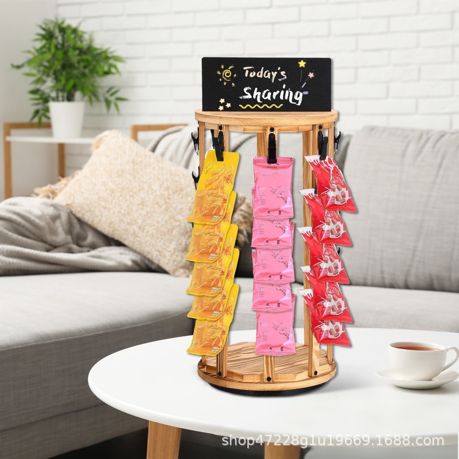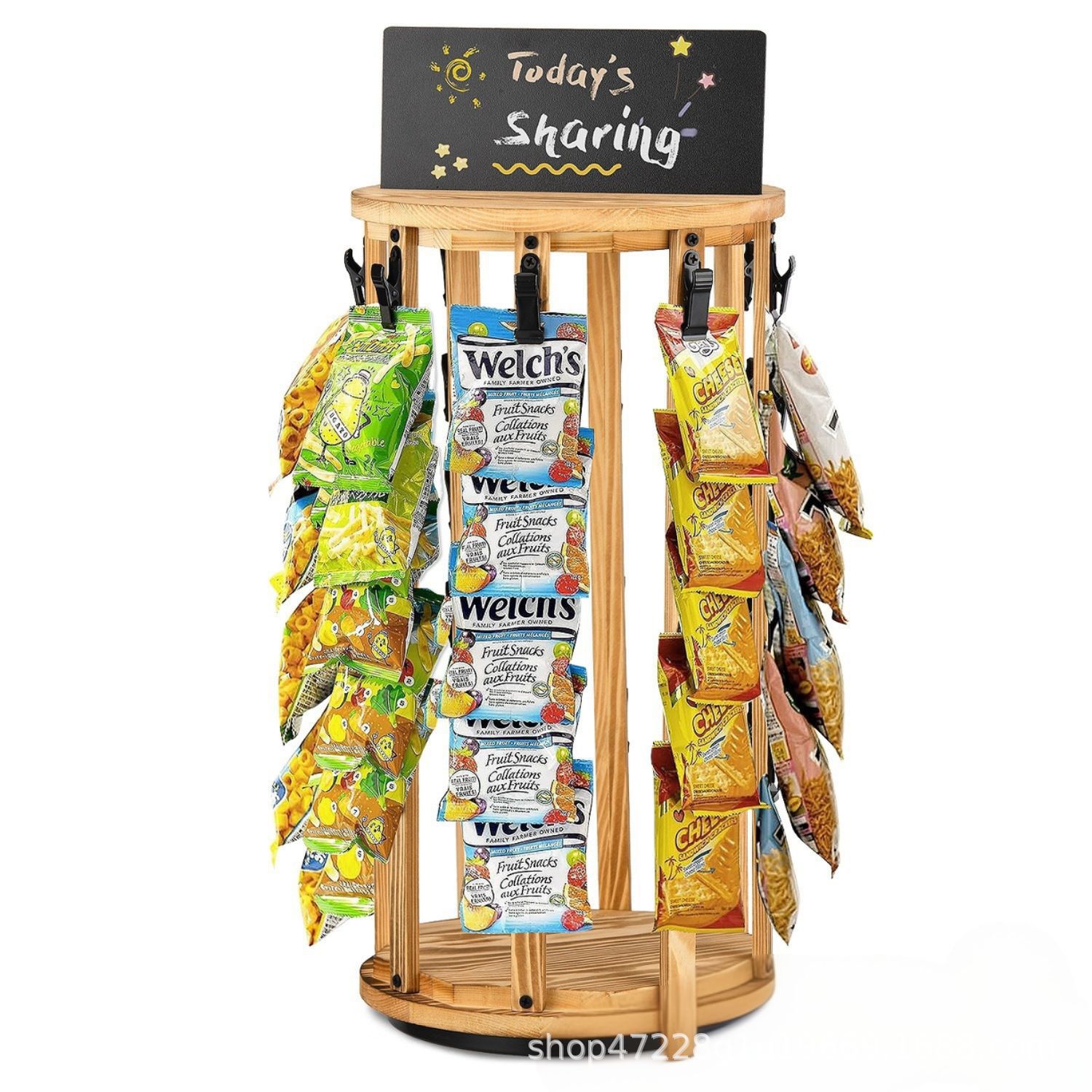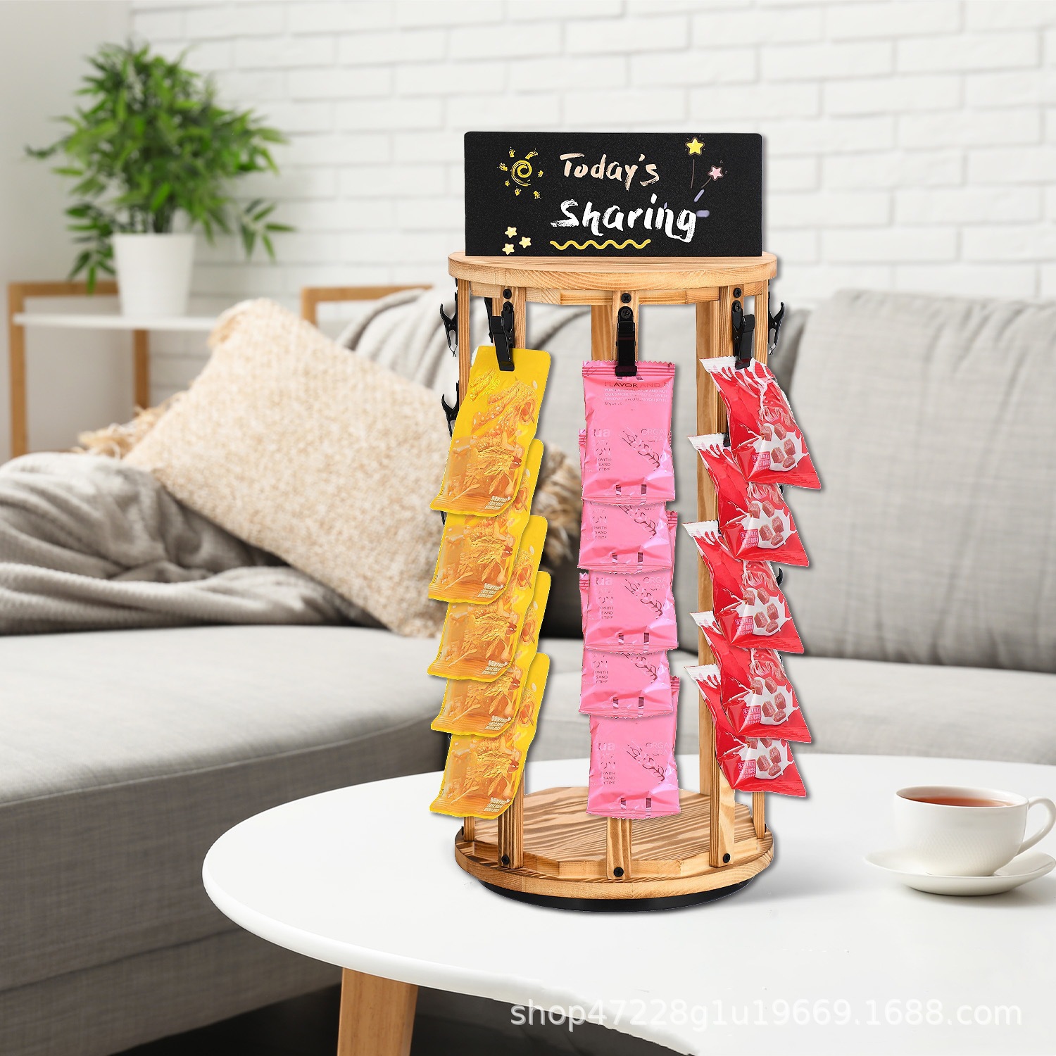 클립이 있는 크로스보더 목재 스낵 디스플레이 랙, 감자 칩 스낵 디스플레이 랙, 데스크탑 회전식 스토리지 랙스토어 가기
