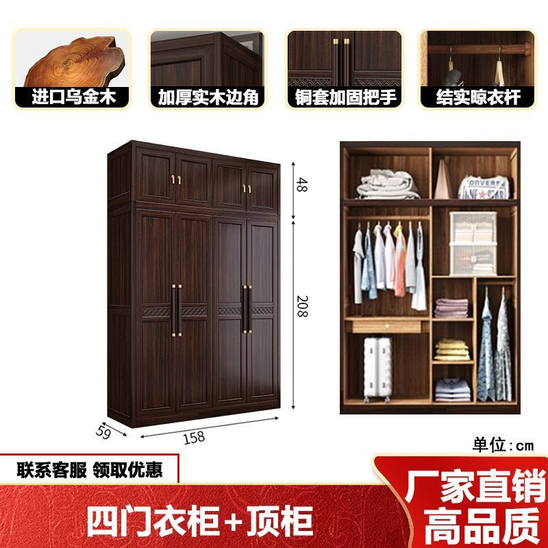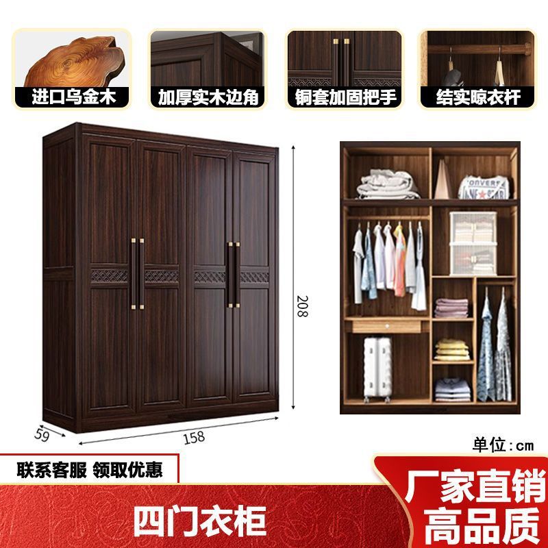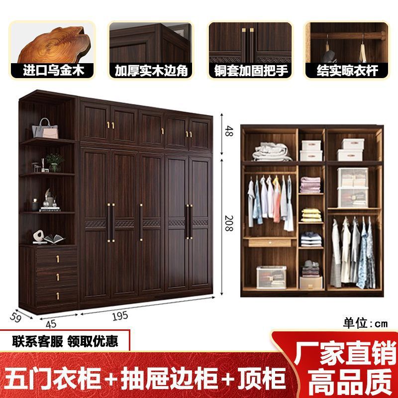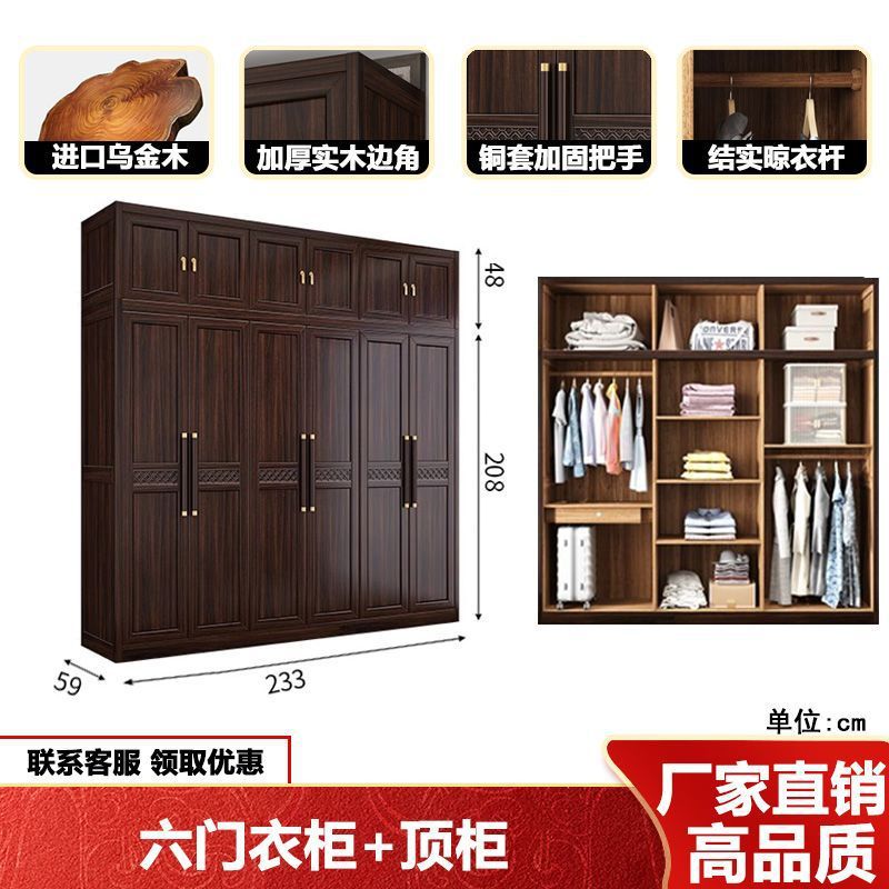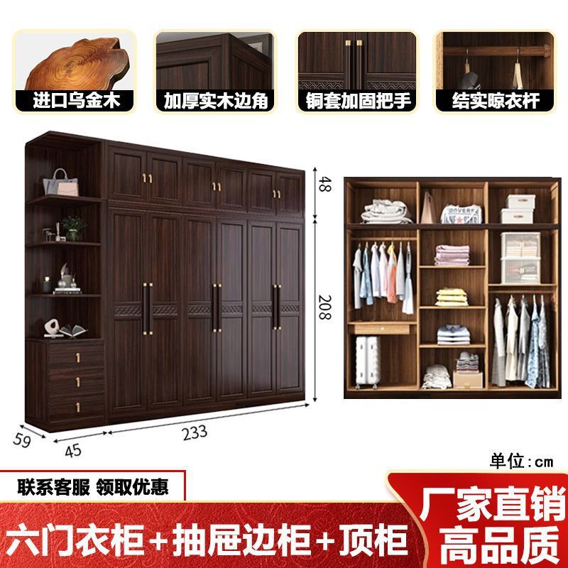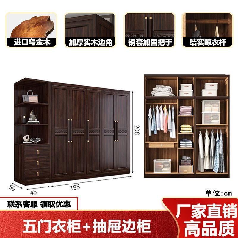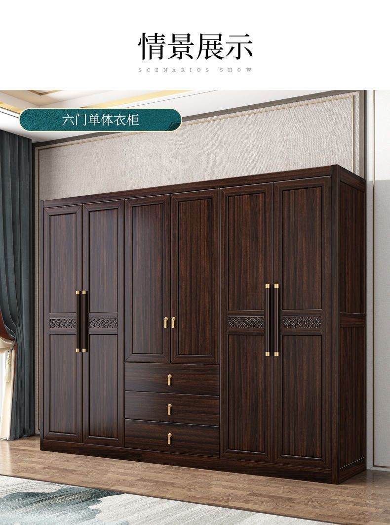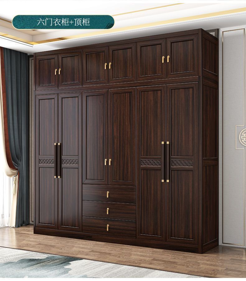 새로운 중국 스타일의 검은 나무 단단한 나무 옷장 현대 홈 침실 나무 대용량 저장 보관 의류 옷장
