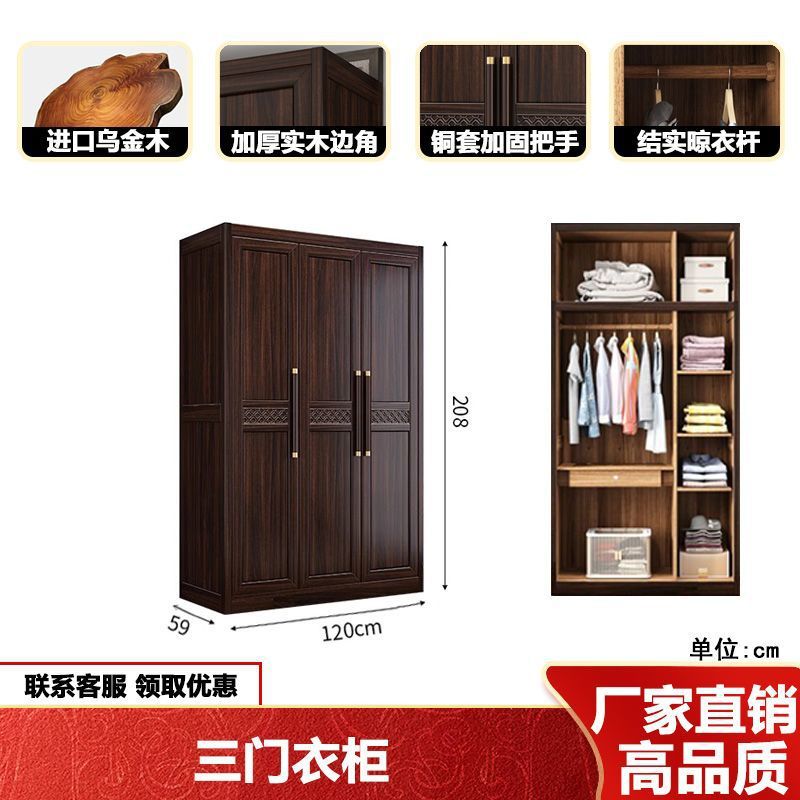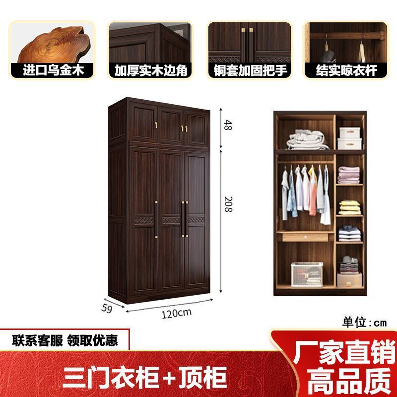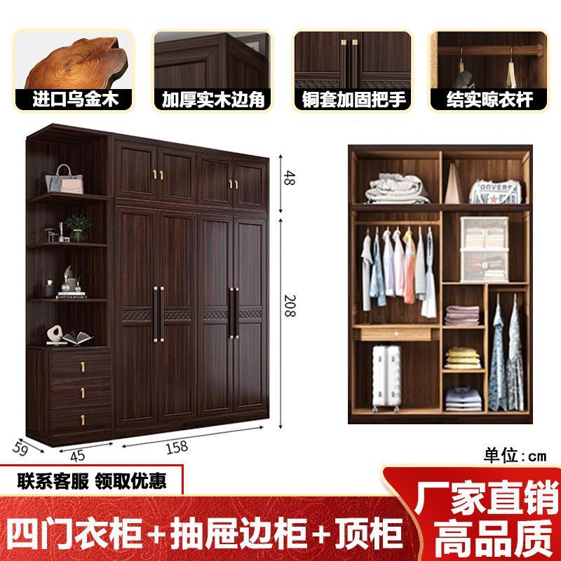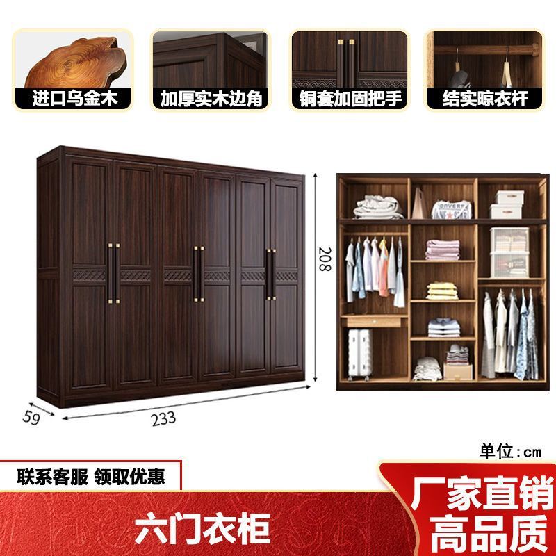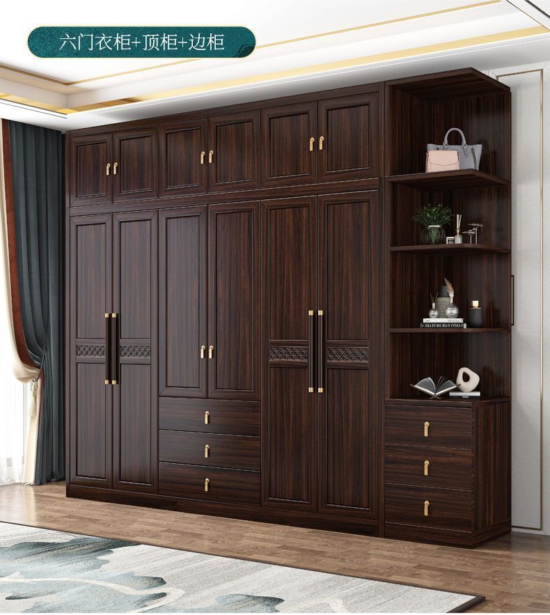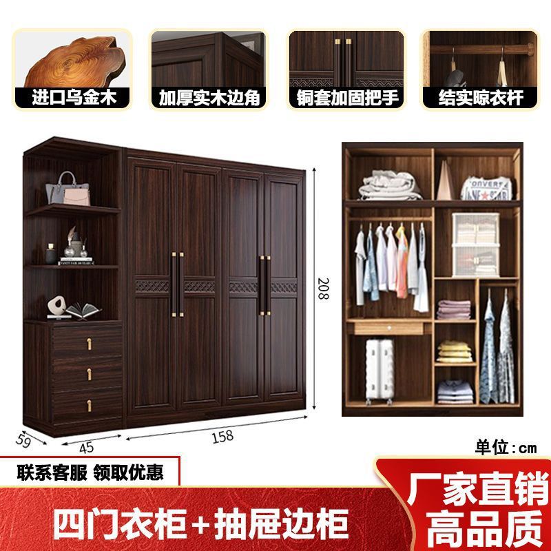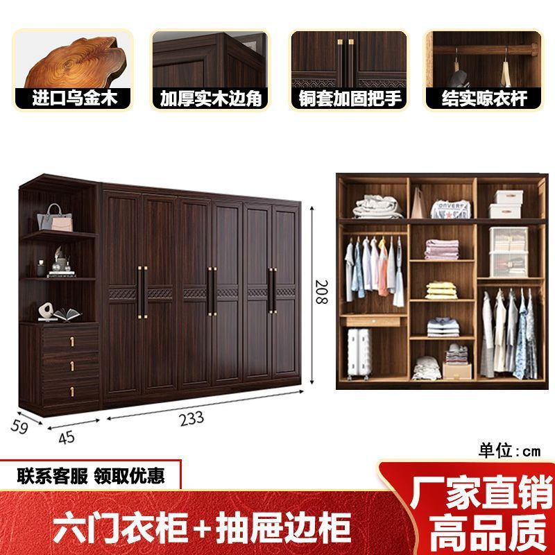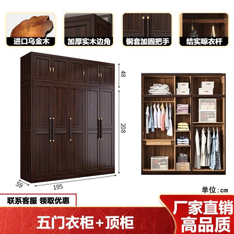 새로운 중국 스타일의 검은 나무 단단한 나무 옷장 현대 홈 침실 나무 대용량 저장 보관 의류 옷장