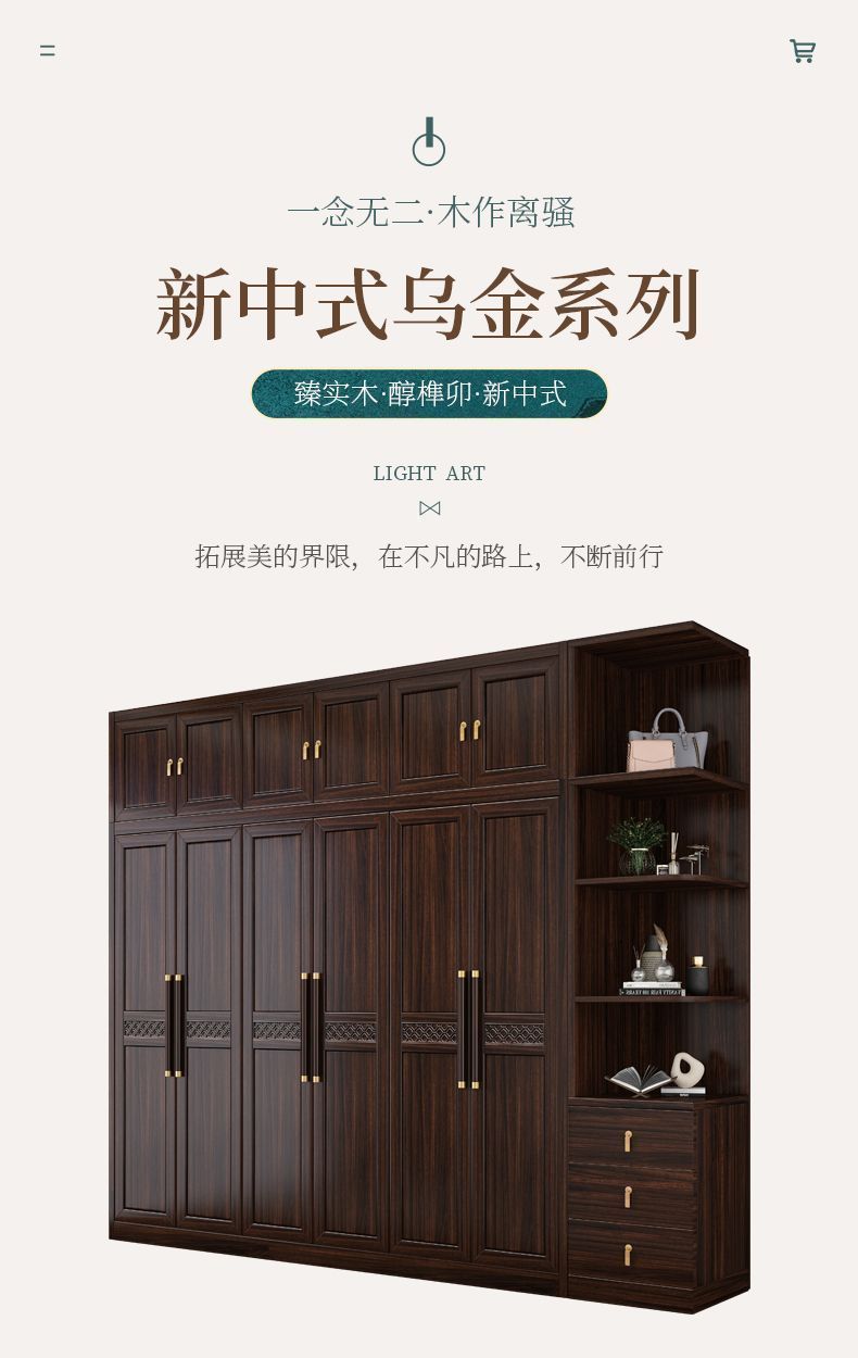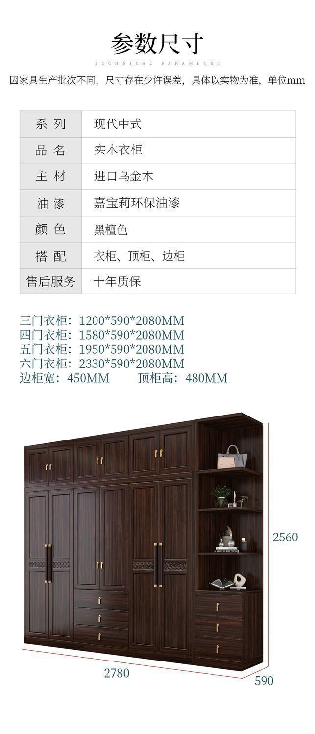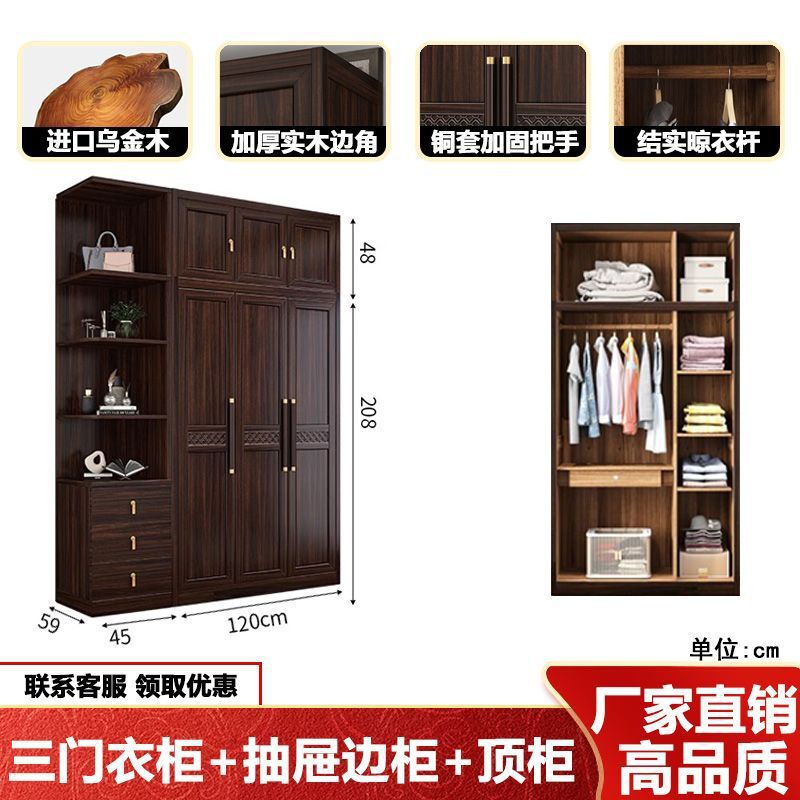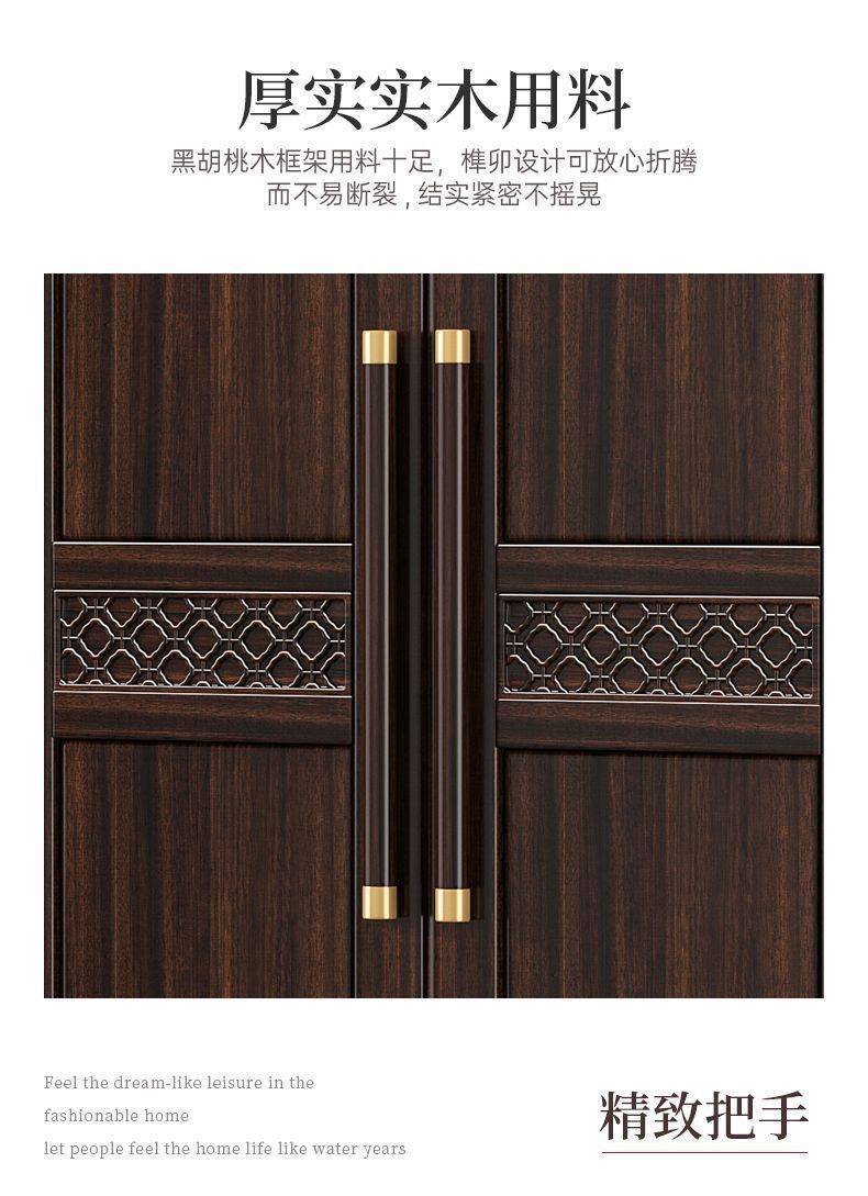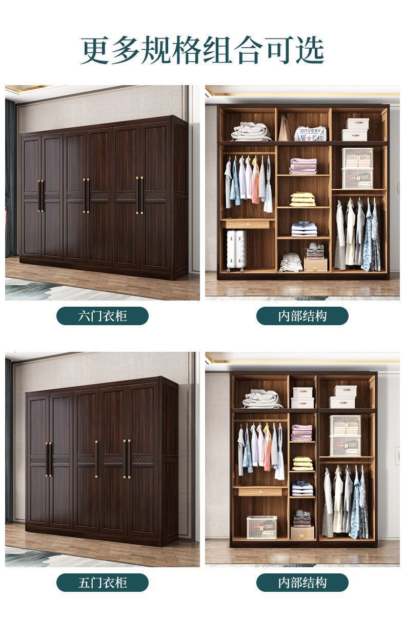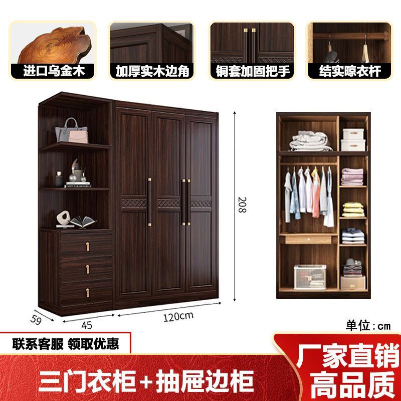 새로운 중국 스타일의 검은 나무 단단한 나무 옷장 현대 홈 침실 나무 대용량 저장 보관 의류 옷장