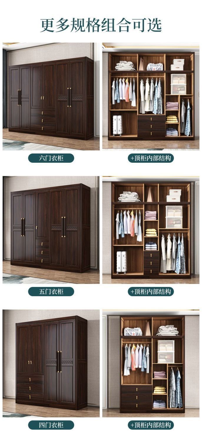 새로운 중국 스타일의 검은 나무 단단한 나무 옷장 현대 홈 침실 나무 대용량 저장 보관 의류 옷장스토어 가기