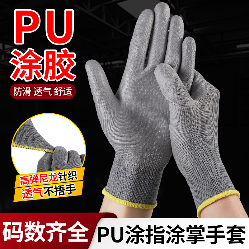 PU 코팅 손가락과 손바닥 노동 보호 장갑, 고무 코팅 나일론 작업, 내마모성, 미끄럼 방지, 노동 작업, 얇은 고무 보호스토어 가기