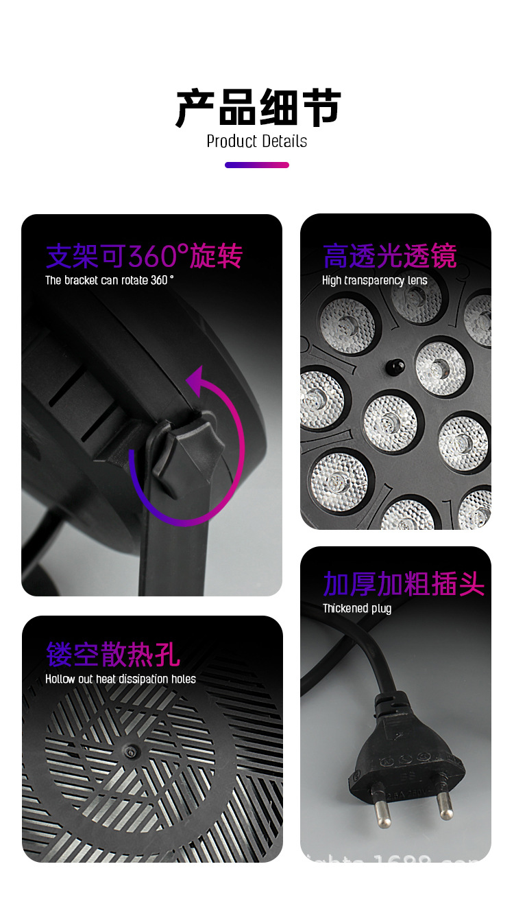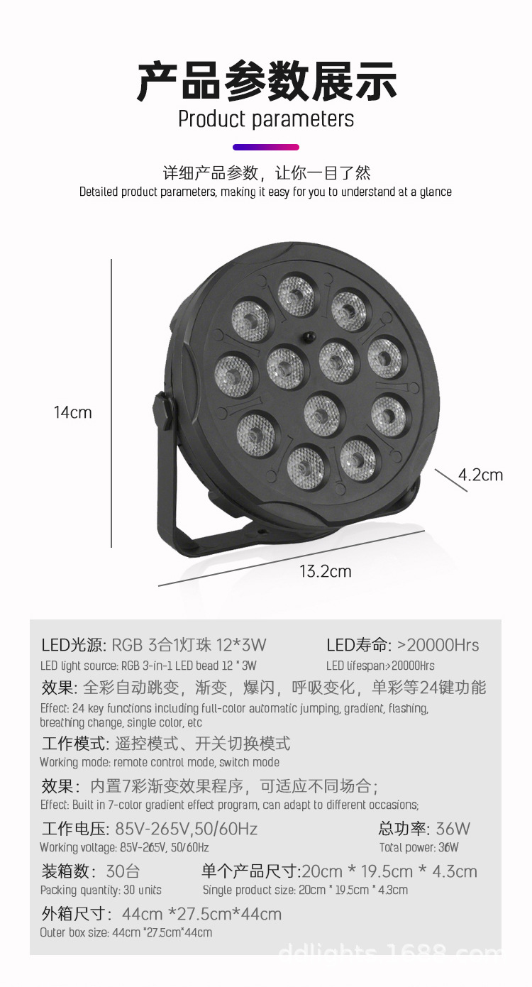 홈 크로스보더 새로운 12구 스테이지 라이트 파 라이트 RGB 원격 제어 KTV스토어 가기