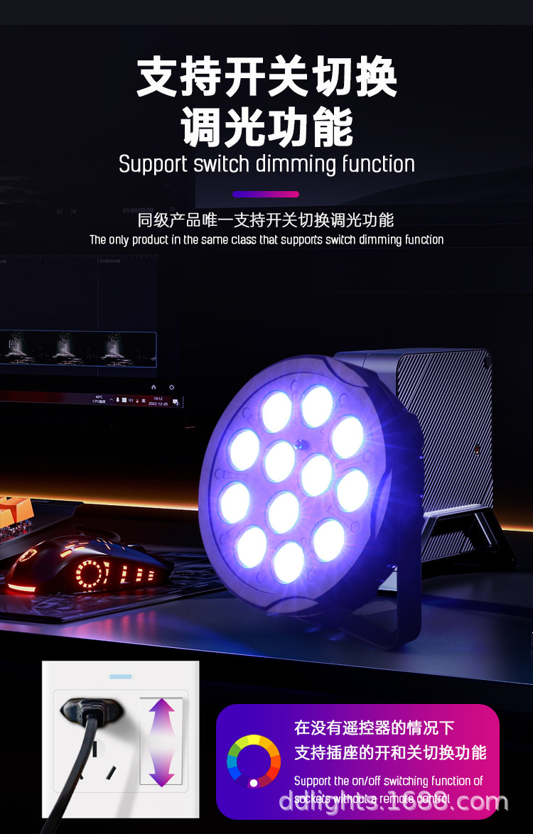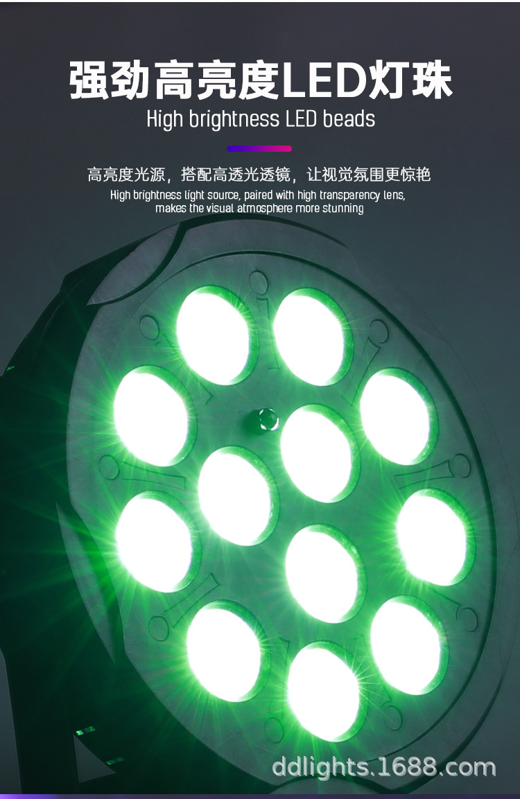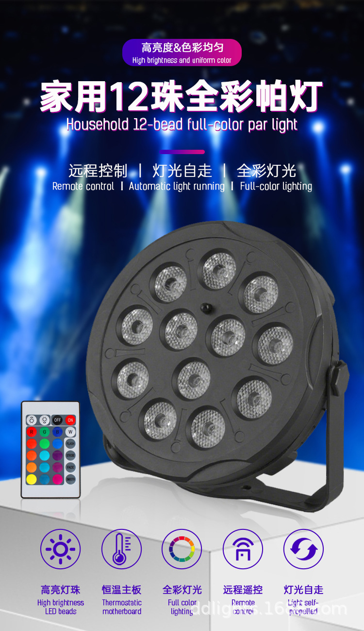 홈 크로스보더 새로운 12구 스테이지 라이트 파 라이트 RGB 원격 제어 KTV