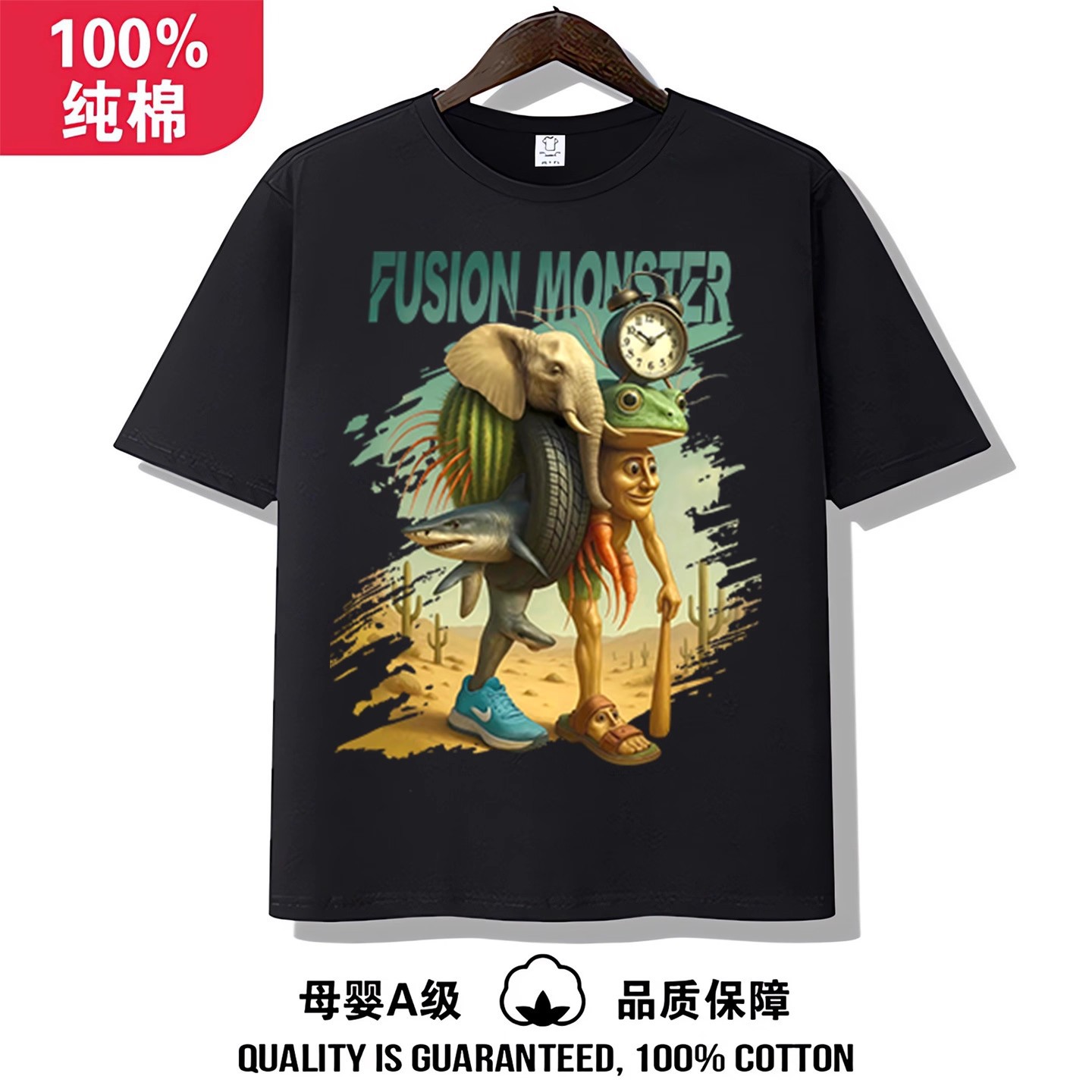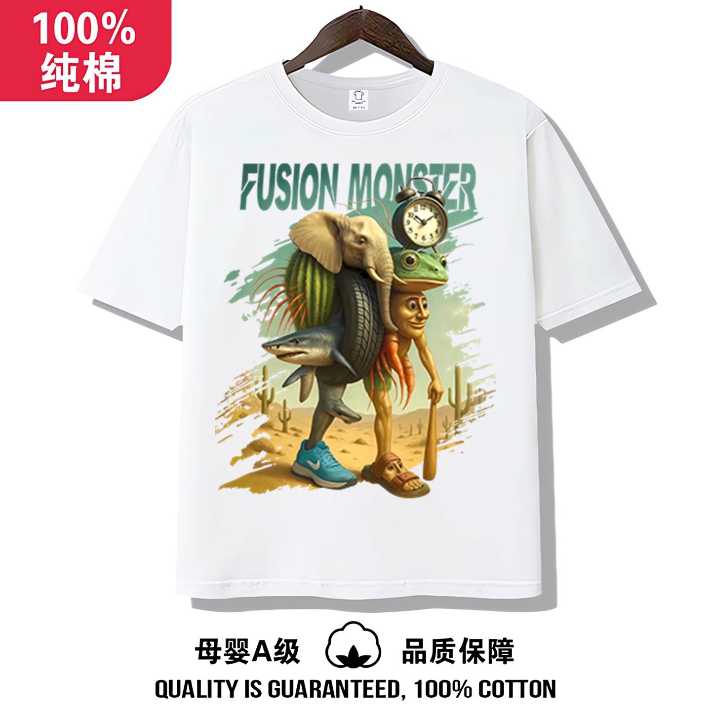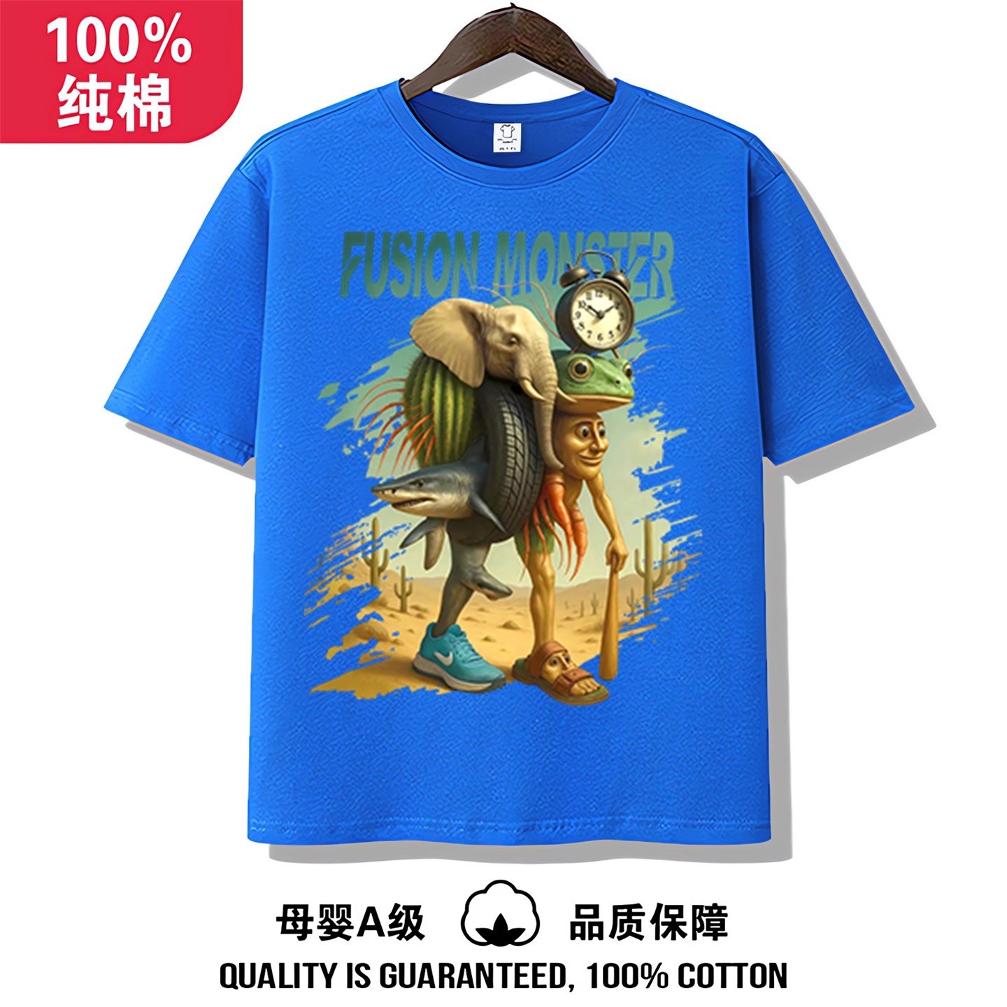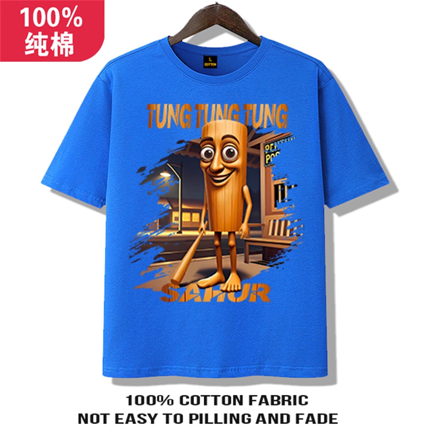 tungtungsahur Tongtongge 나무 막대기 추상 외국 산과 바다 이야기 여름 어린이 순면 반팔 티셔츠 유행스토어 가기