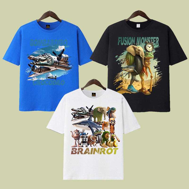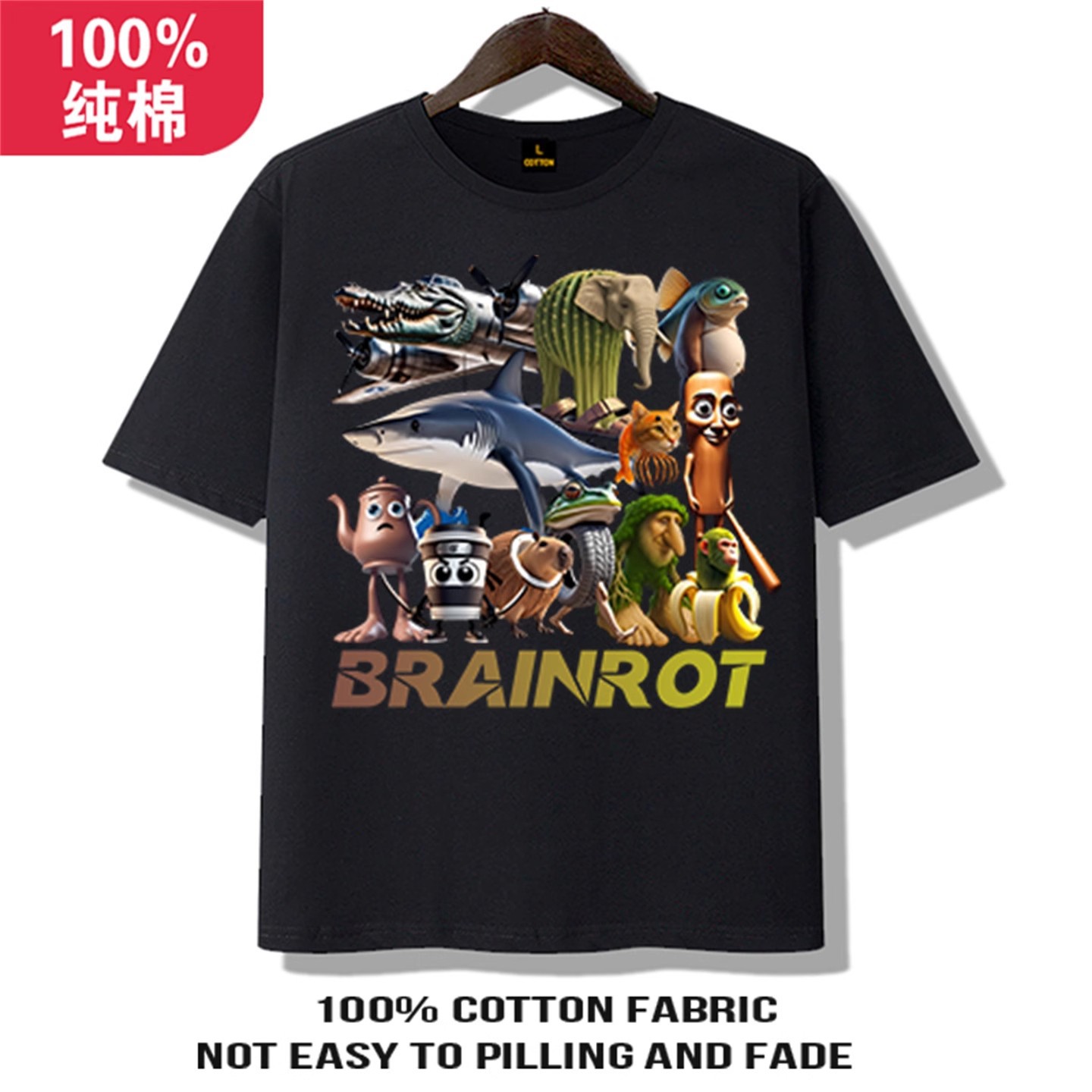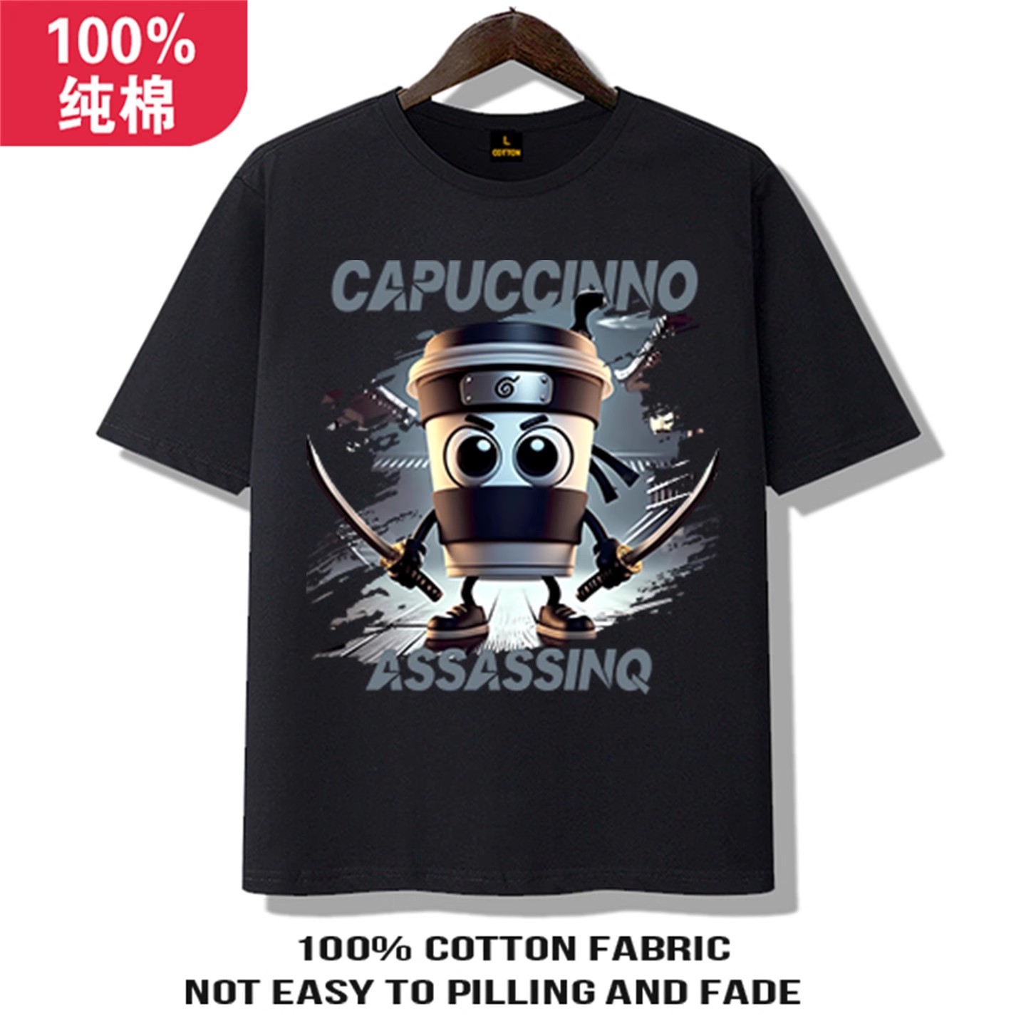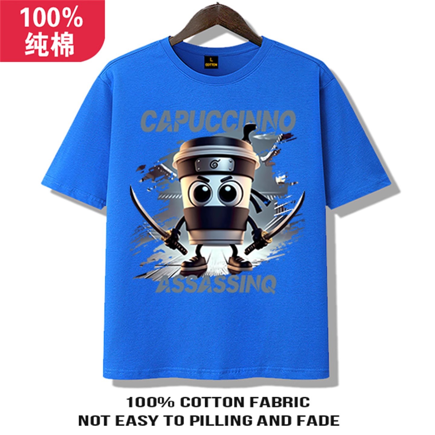 tungtungsahur Tongtongge 나무 막대기 추상 외국 산과 바다 이야기 여름 어린이 순면 반팔 티셔츠 유행스토어 가기