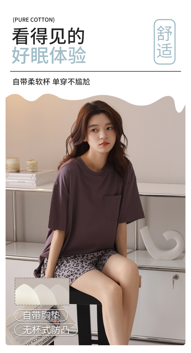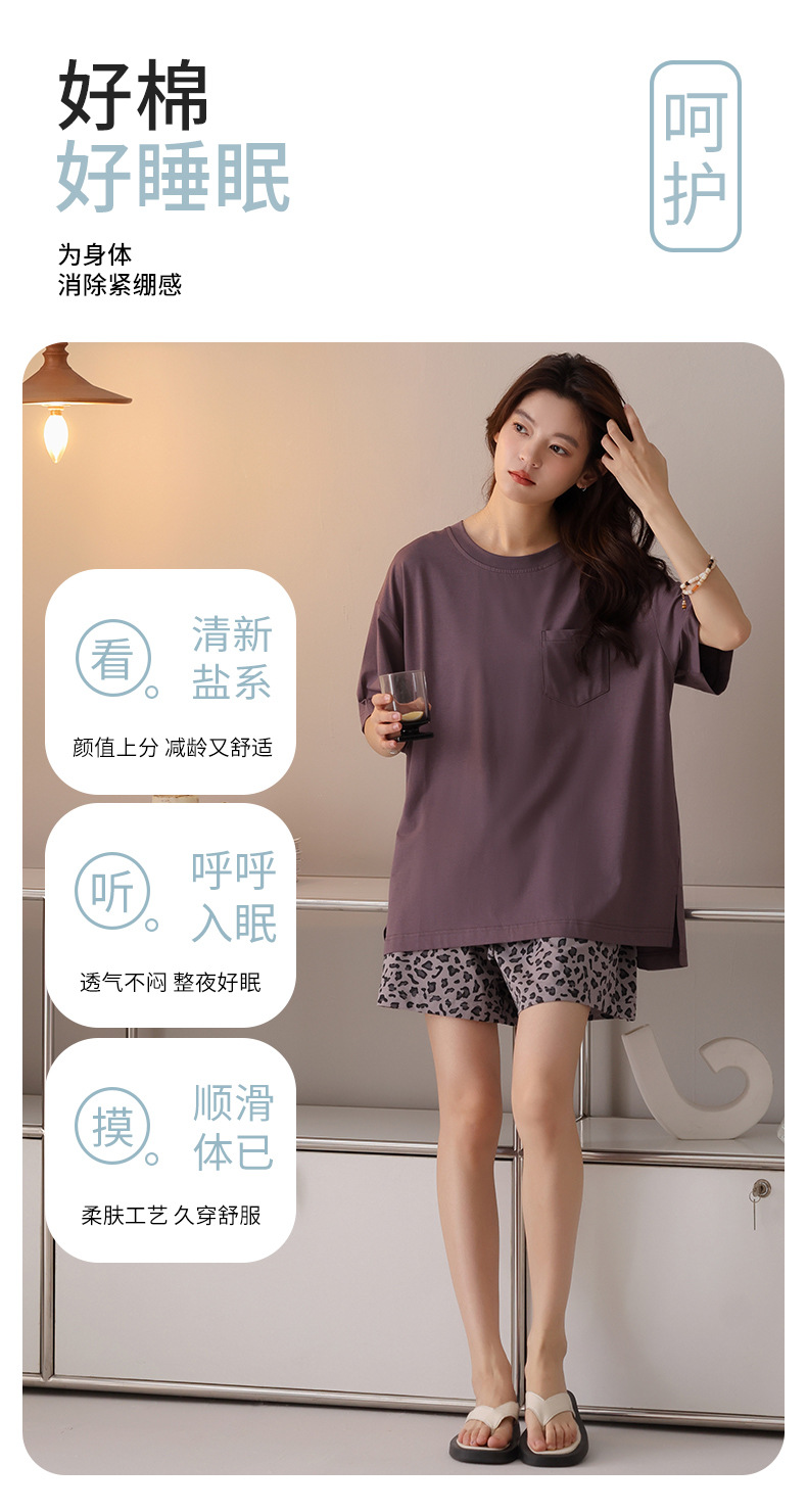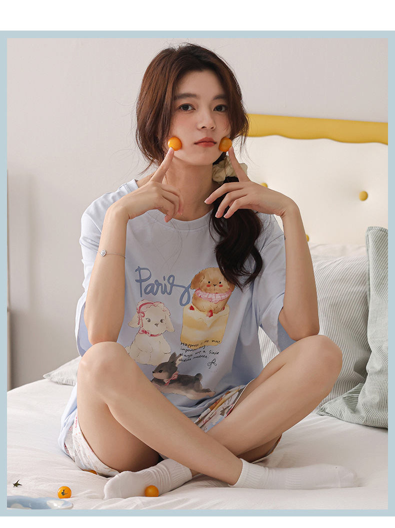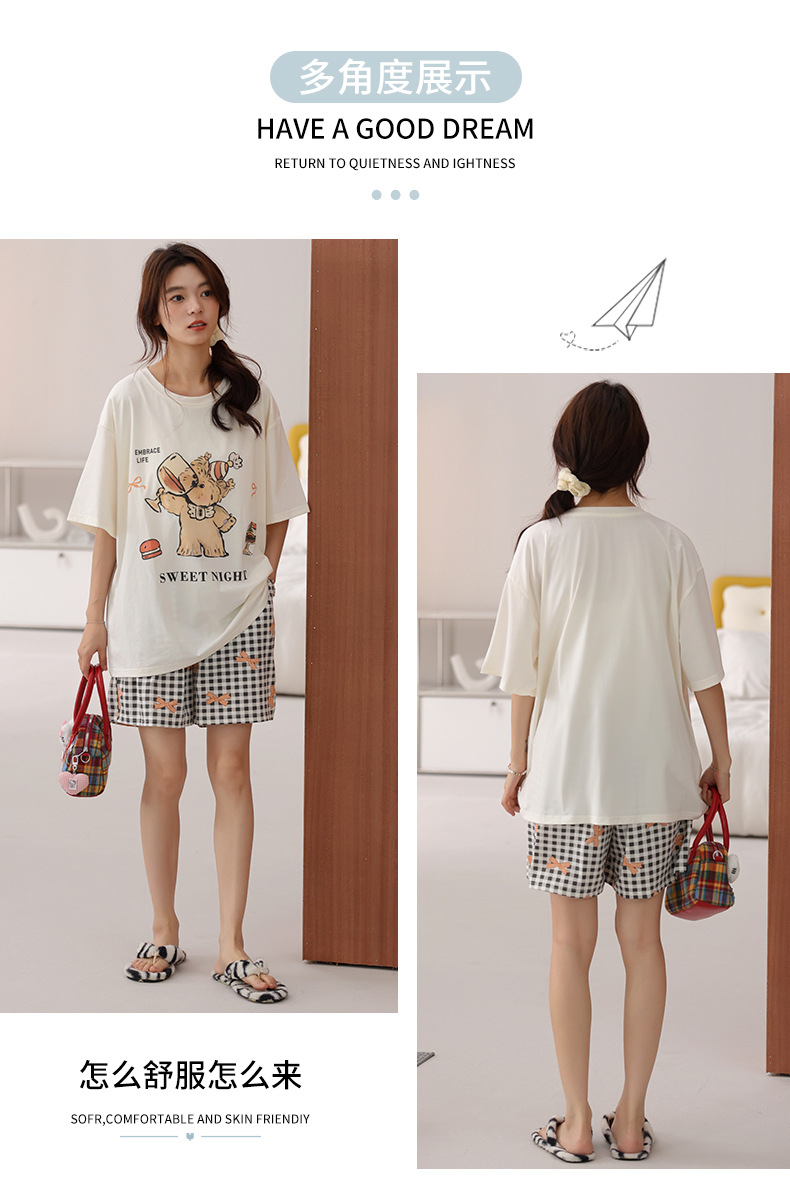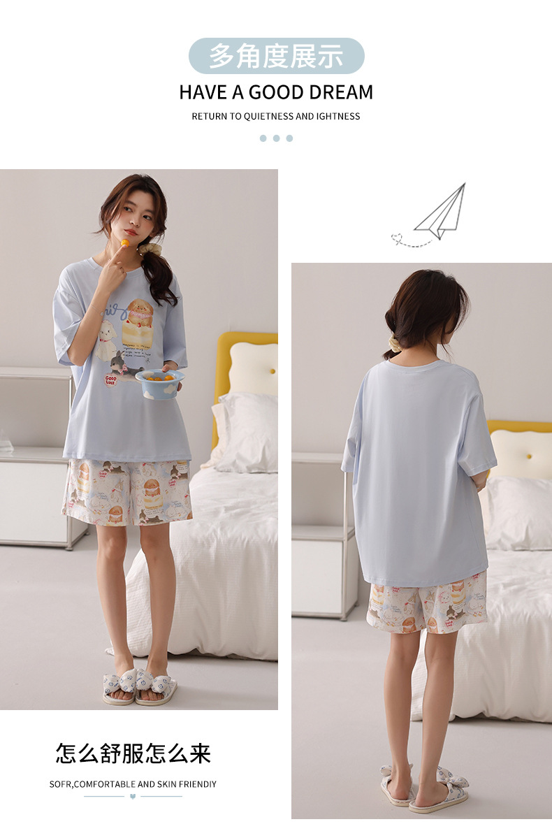 여성용 잠옷 여름 2025 새로운 순수 코튼 반팔 반바지 홈웨어 여름 얇고 시원한 코튼 투피스 슈트스토어 가기