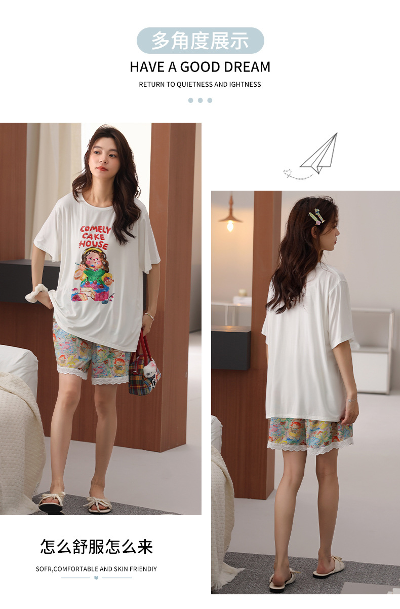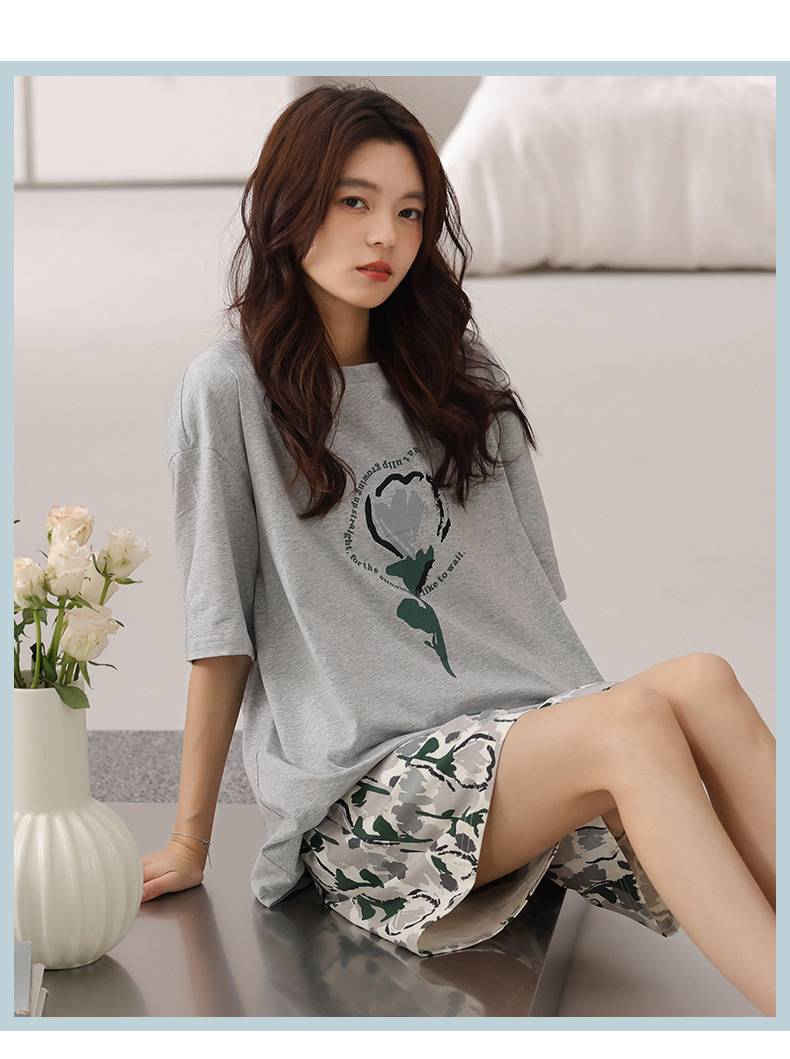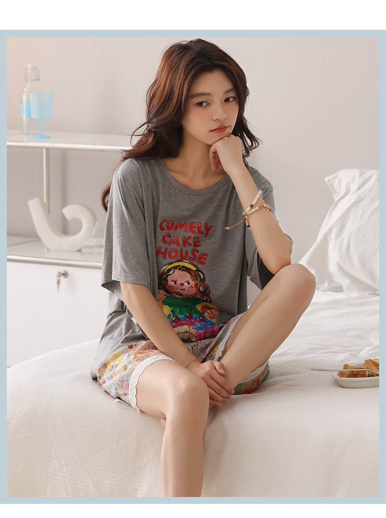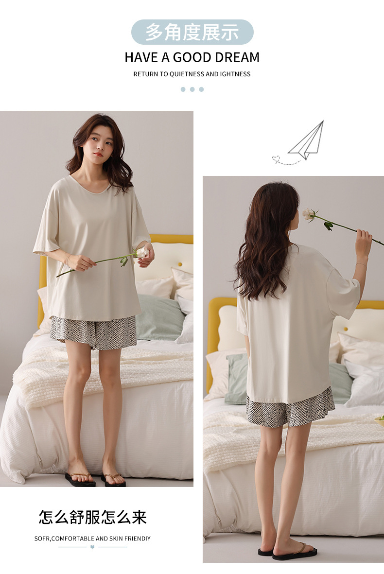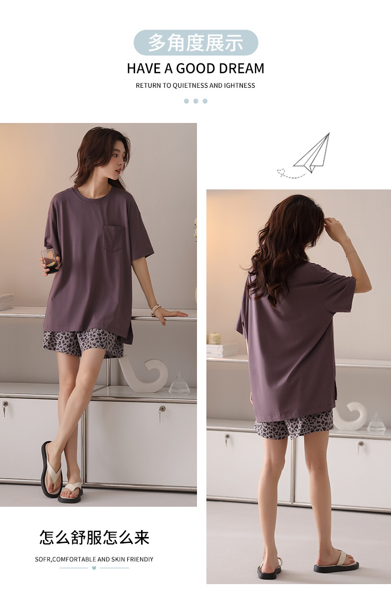 여성용 잠옷 여름 2025 새로운 순수 코튼 반팔 반바지 홈웨어 여름 얇고 시원한 코튼 투피스 슈트스토어 가기