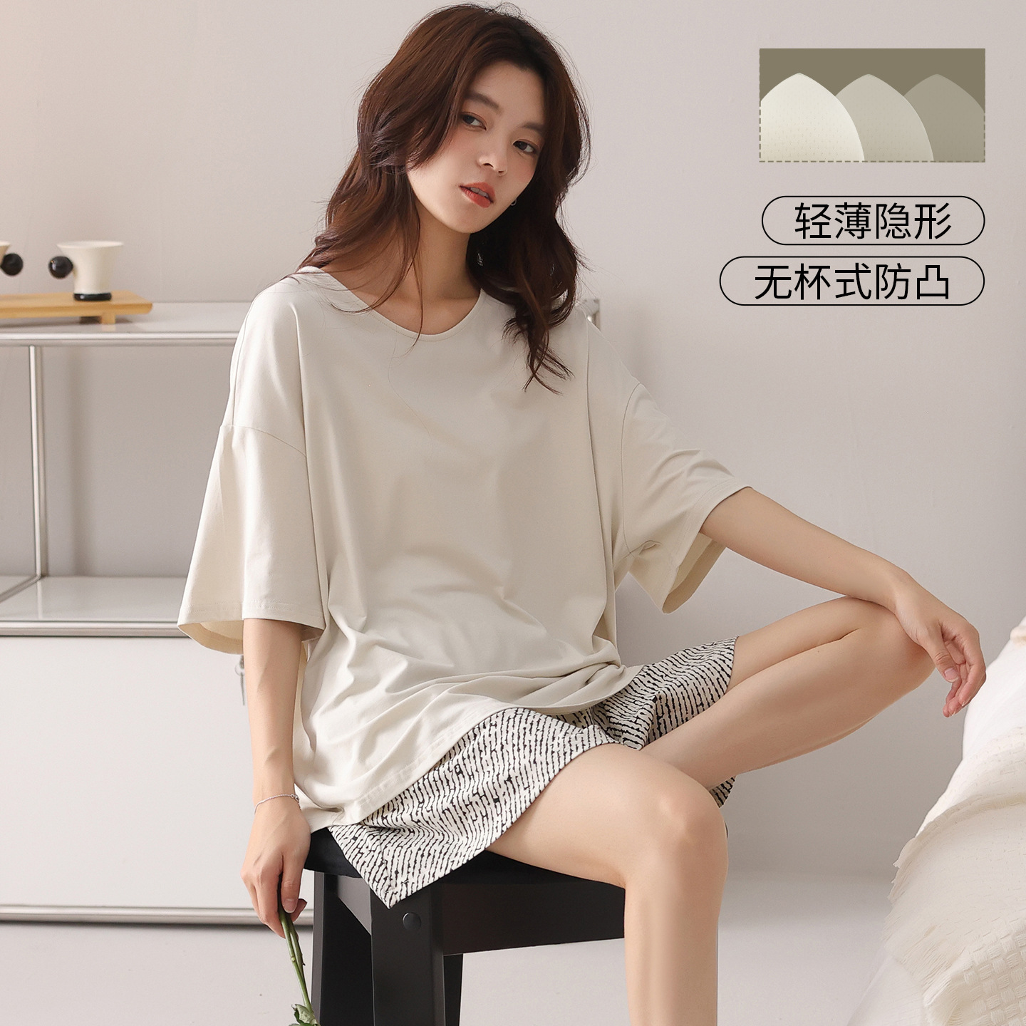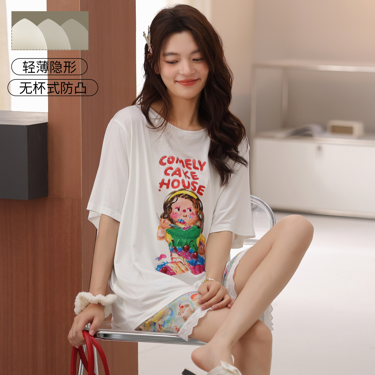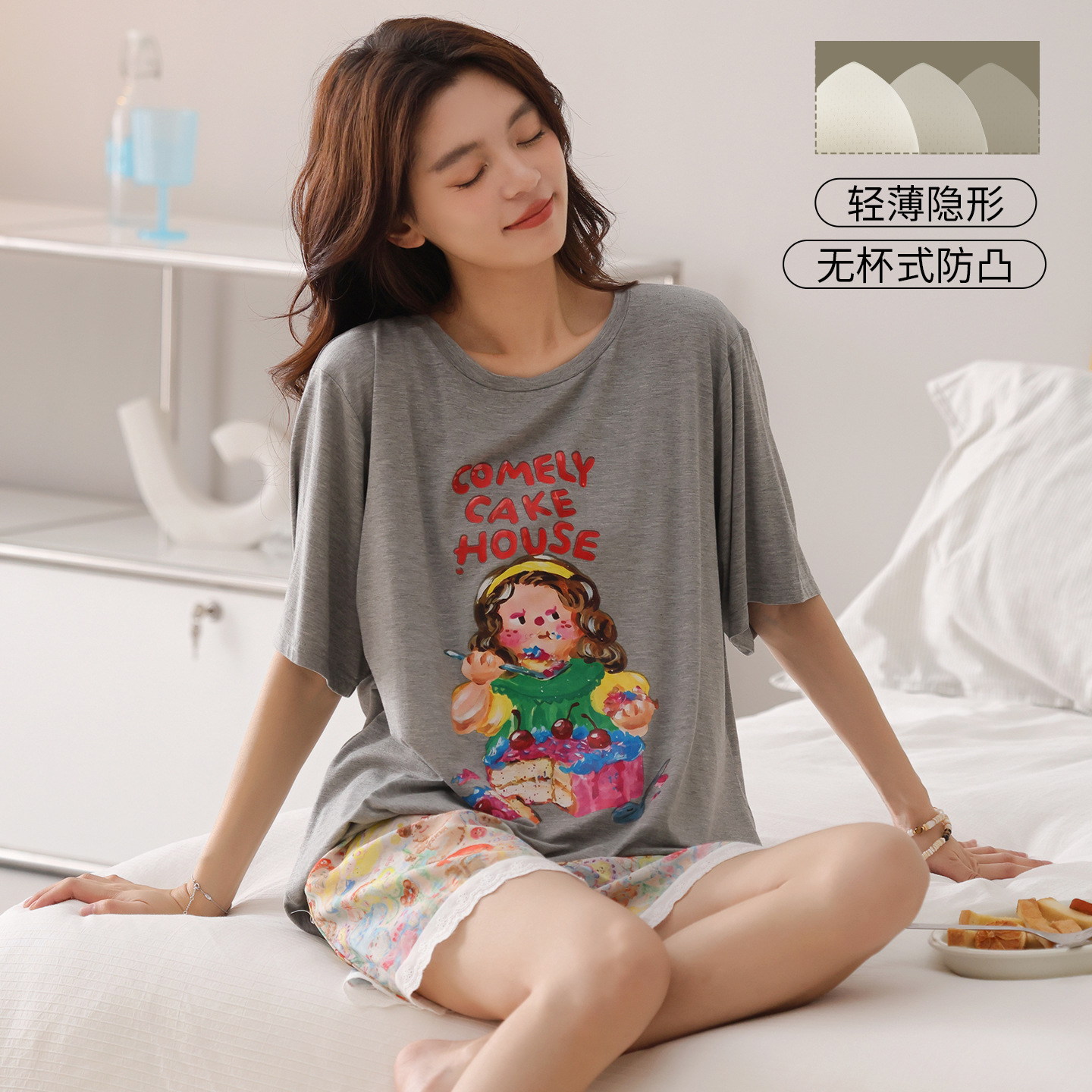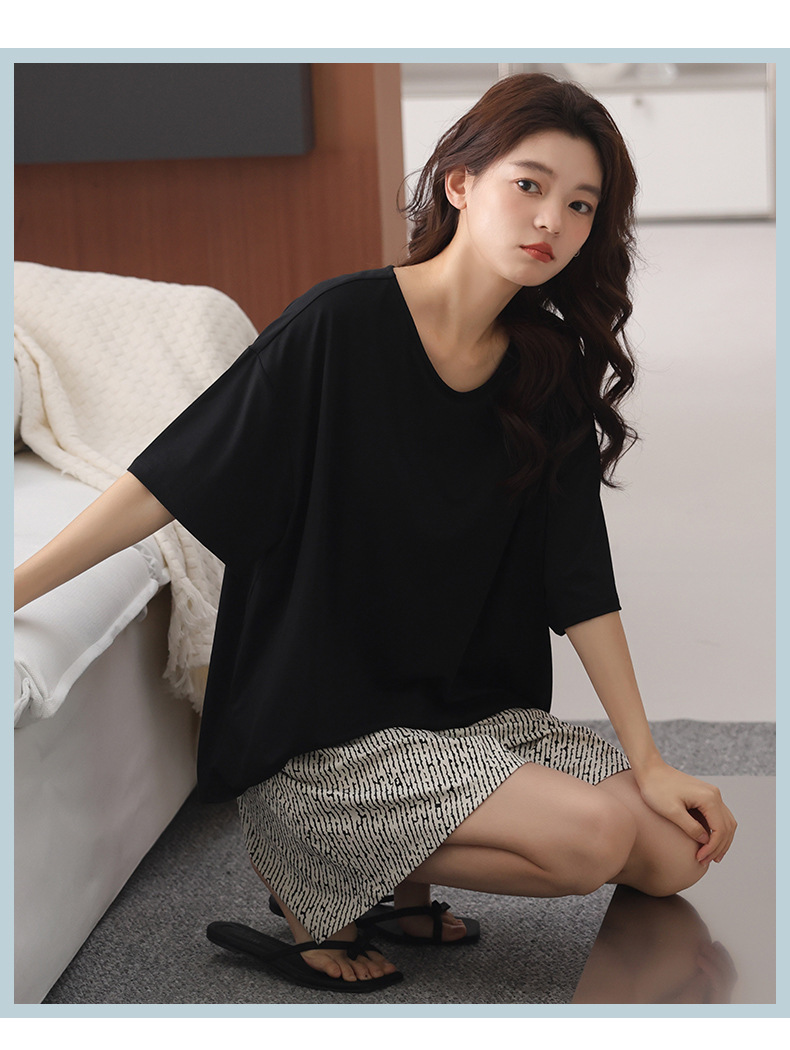여성용 잠옷 여름 2025 새로운 순수 코튼 반팔 반바지 홈웨어 여름 얇고 시원한 코튼 투피스 슈트스토어 가기