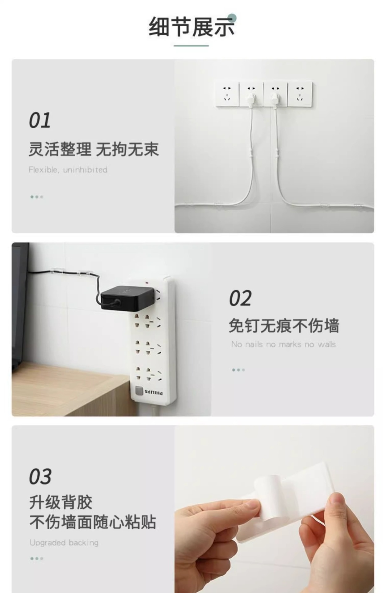 펀치 없는 케이블 정리기, 와이어 홀더, 흔적 없는 자체 접착식 데이터 케이블 보관, 네트워크 케이블 배선, 벽면 플러그인 고정 장치스토어 가기