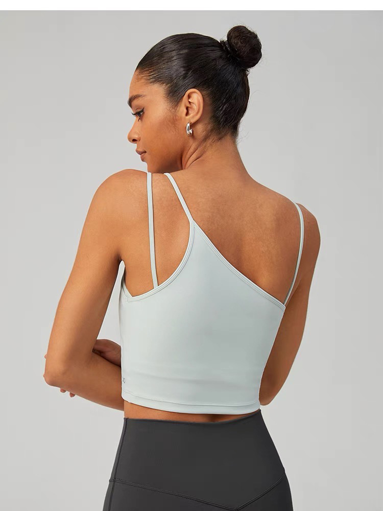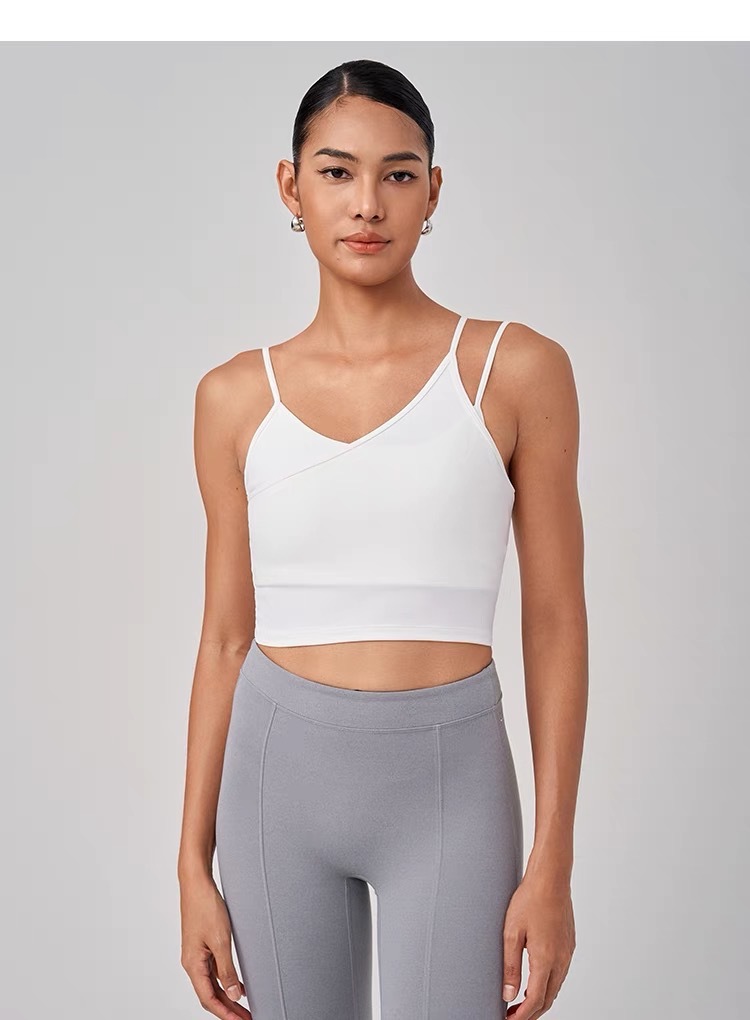 가짜 투피스 아름다운 등끈 요가 브라와 스포츠 브라를 겹쳐 입는 고탄성 충격 방지 허리 조절 불규칙 피트니스 조끼스토어 가기