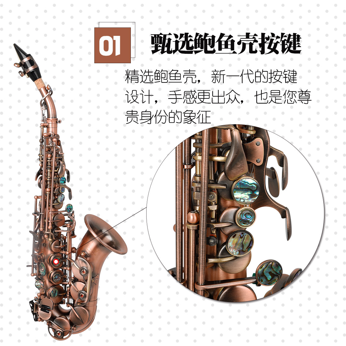 产品名称:SLADE雷德高音萨克斯小弯管降B调青铜管体雕花