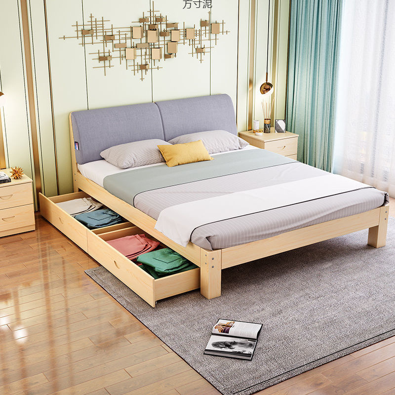 원목 침대 모던 심플 1.5m 더블 침대 1.8m 경제적인 임대 침대 프레임 1.2m 싱글 원목 침대스토어 가기