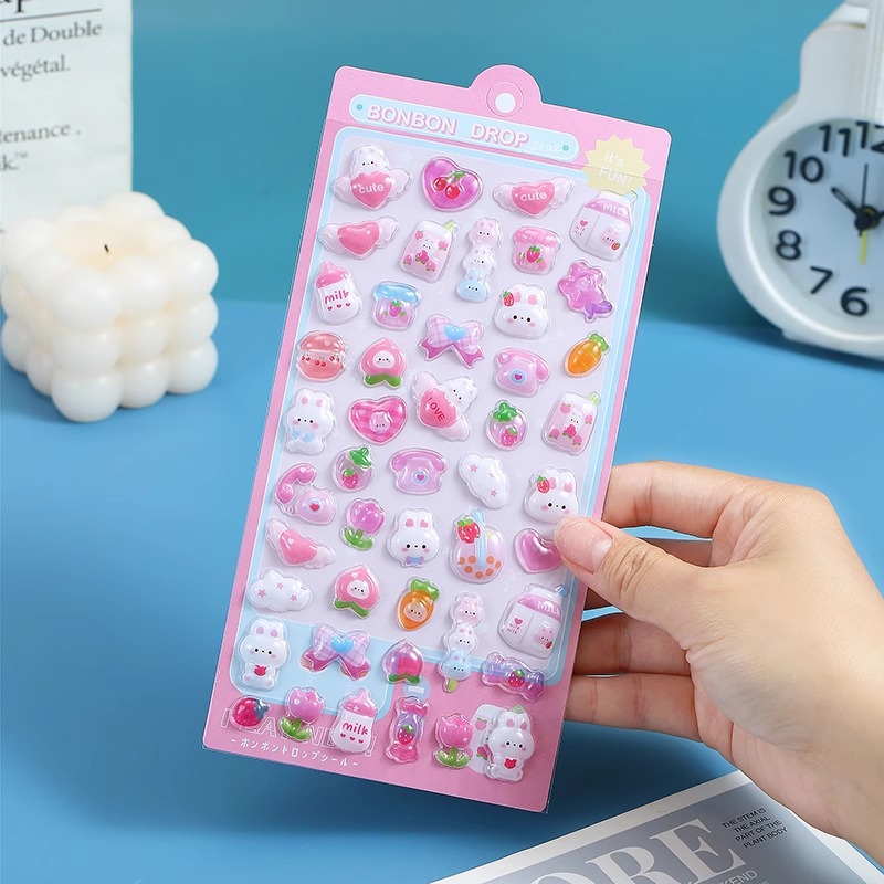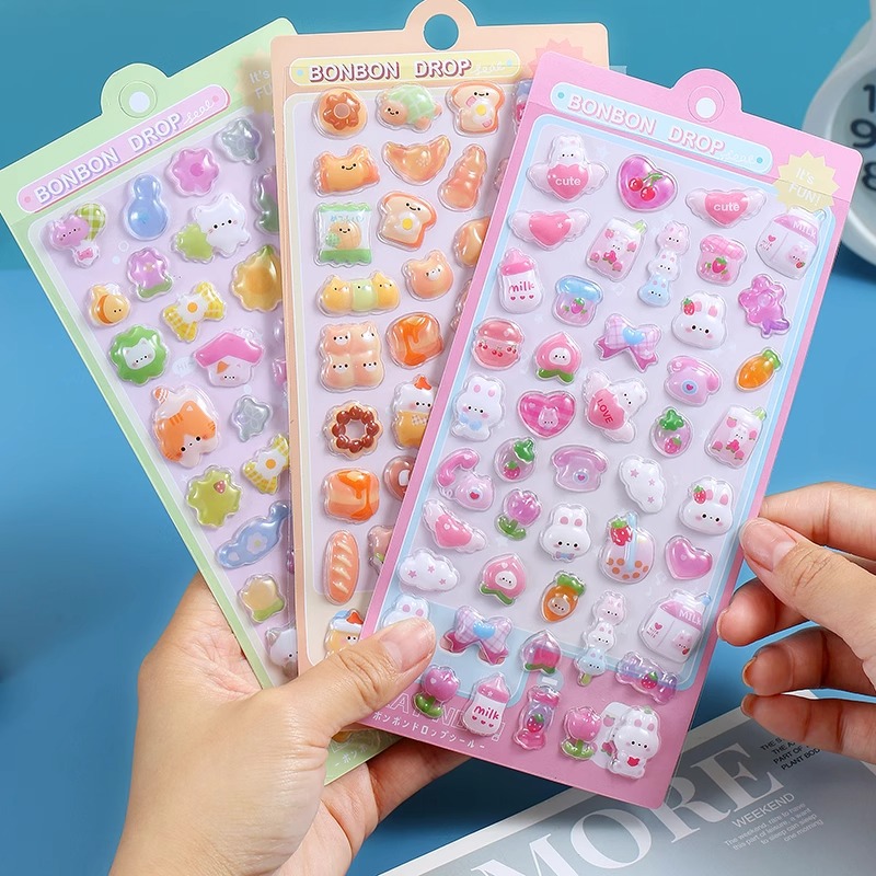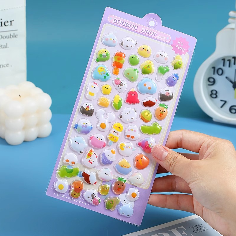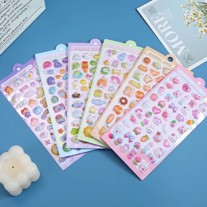 어린이 만화 입체 스티커 귀여운 동물 크리스탈 스티커 소녀 투명 3D 입체 양각 휴대 전화 재미 스티커스토어 가기