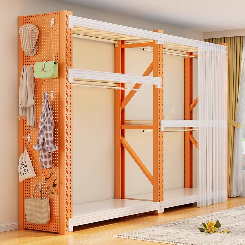 개방형 옷걸이 침실 수납 캐비닛 간단한 조립 바닥 스탠딩 수납 선반 코트 선반 임대실 선반 옷장스토어 가기