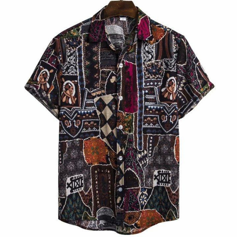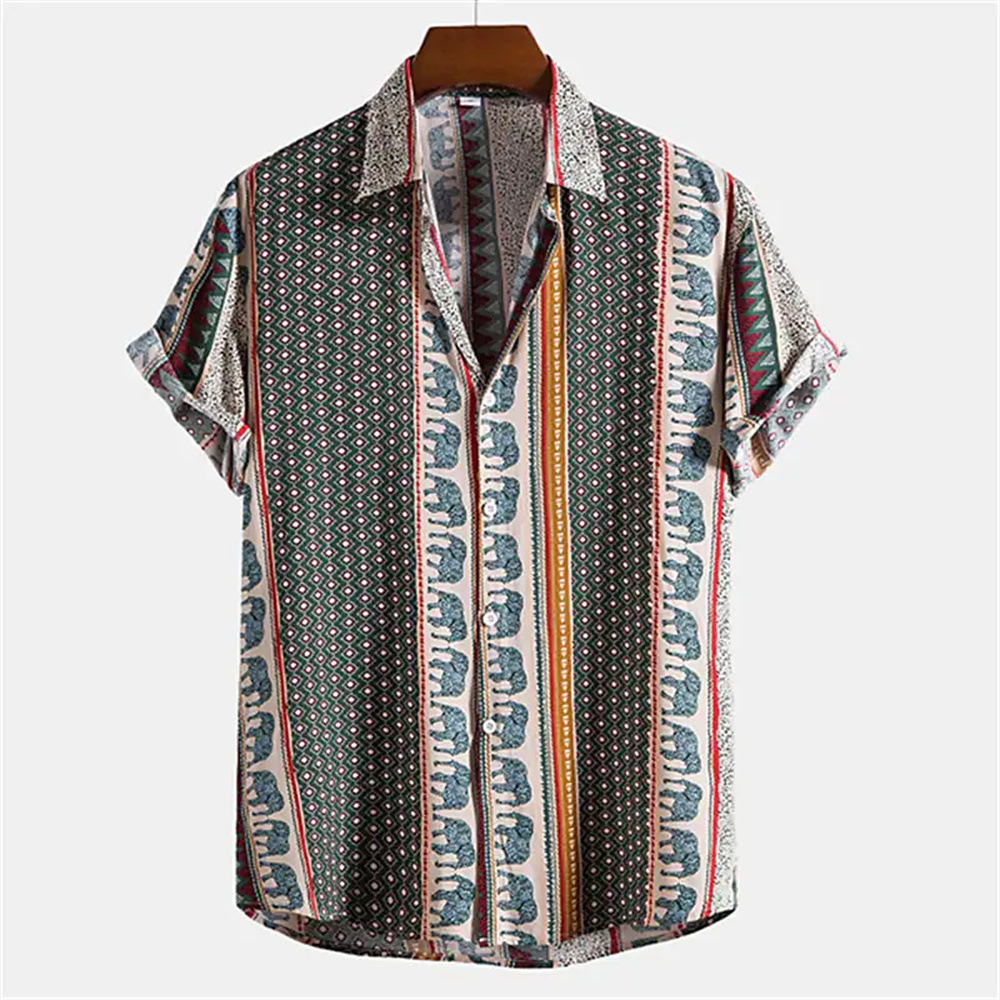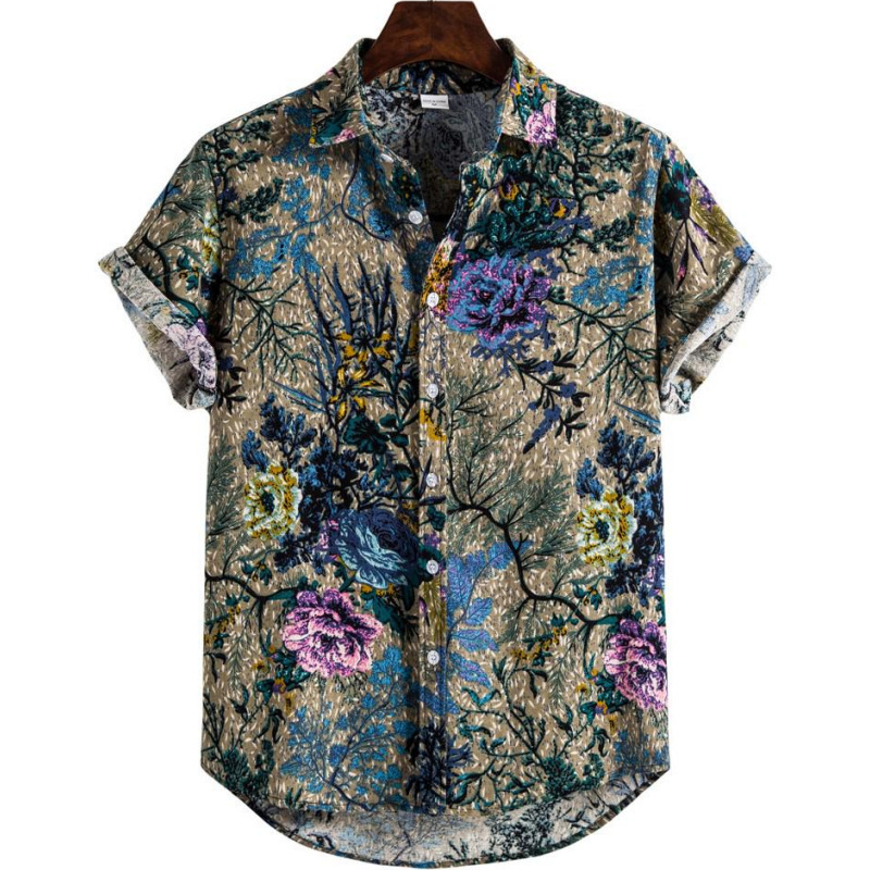 2024 국경 간 유럽과 미국의 새로운 인기 남성 셔츠 3D 디지털 인쇄 캐주얼 패션 하와이 반팔 셔츠