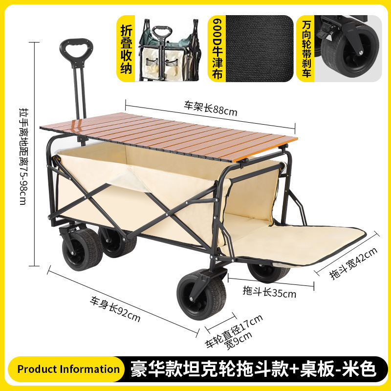 • 베이지-[특대형 휠-테이블] 낚시/울퉁불퉁한 도로 운송에 적합