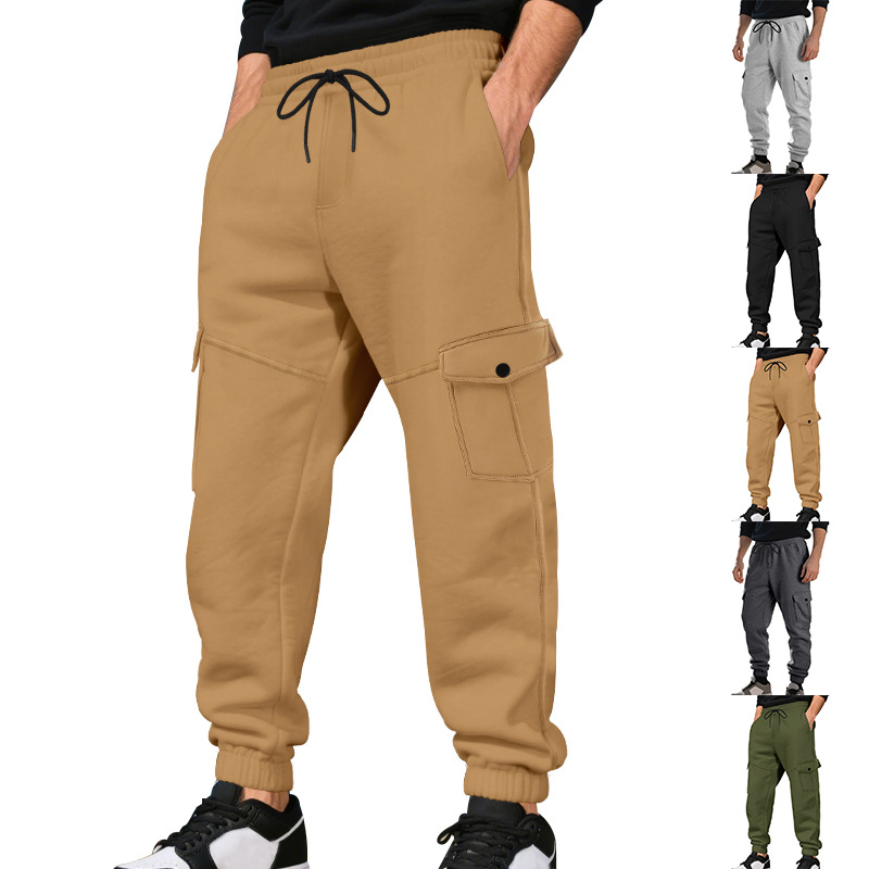 국경 간 유럽과 미국의 Amazon 가을, 겨울 벨벳 헤비 드로스트링 남성용 루즈 캐주얼 스포츠 멀티 포켓 작업 바지스토어 가기