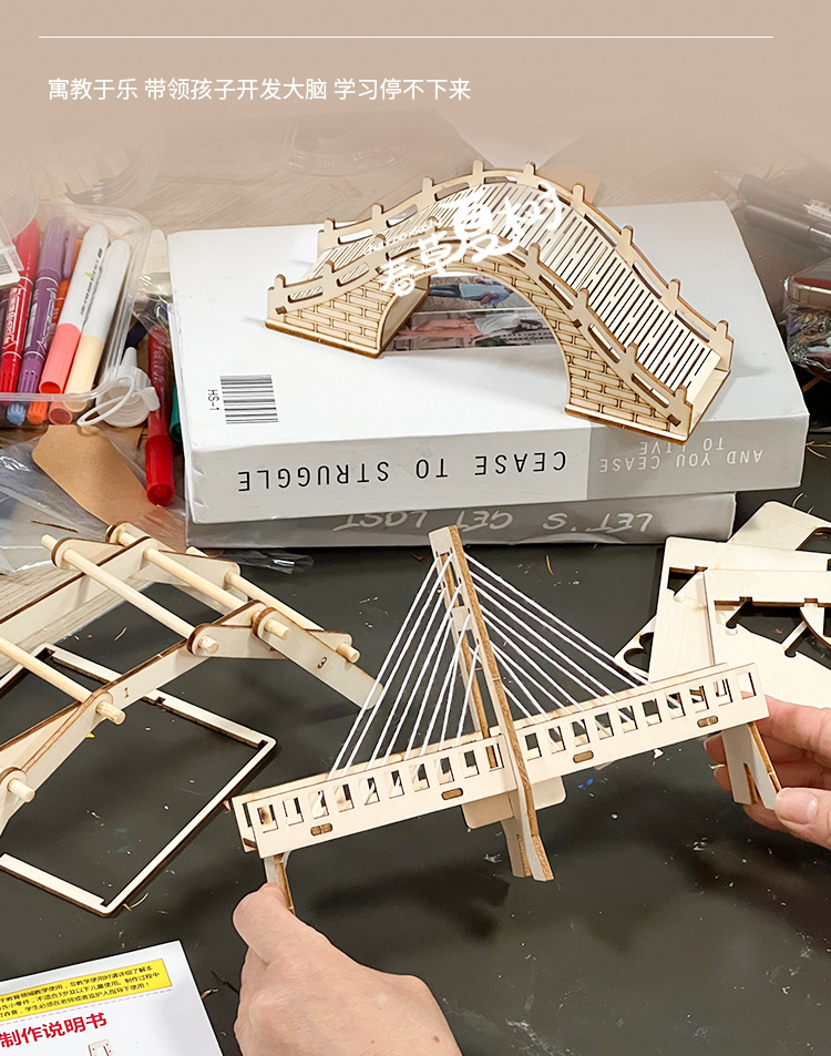 학생 과학 기술 소규모 생산 발명 diy 수제 교육 다리 건설 과학 실험 세트 유치원 재료스토어 가기