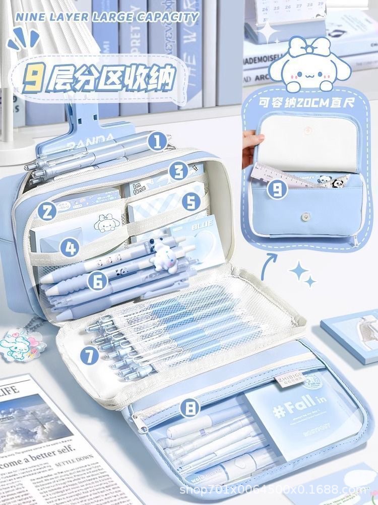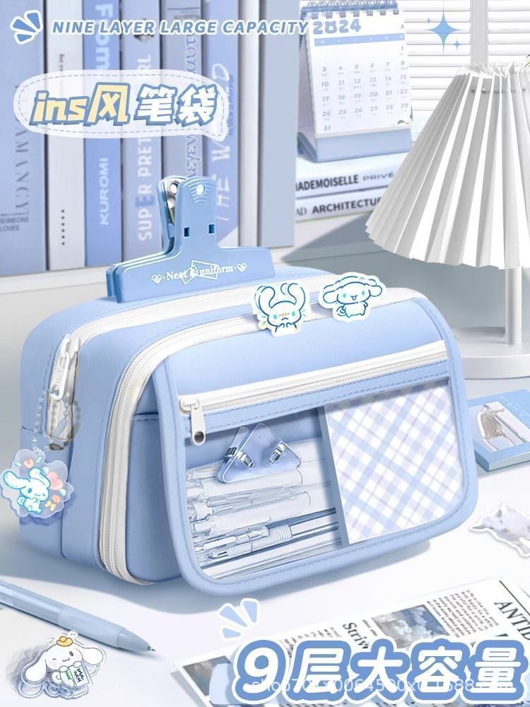 초등학생 여아를 위한 대용량 필통 9층, 중학생 여아를 위한 고급스러운 인스 스타일 플립형 필통