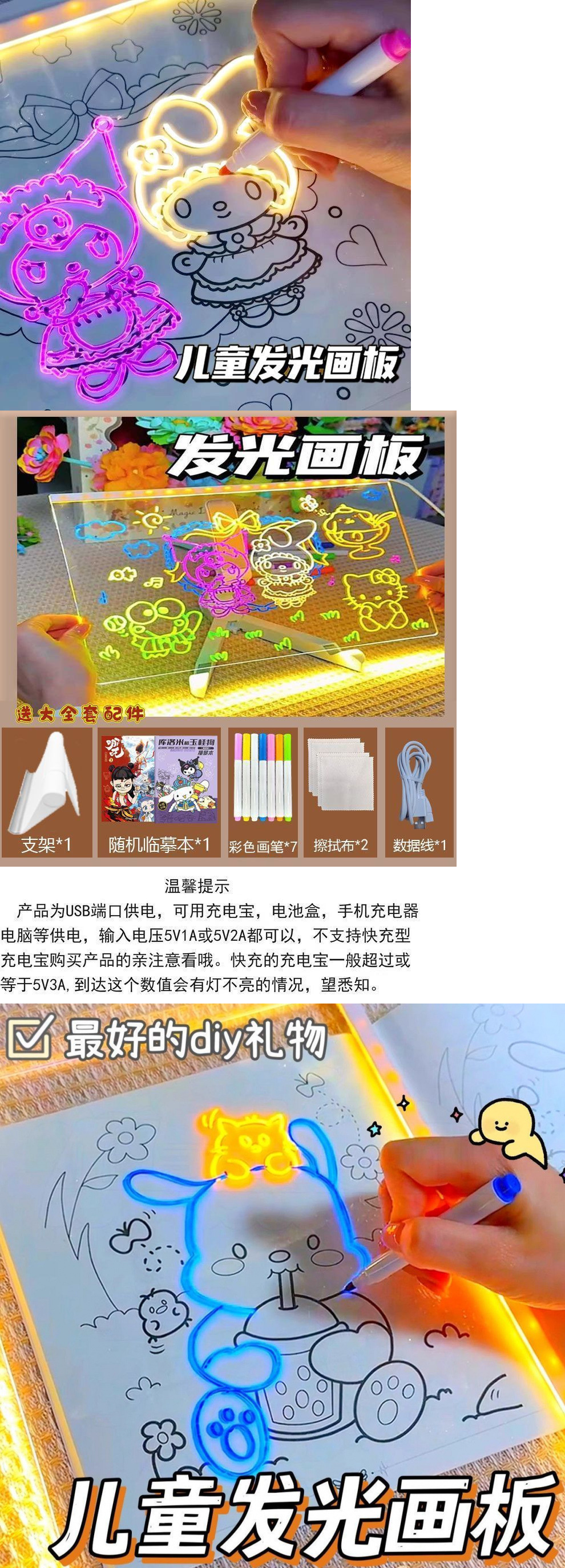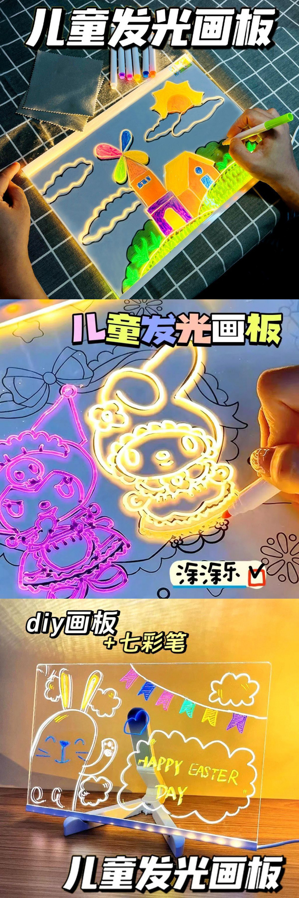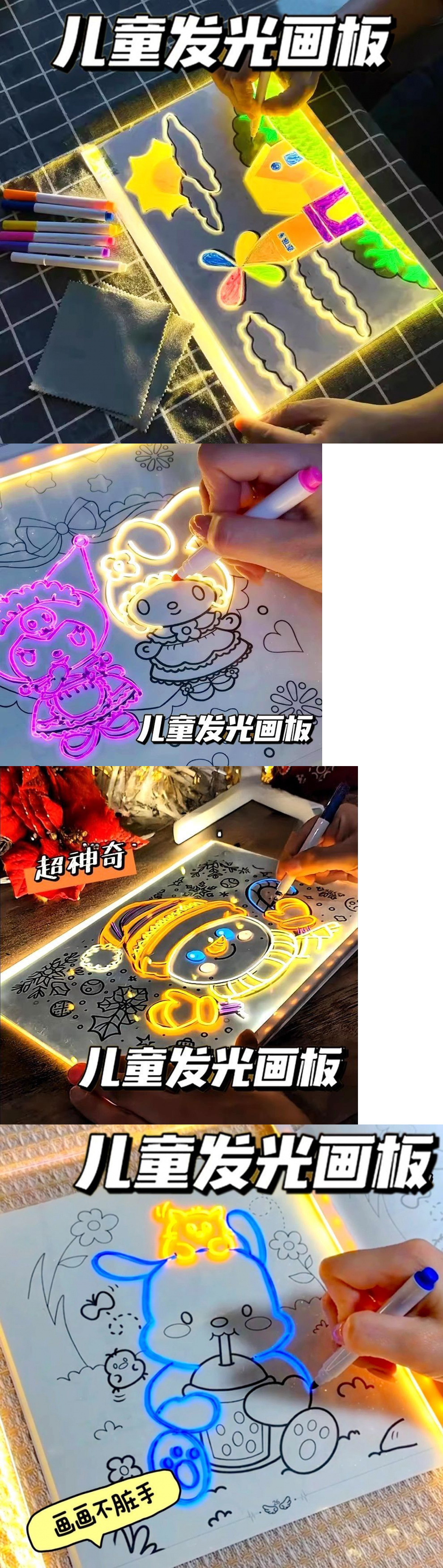 재사용 가능한 어린이 빛나는 드로잉 보드 DIY 필기 보드 눈 보호 펜 지울 수있는 장난감 색칠하기 책스토어 가기