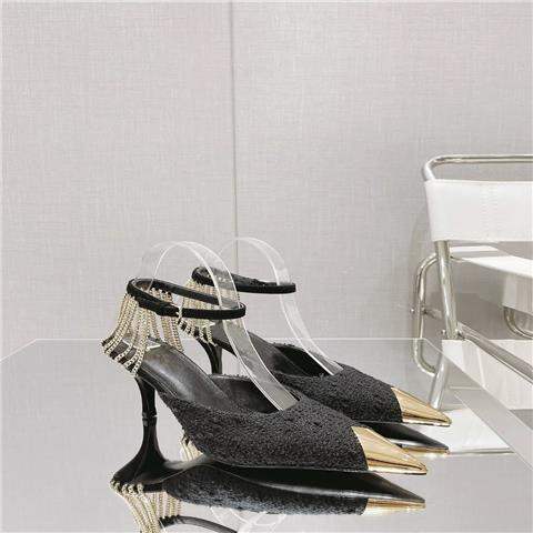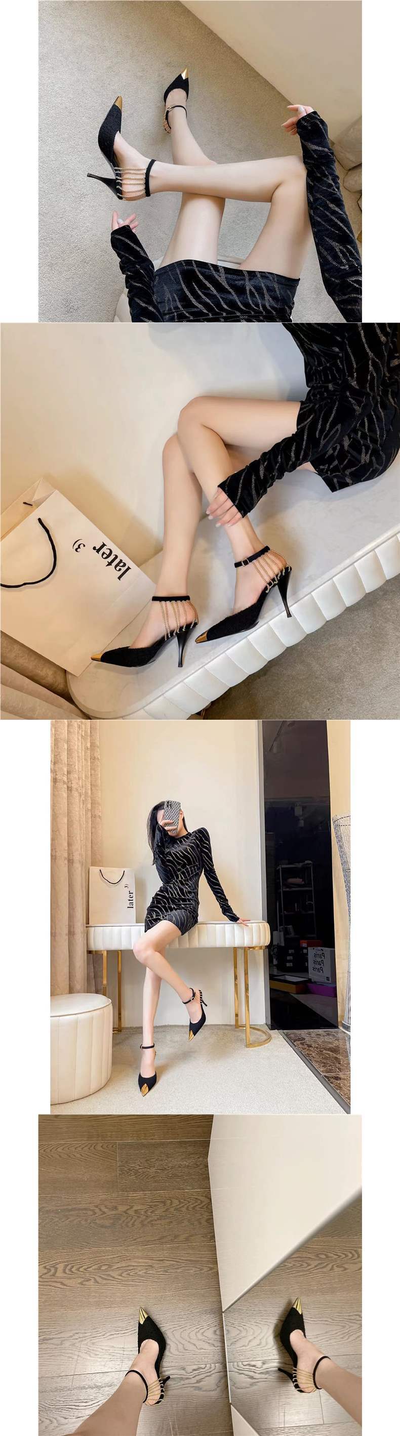 로즈 박채영 같은 스타일 체인 하이힐 22 새로운 스타일 블랙 섹시 메탈 뾰족한 발가락 스틸레토 신발 여성용 샌들스토어 가기