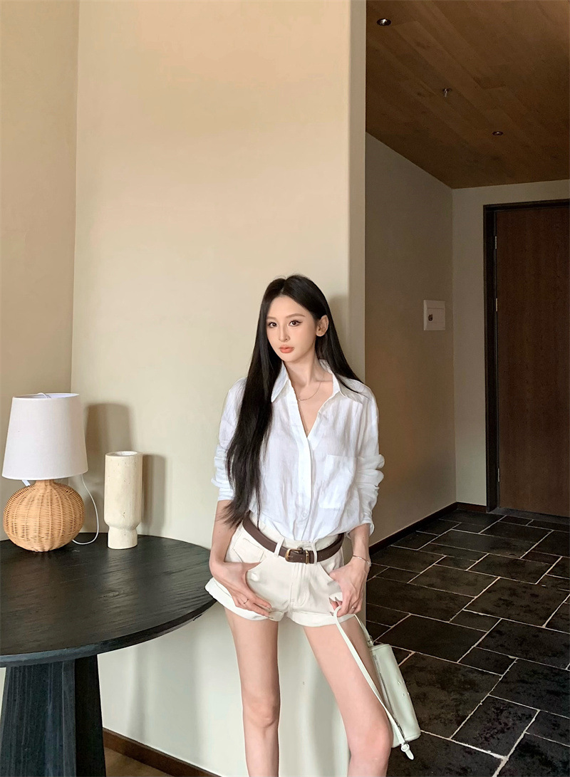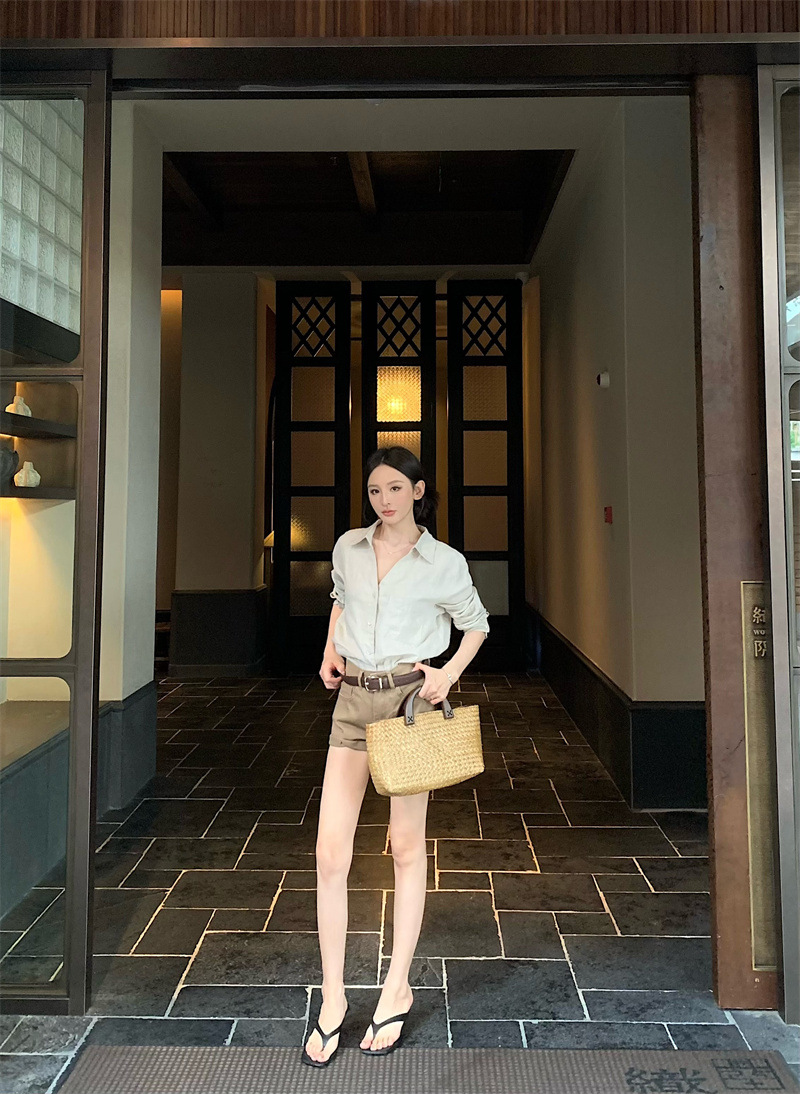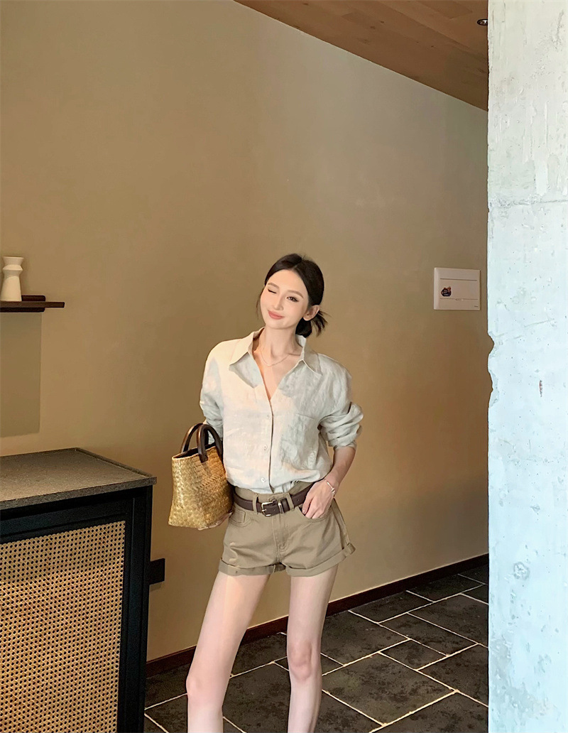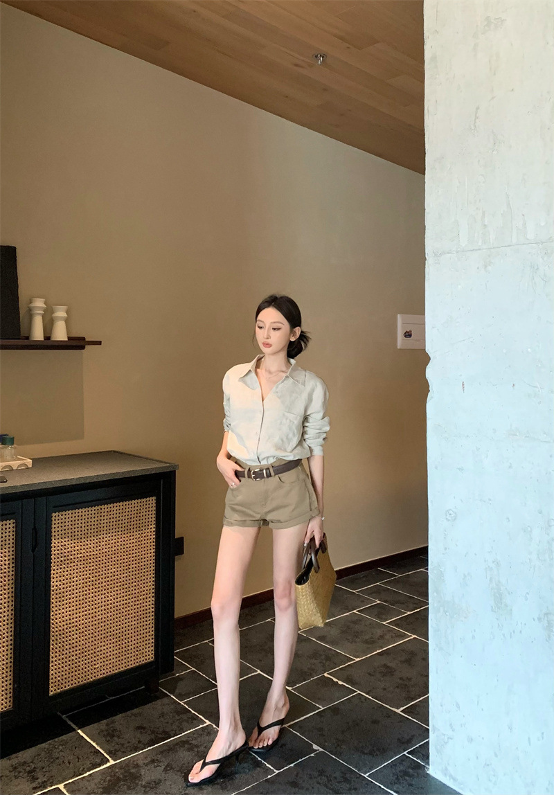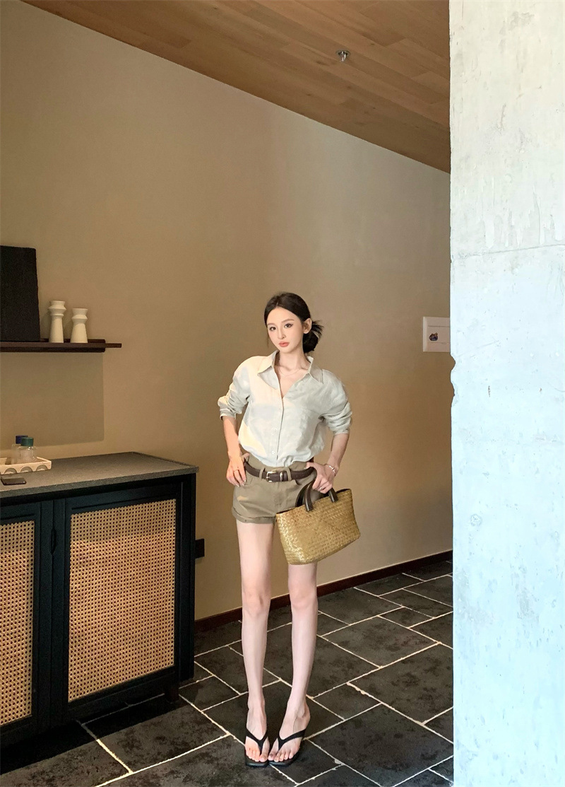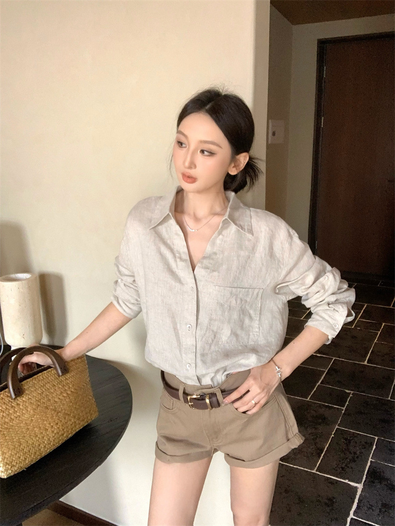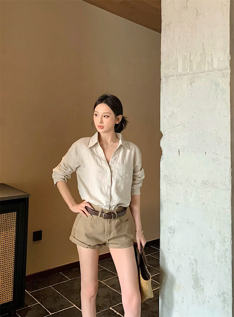 여성용 긴팔 셔츠, 올드 머니 스타일 여성복, 가을 루즈핏 셔츠, 긴팔 상의, 캐주얼하고 다재다능한 스트레이트 반바지 세트