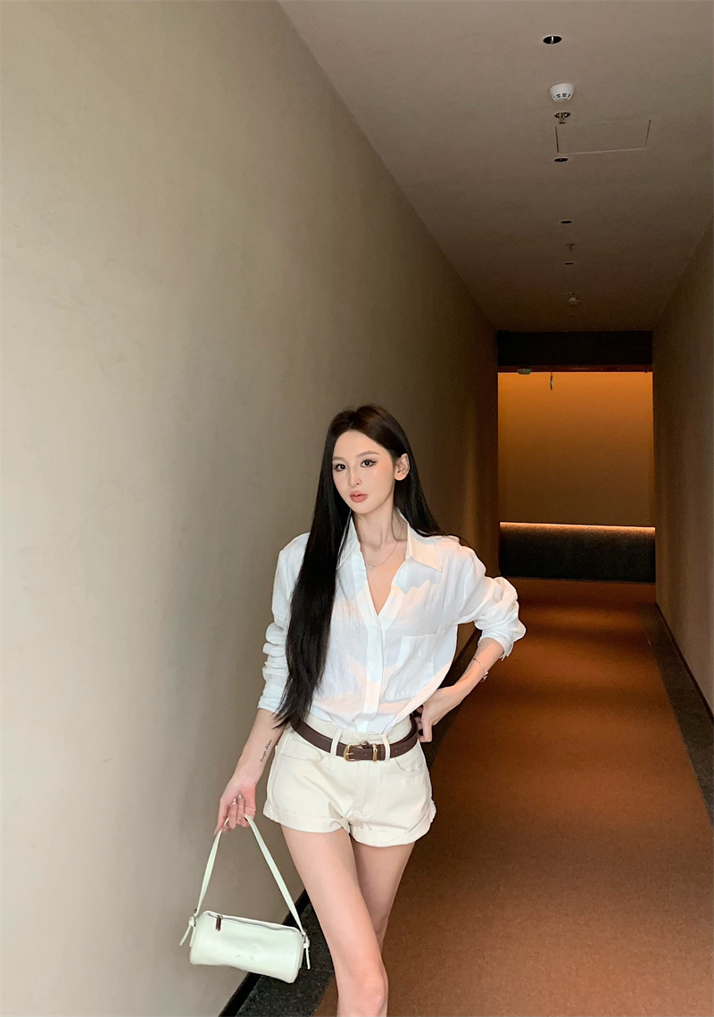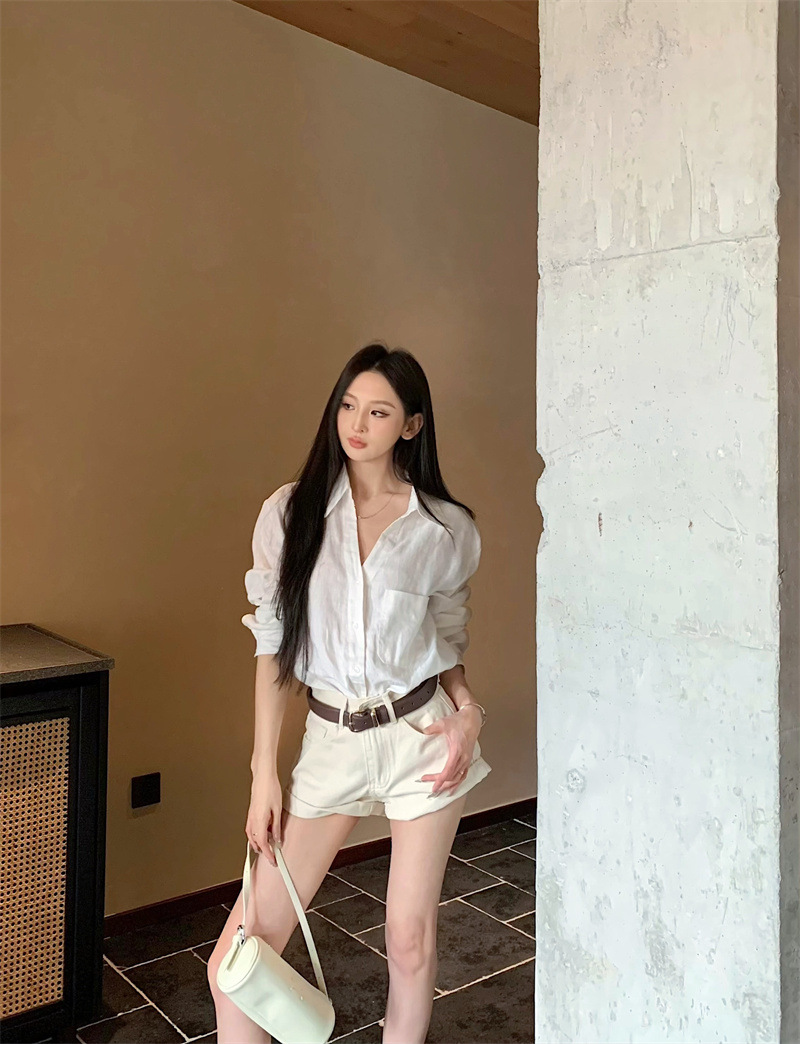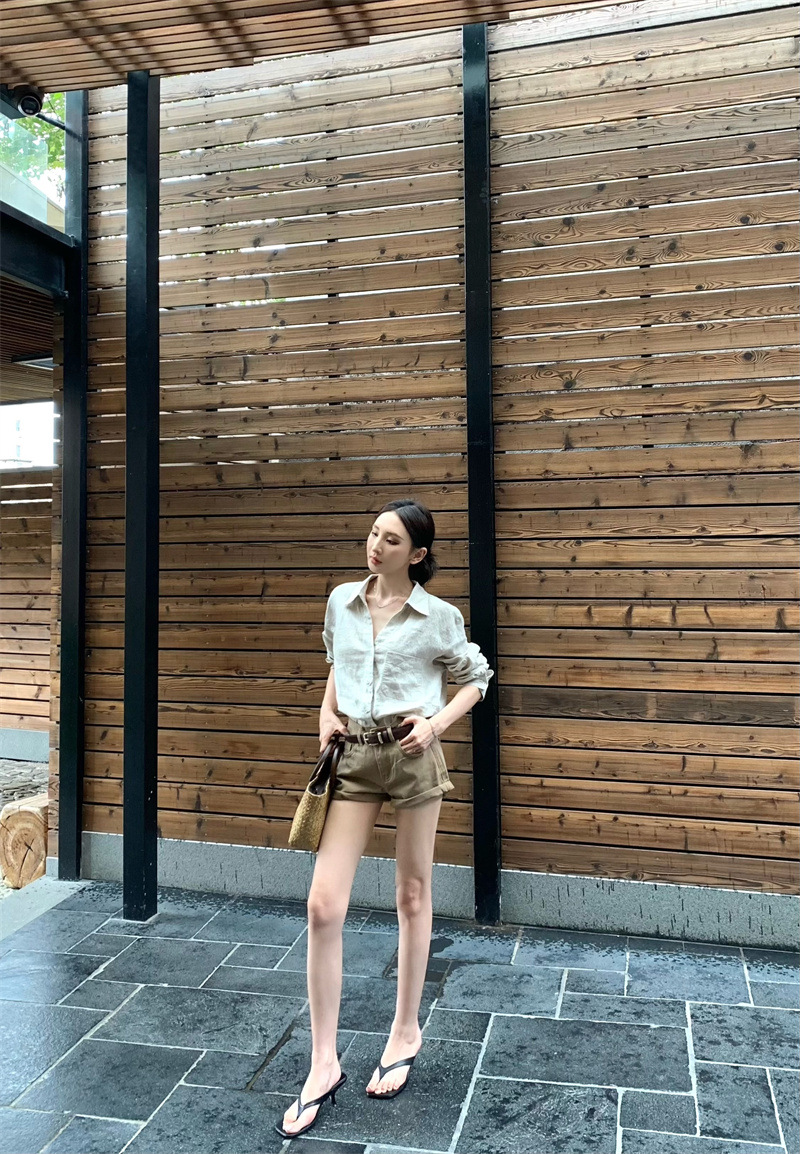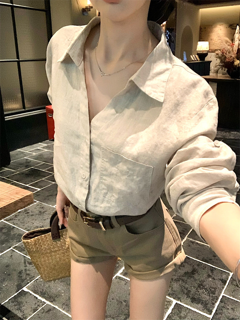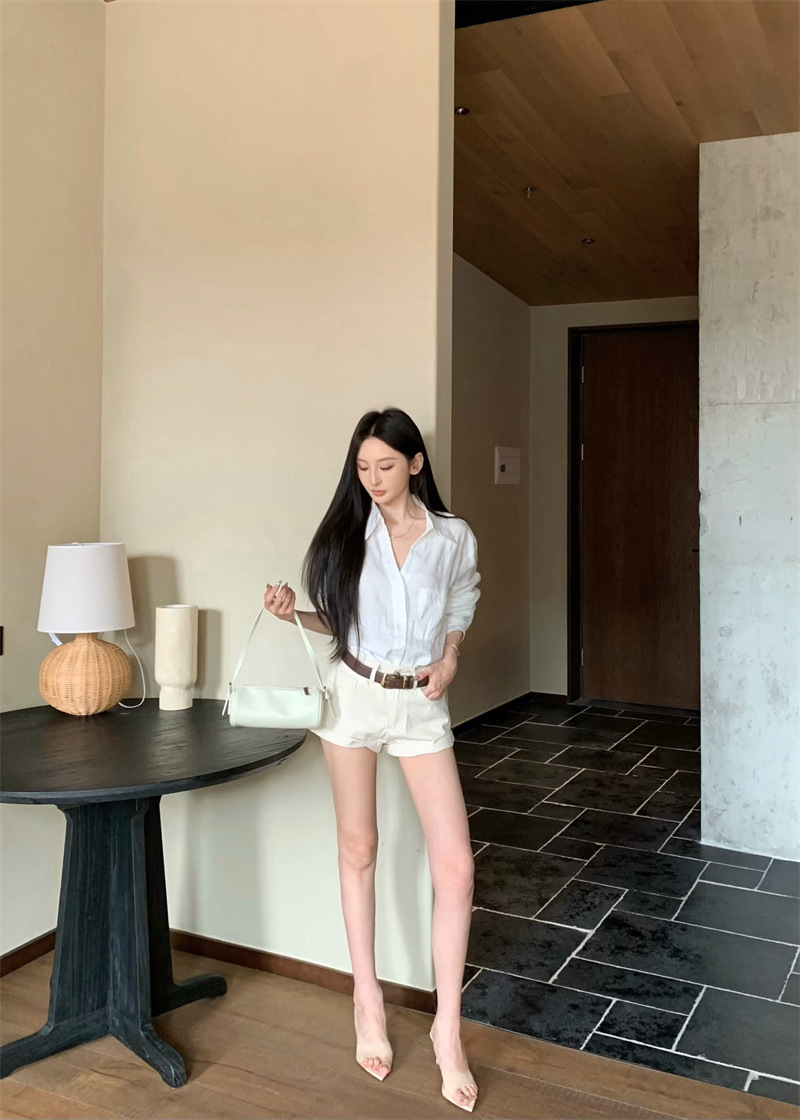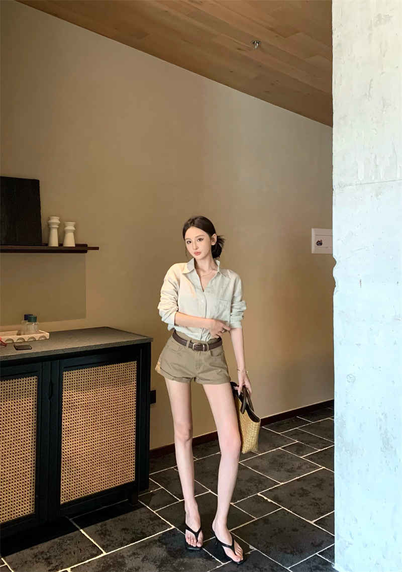 여성용 긴팔 셔츠, 올드 머니 스타일 여성복, 가을 루즈핏 셔츠, 긴팔 상의, 캐주얼하고 다재다능한 스트레이트 반바지 세트