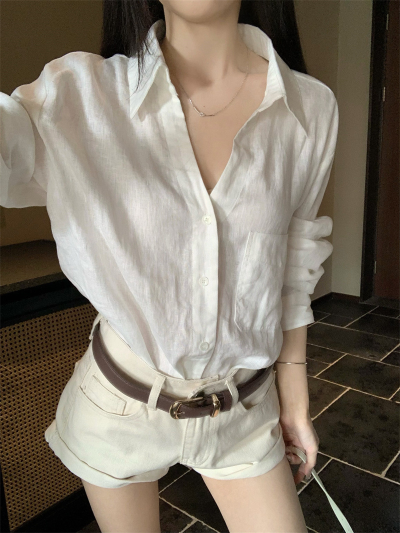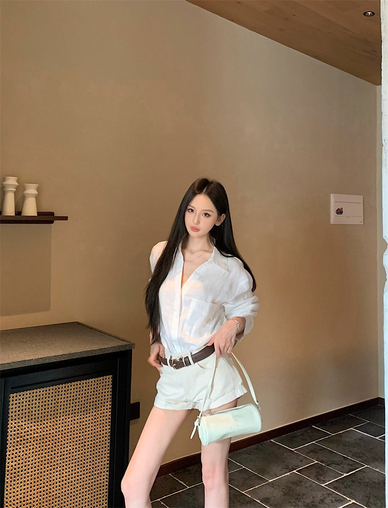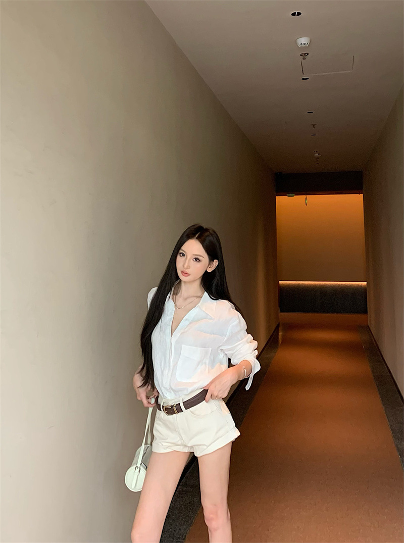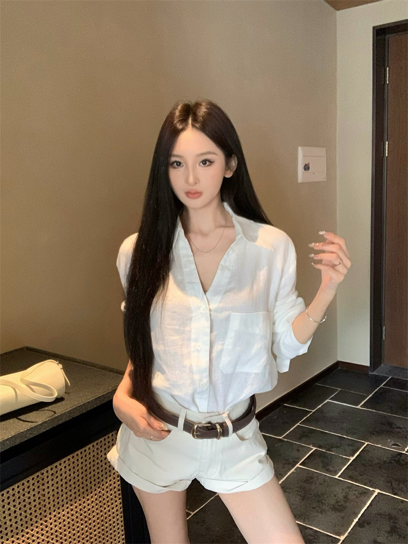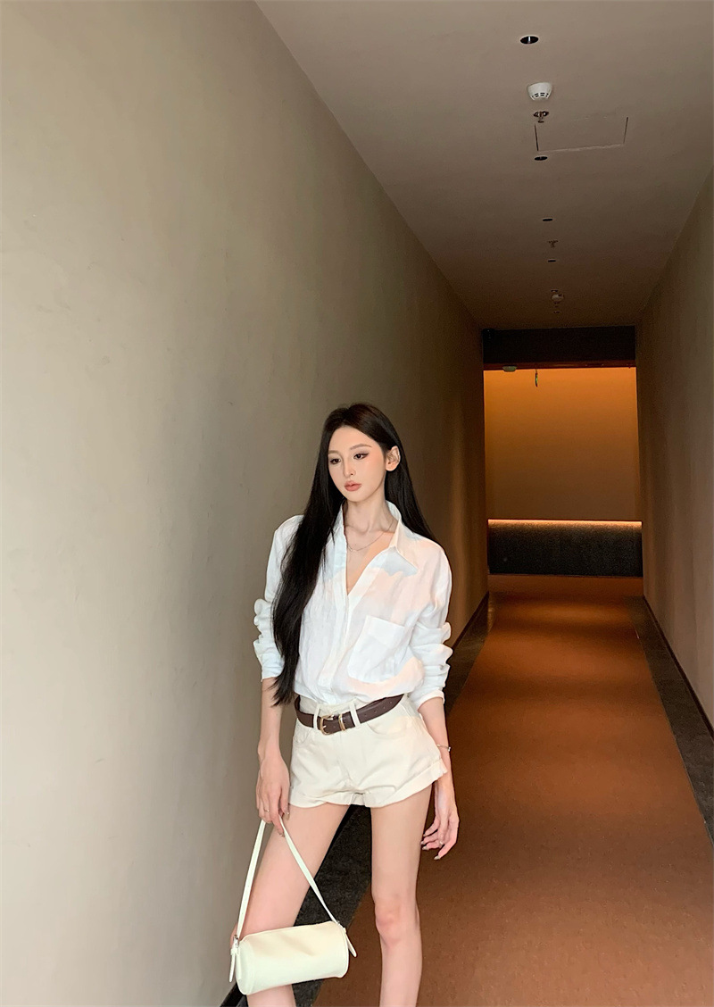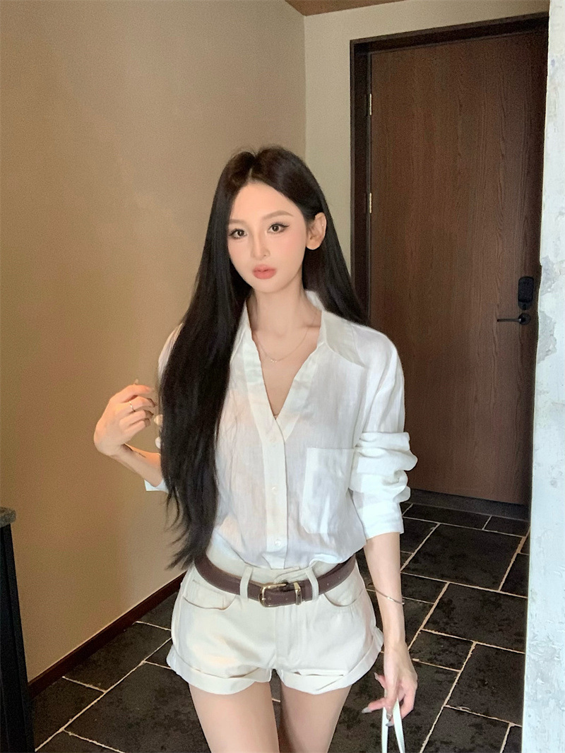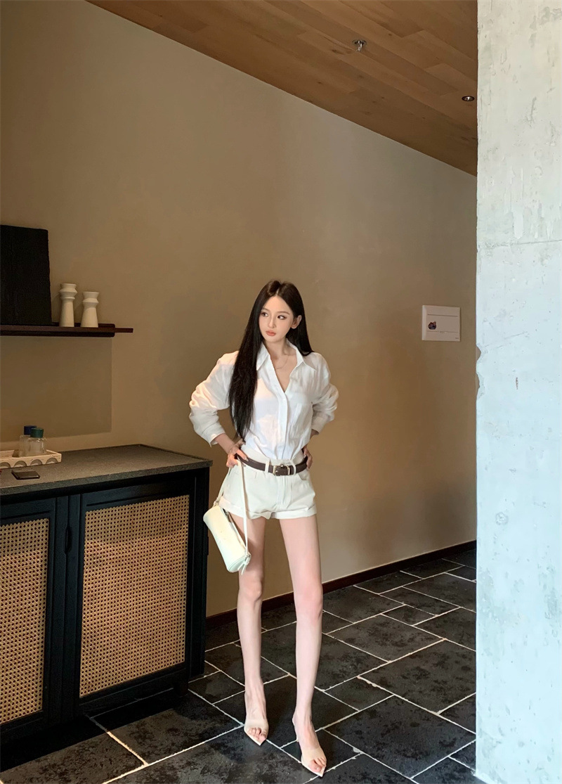 여성용 긴팔 셔츠, 올드 머니 스타일 여성복, 가을 루즈핏 셔츠, 긴팔 상의, 캐주얼하고 다재다능한 스트레이트 반바지 세트
