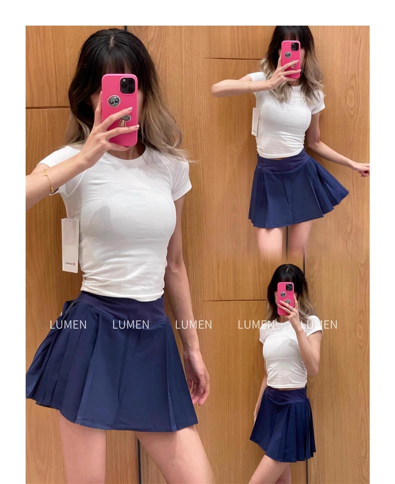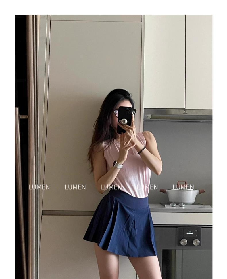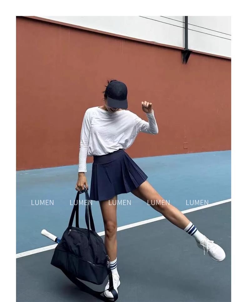 착용하기 매우 쉬운 룰루 같은 스타일 사이드 플리츠 스포츠 하이 웨이스트 테니스 골프 속건성 통기성 스커트 요가 스커트스토어 가기