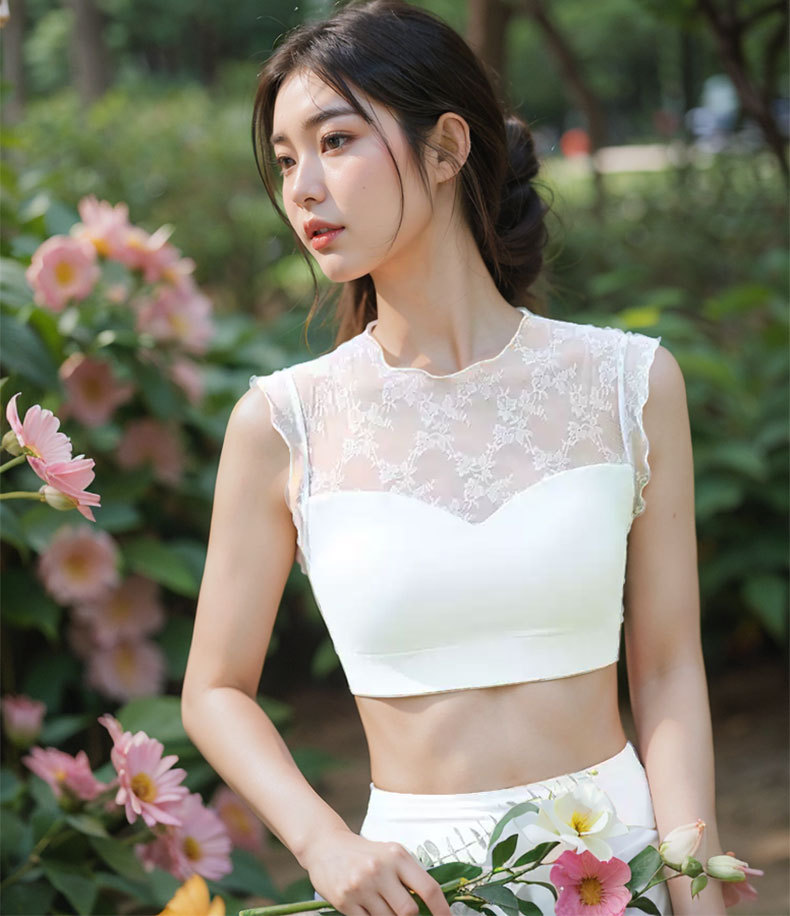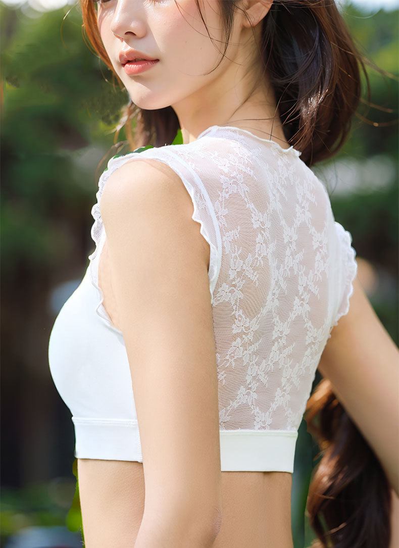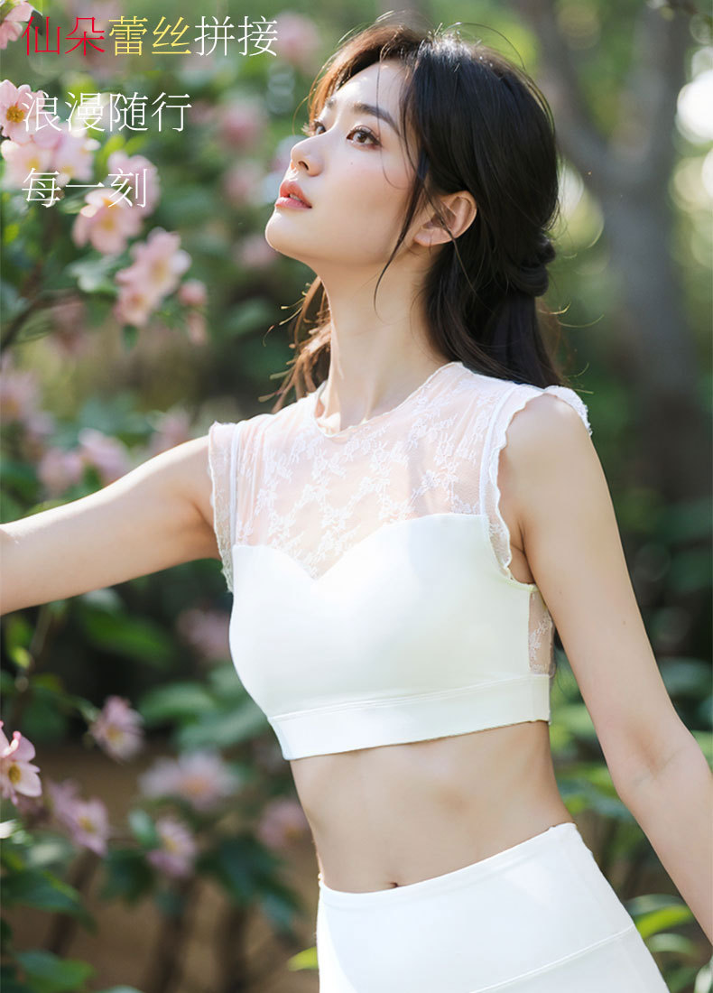 버섯 레이스 스플라이싱 스포츠 조끼, 캐주얼 스포츠, 다용도 피트니스, 가슴 패드가 있는 아름다운 등, 요가복 외부 착용 가능
