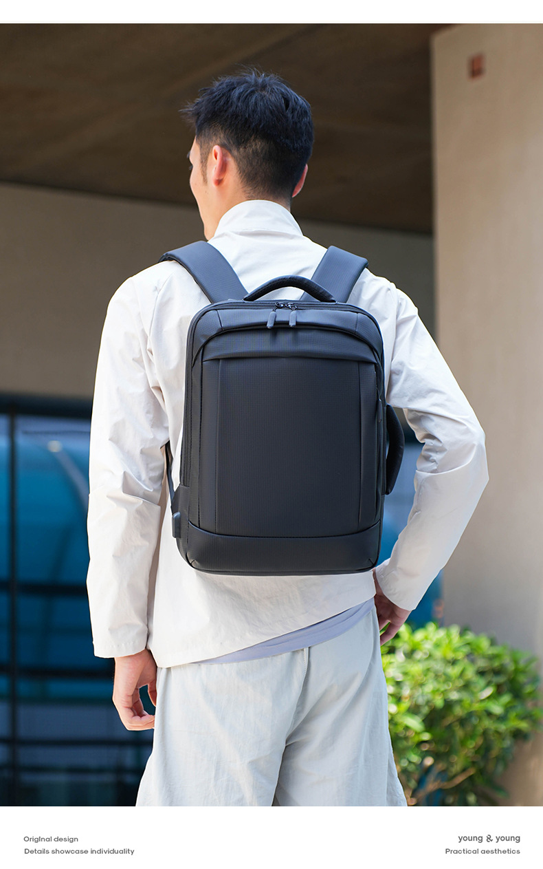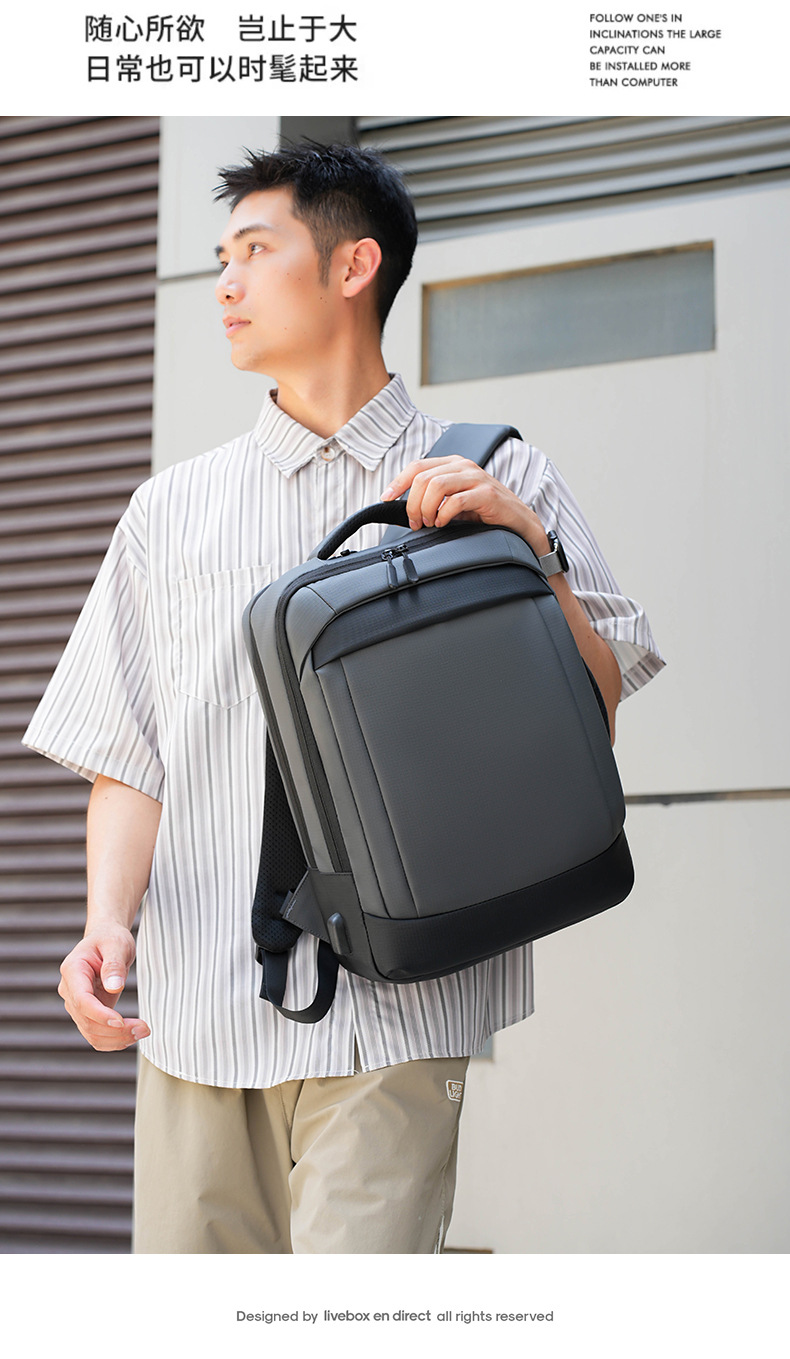 대외 무역용 입체형 비즈니스 통근 백팩, 가죽 필름 소재의 심플한 출장 여행용 백팩, 남녀 공용 캐주얼 노트북 가방스토어 가기