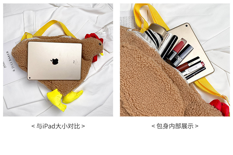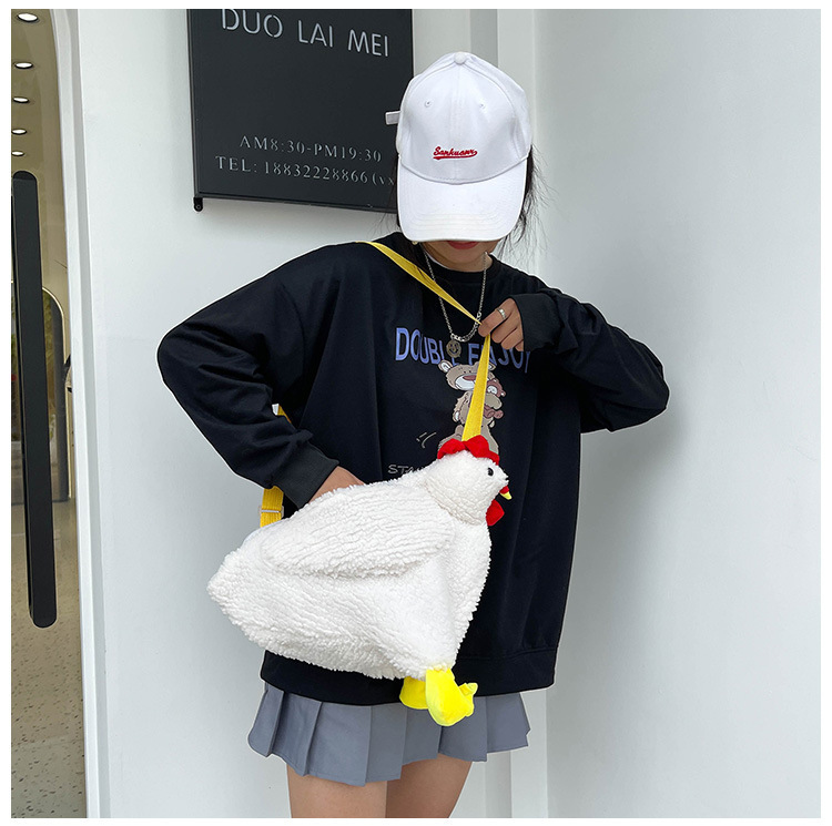 可爱毛绒大鸡2024秋冬新款大容量斜挎包少女心ins单肩斜挎手提包