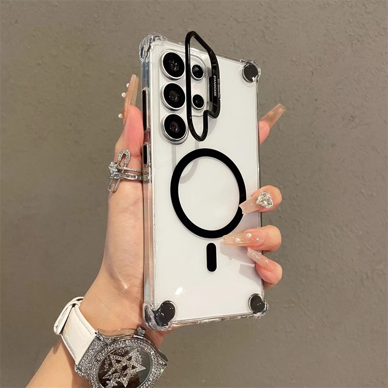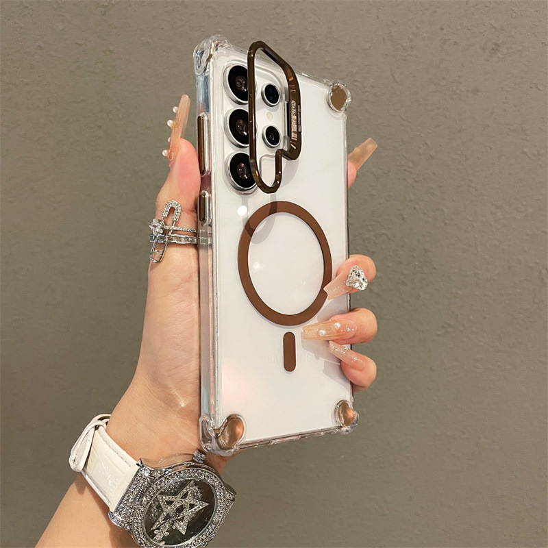 삼성 S25ultra 자기 홀더 휴대폰 케이스 S23U/S24U3에 적합한 4각 낙하 방지 렌즈 플립 브래킷