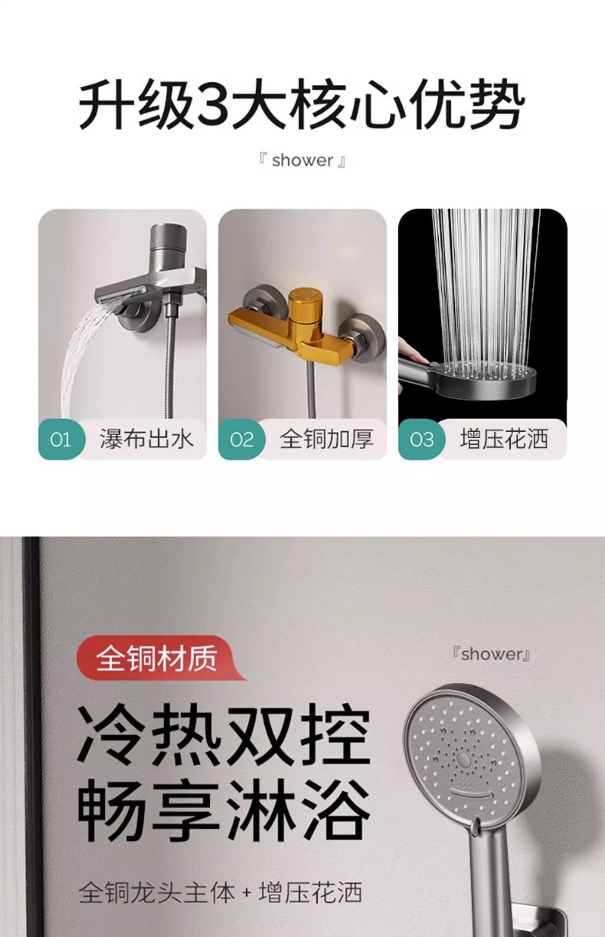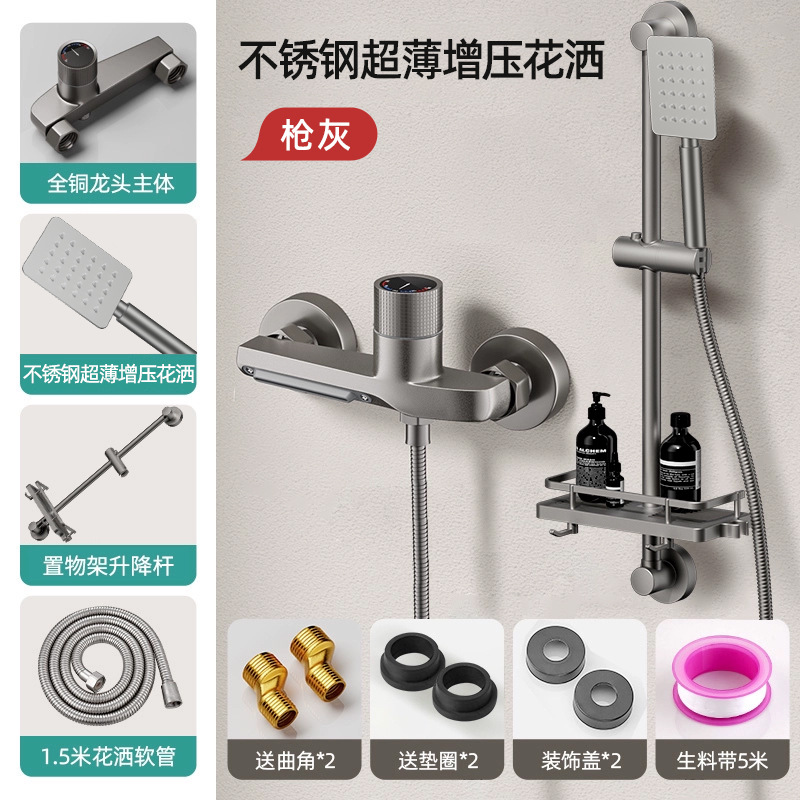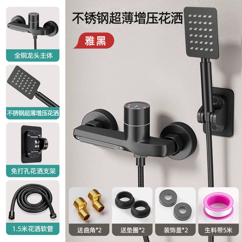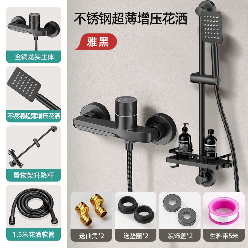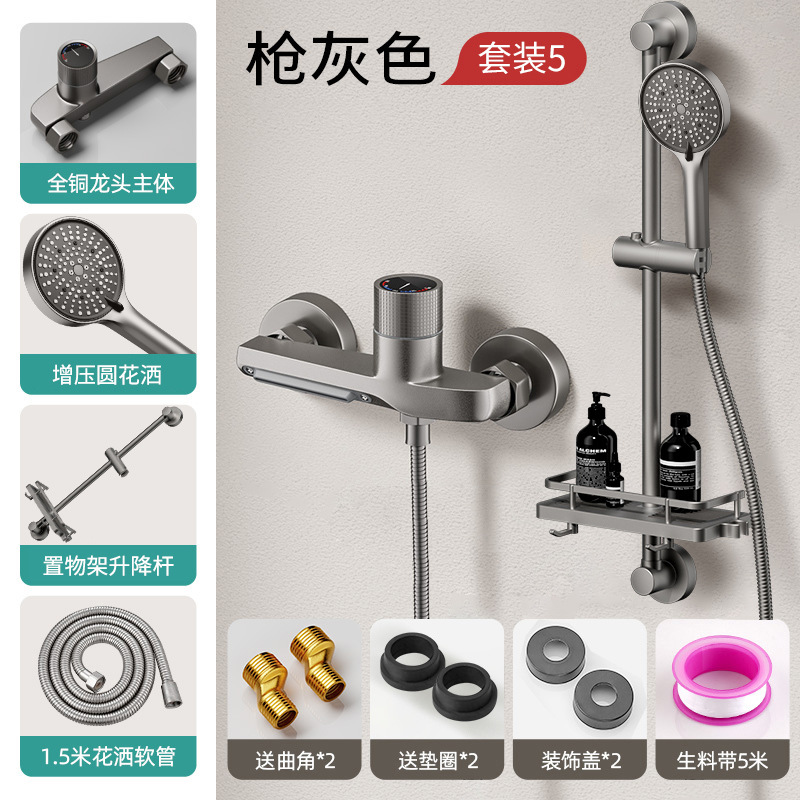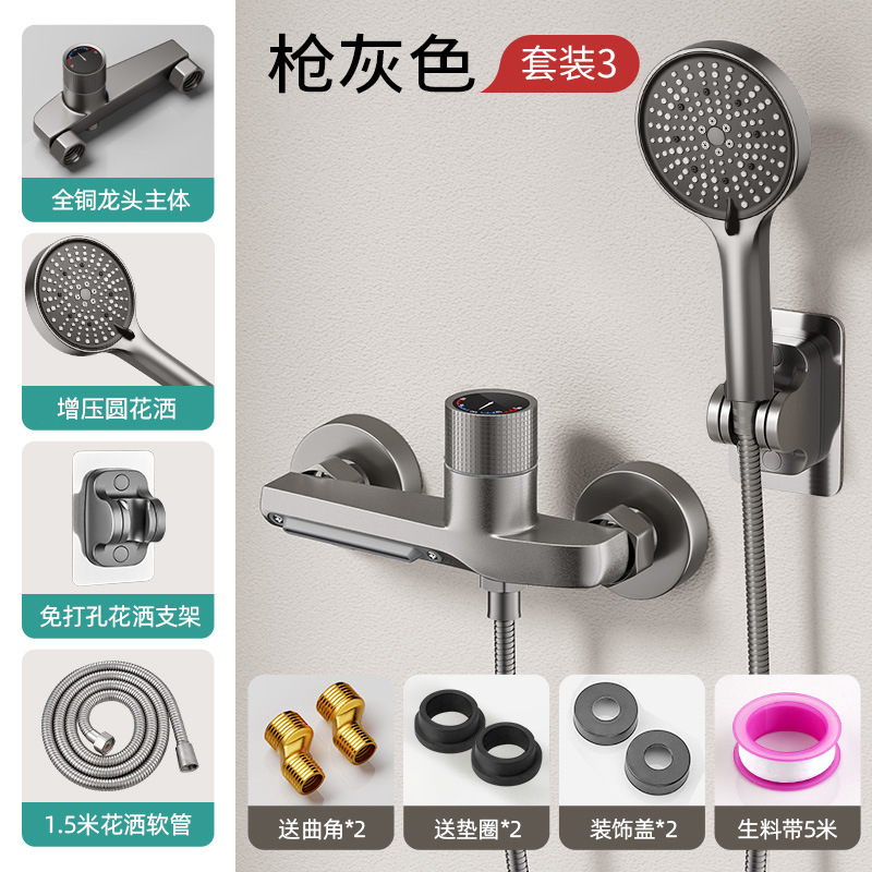독일산 전체 구리 샤워 키트 간단한 수도꼭지 냉온수 삼중 샤워 헤드 가정용 샤워 헤드