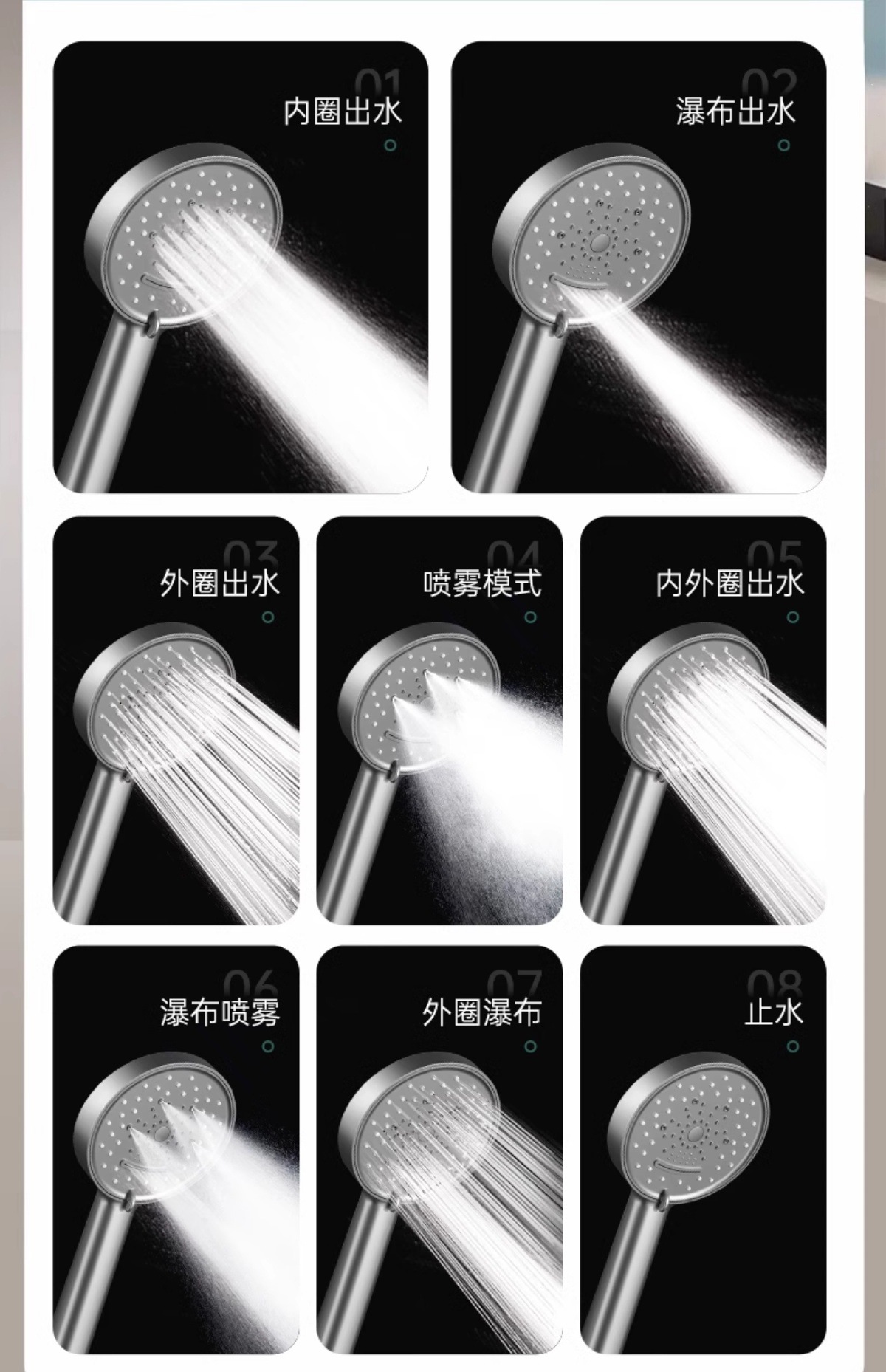 • 검은색 폭포수전 + 검은색 사각형 핸드 스프레이 리프팅 로드 세트