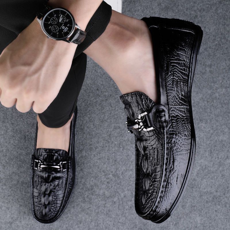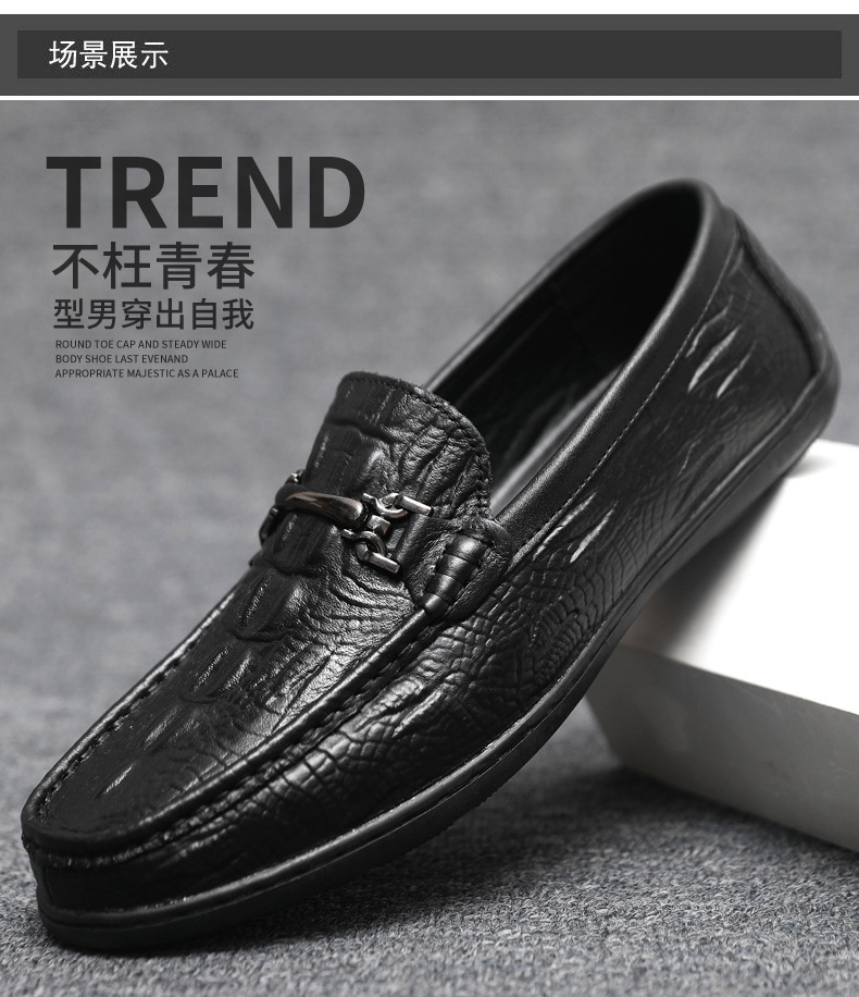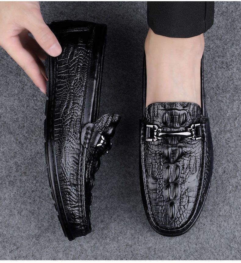 남성 가죽 신발 2025 신상 질감 있는 악어 무늬 비니슈즈 비즈니스 캐주얼 남성 신발 다용도 부드러운 밑창 남성 신발 수출용스토어 가기