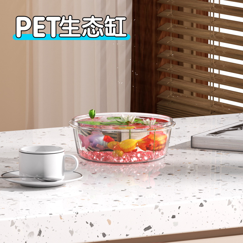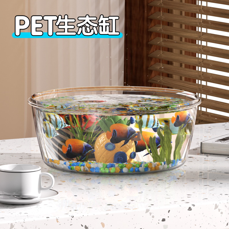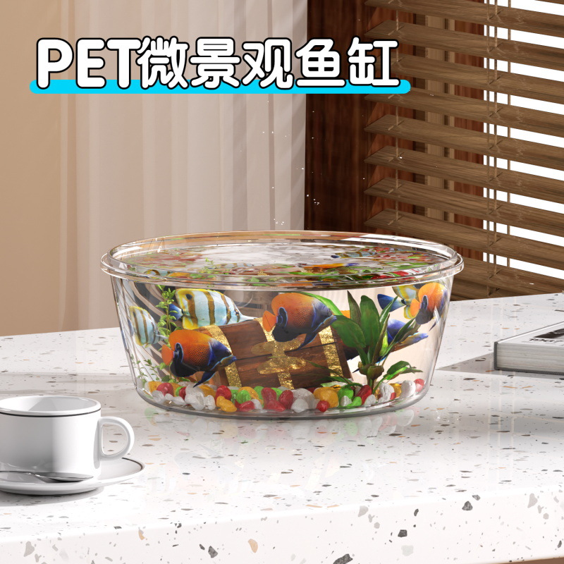 Zhanggong 라운드 PET 물고기 탱크 마이크로 풍경 물고기 탱크 거실 사무실 투명 생태 탱크 금붕어 탱크 애완 동물 상자