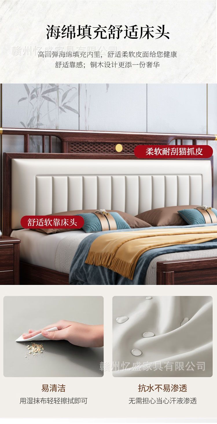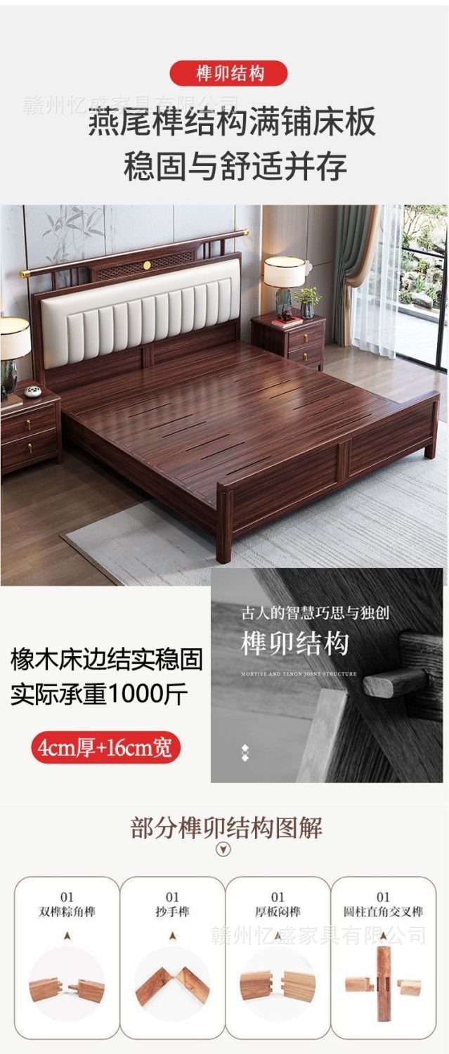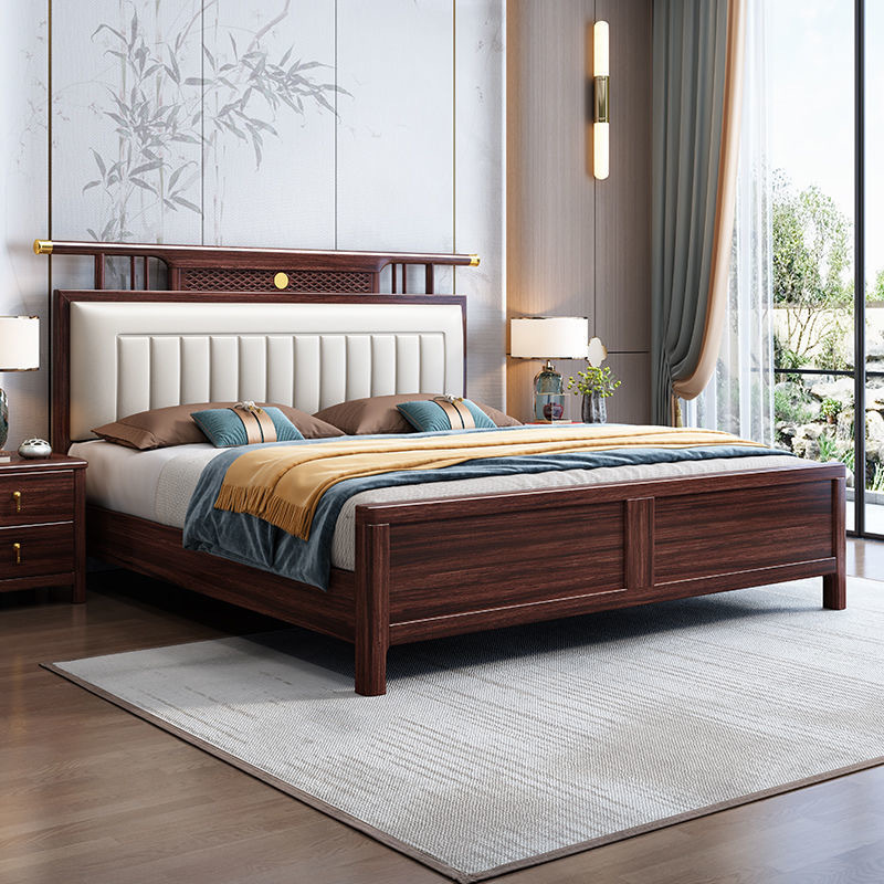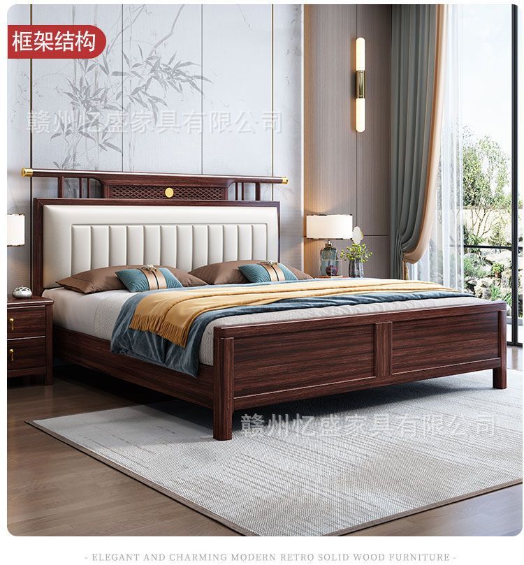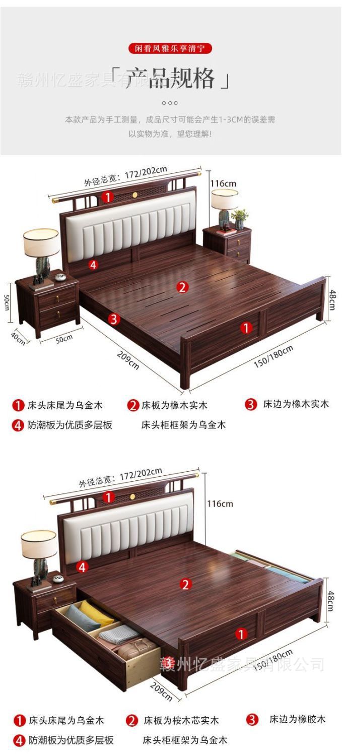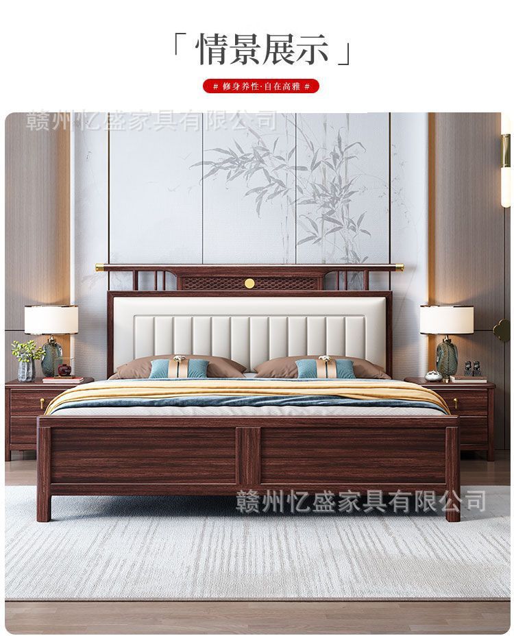 새로운 중국 스타일의 부드러운 단단한 나무 침대 마스터 침실 웨딩 침대 현대적인 단순하고 고급스러운 더블 중국 스타일의 검은 금색 나무 수납 침대