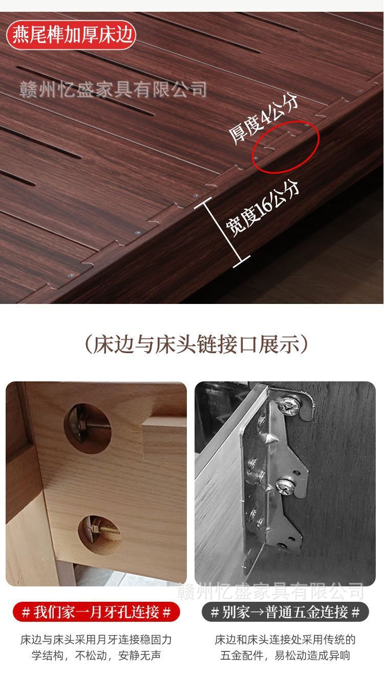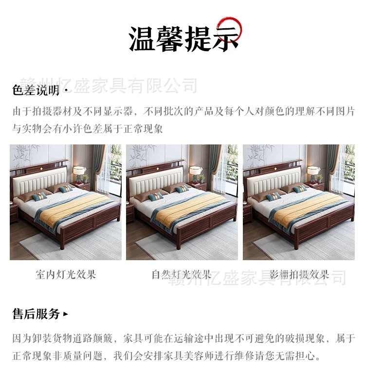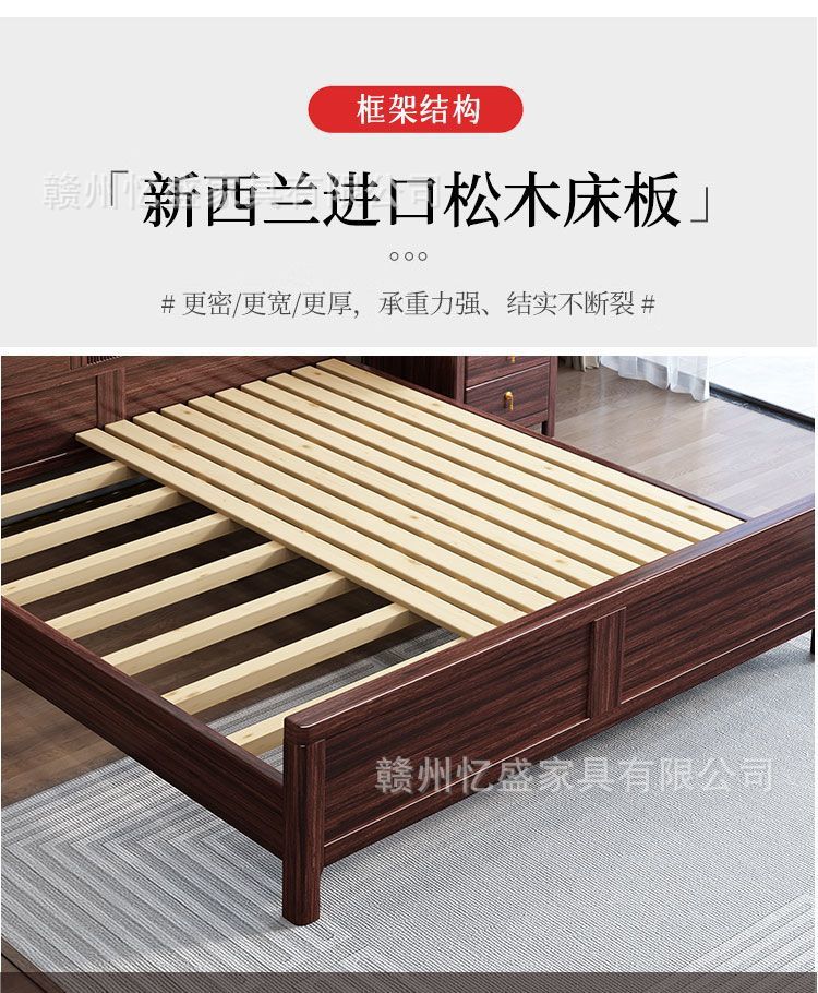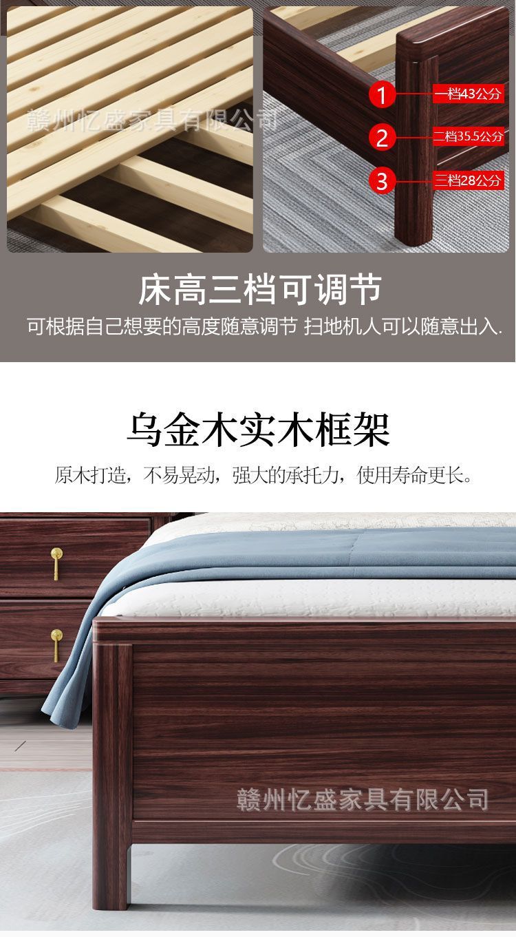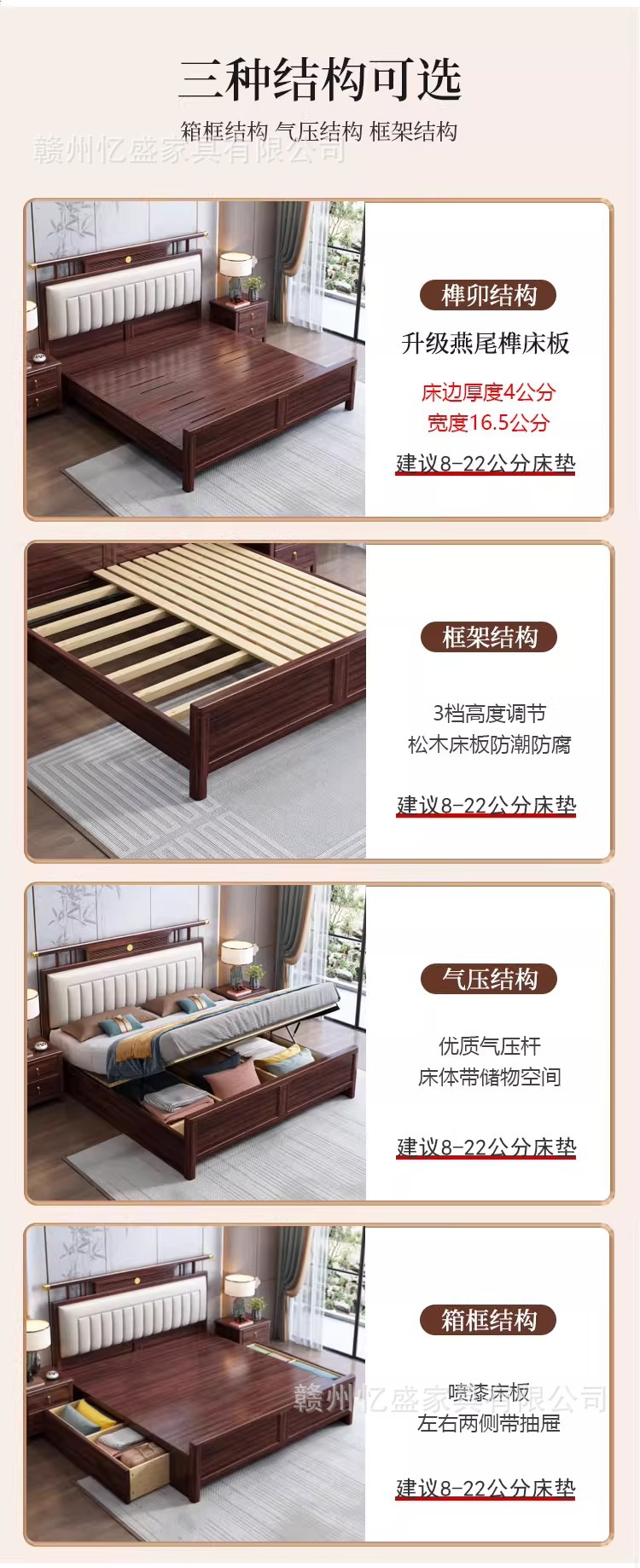 새로운 중국 스타일의 부드러운 단단한 나무 침대 마스터 침실 웨딩 침대 현대적인 단순하고 고급스러운 더블 중국 스타일의 검은 금색 나무 수납 침대