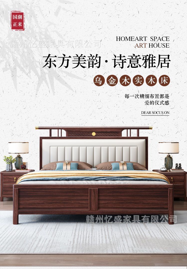 새로운 중국 스타일의 부드러운 단단한 나무 침대 마스터 침실 웨딩 침대 현대적인 단순하고 고급스러운 더블 중국 스타일의 검은 금색 나무 수납 침대스토어 가기